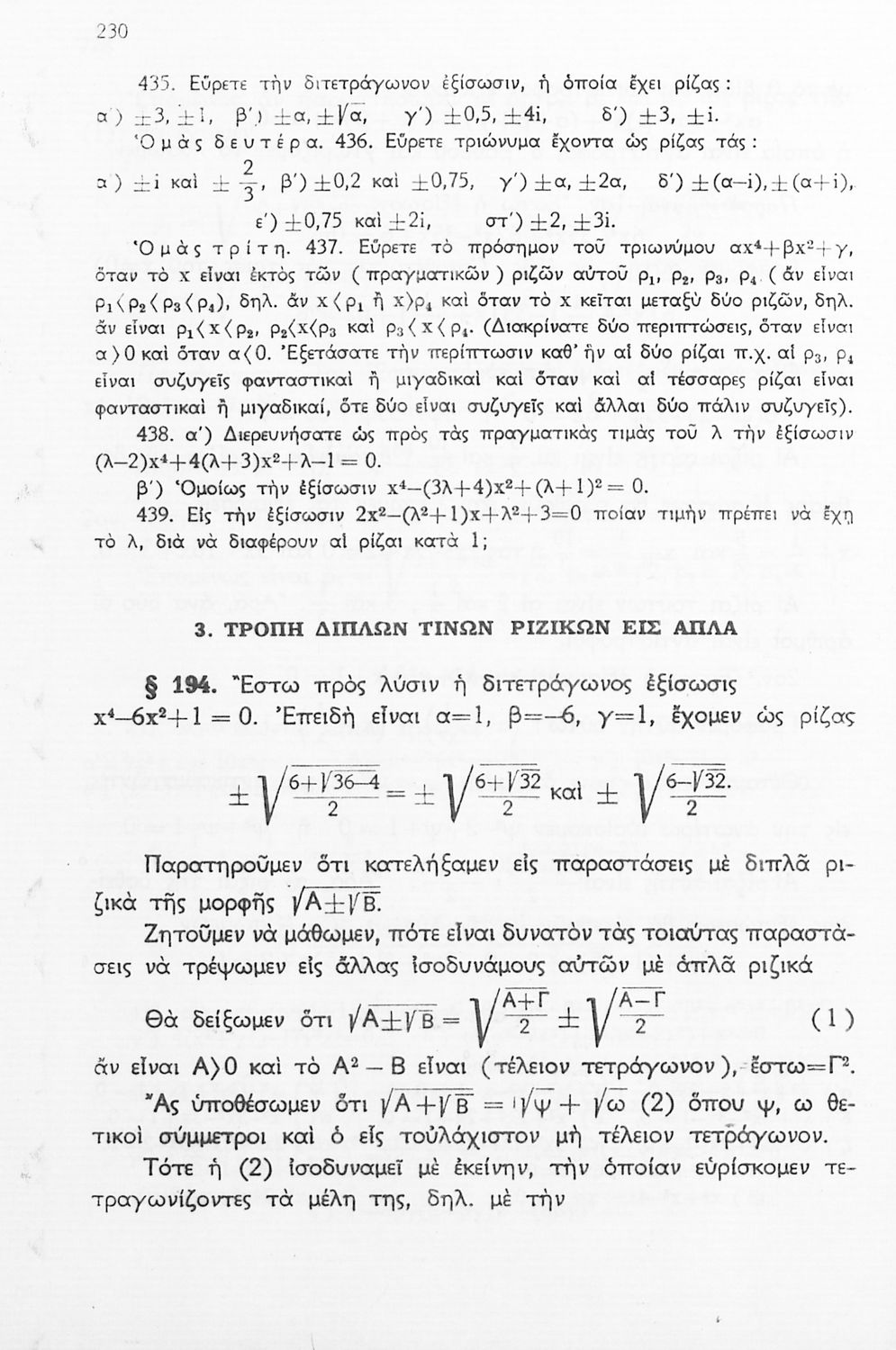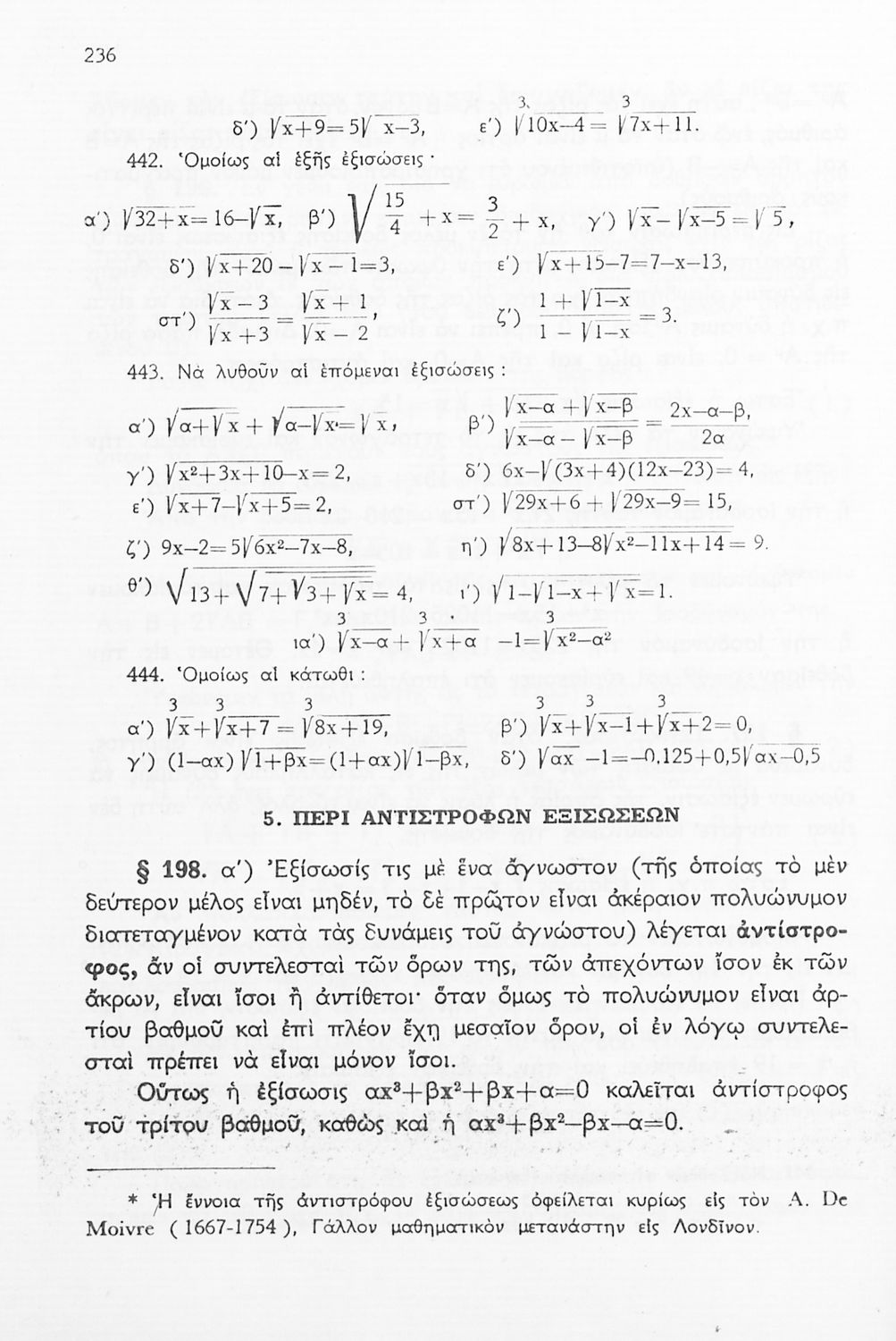 Βαθμίδα εκπαίδευσης: Δευτεροβάθμια Τάξη: Δ' Γυμνασίου / Ε' Γυμνασίου / ΣΤ' Γυμνασίου Μάθημα: Μαθηματικά Γλώσσα: Απλή καθαρεύουσα Παρουσίαση περιεχομένου: Σχολικό εγχειρίδιο Μαθηματικών Δ', Ε' και ΣΤ΄ τάξεων του Γυμνασίου που παρουσιάζει τις βασικές έννοιες της Άλγεβρας, εστιάζει τις ιδιότητες των αριθμών και περιέχει ασκήσεις εξισώσεων, λογαρίθμων και παραγώγων. |