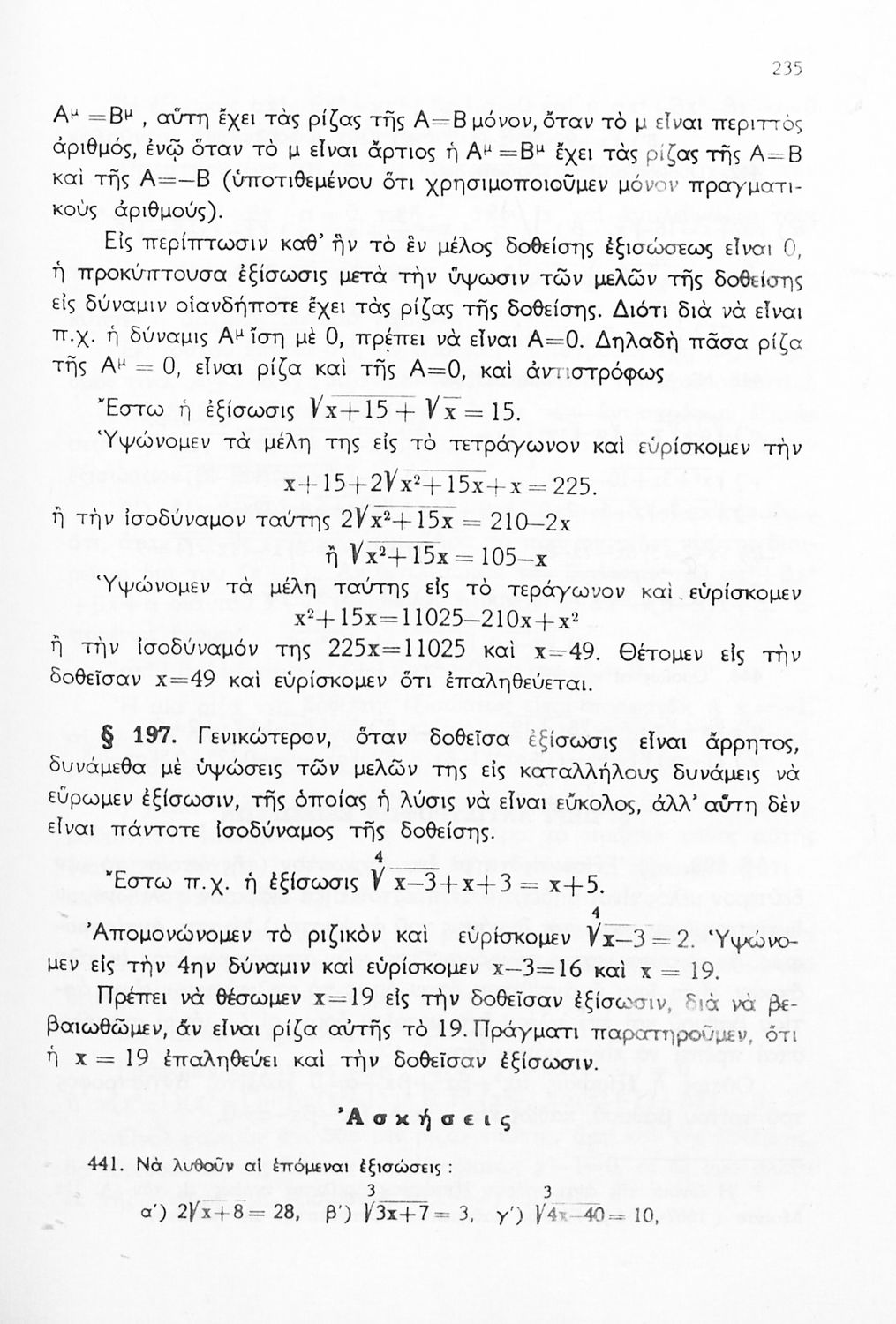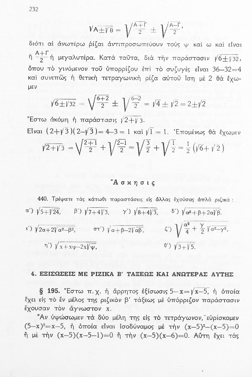 Σχολικό εγχειρίδιο Μαθηματικών Δ', Ε' και ΣΤ΄ τάξεων του Γυμνασίου που παρουσιάζει τις βασικές έννοιες της Άλγεβρας, εστιάζει τις ιδιότητες των αριθμών και περιέχει ασκήσεις εξισώσεων, λογαρίθμων και παραγώγων.