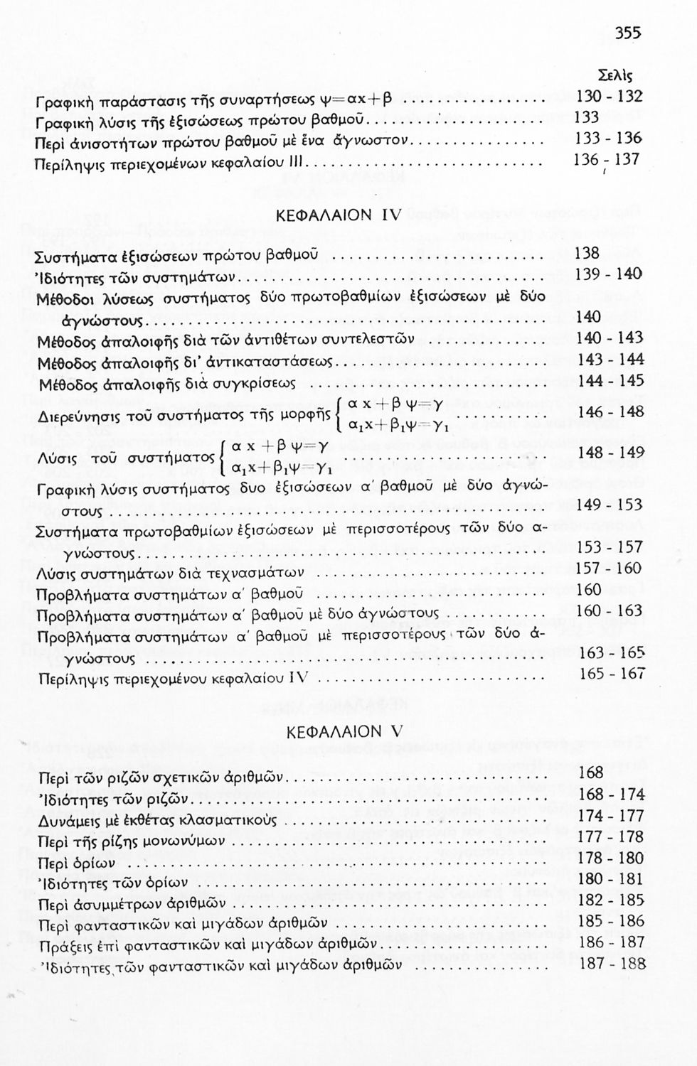 Παρουσίαση περιεχομένου: Σχολικό εγχειρίδιο Μαθηματικών Δ', Ε' και ΣΤ΄ τάξεων του Γυμνασίου που παρουσιάζει τις βασικές έννοιες της Άλγεβρας, εστιάζει τις ιδιότητες των αριθμών και περιέχει ασκήσεις εξισώσεων, λογαρίθμων και παραγώγων.