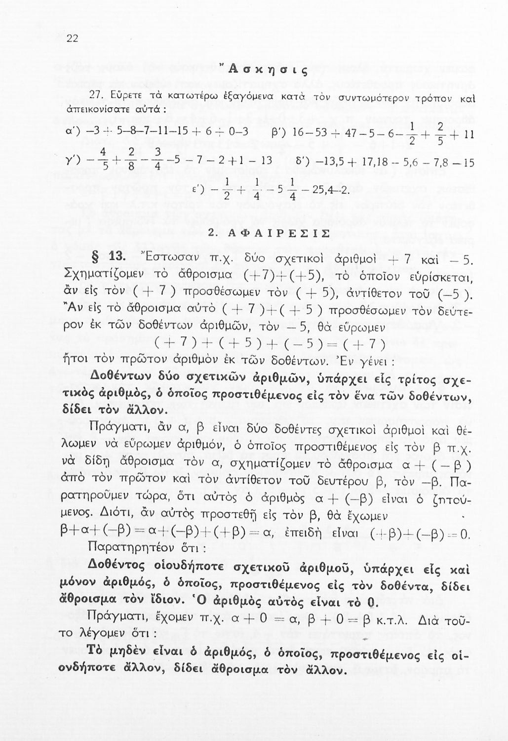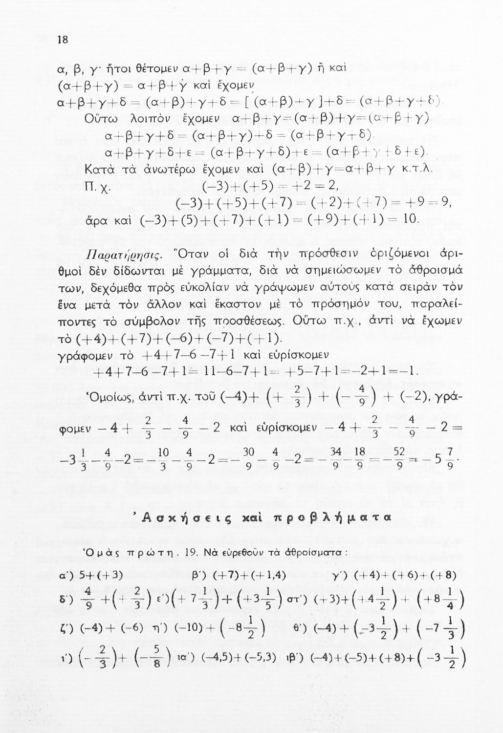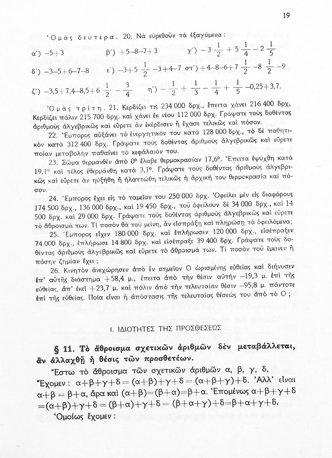 Βαθμίδα εκπαίδευσης: Δευτεροβάθμια Τάξη: Δ' Γυμνασίου / Ε' Γυμνασίου / ΣΤ' Γυμνασίου Μάθημα: Μαθηματικά Γλώσσα: Απλή καθαρεύουσα Παρουσίαση περιεχομένου: Σχολικό εγχειρίδιο Μαθηματικών Δ', Ε' και ΣΤ΄ τάξεων του Γυμνασίου που παρουσιάζει τις βασικές έννοιες της Άλγεβρας, εστιάζει τις ιδιότητες των αριθμών και περιέχει ασκήσεις εξισώσεων, λογαρίθμων και παραγώγων. |