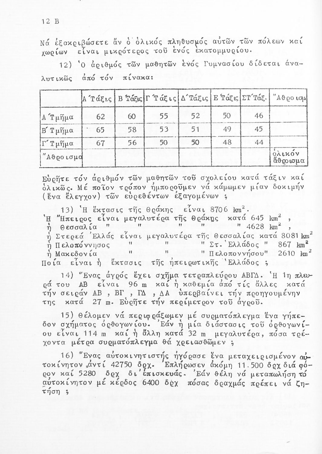 Τάξη:  Α' Γυμνασίου / Β' Γυμνασίου