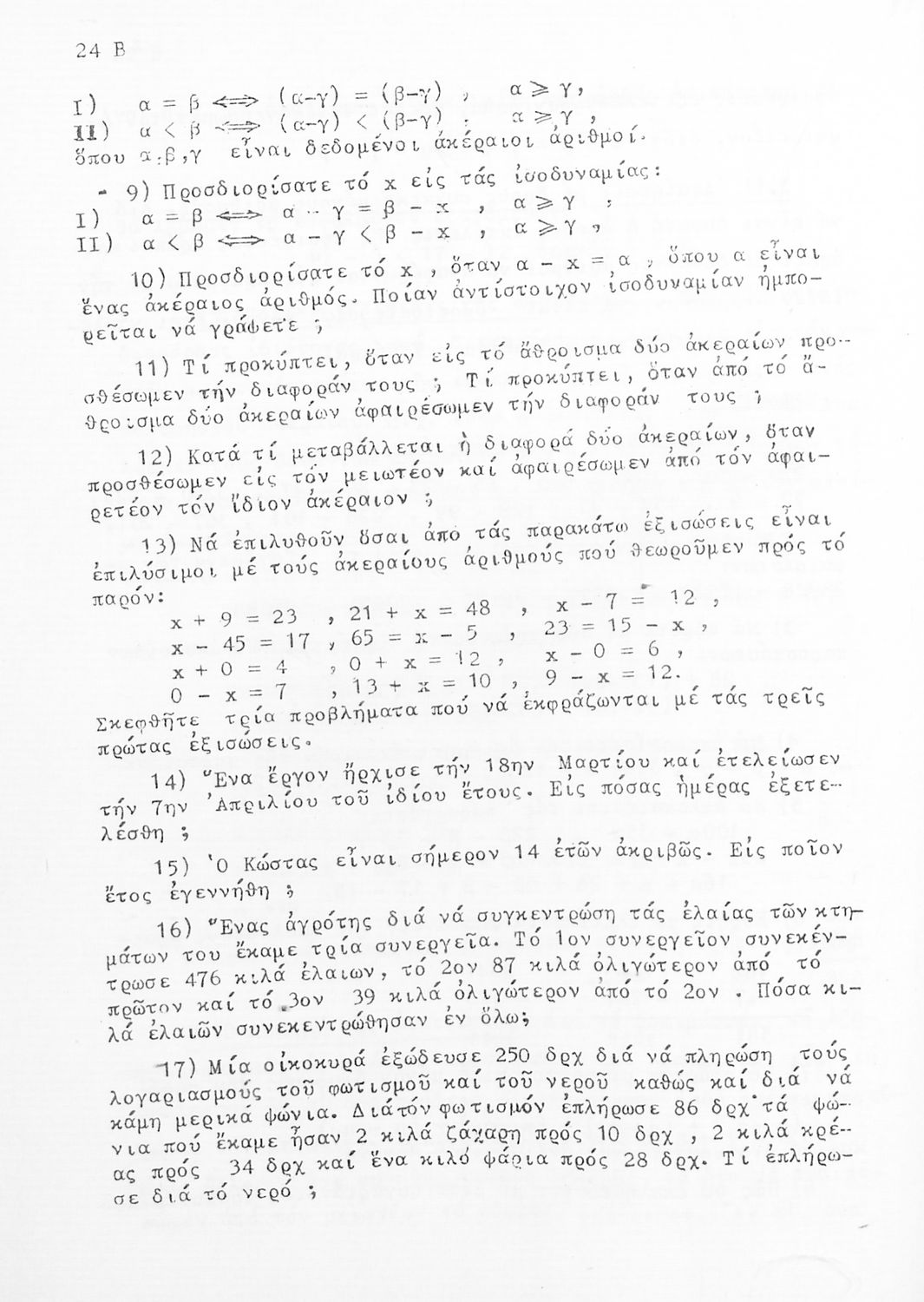 Τάξη:  Α' Ελληνικού Σχολείου / Β' Ελληνικού Σχολείου / Γ' Ελληνικού Σχολείου / Παρθεναγωγείο / Εμπορικές και Πρακτικές Σχολές