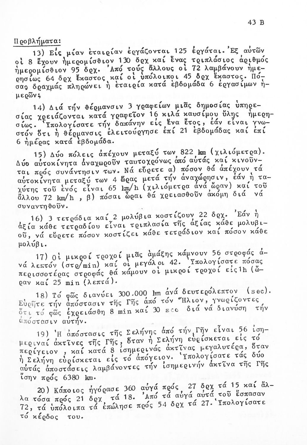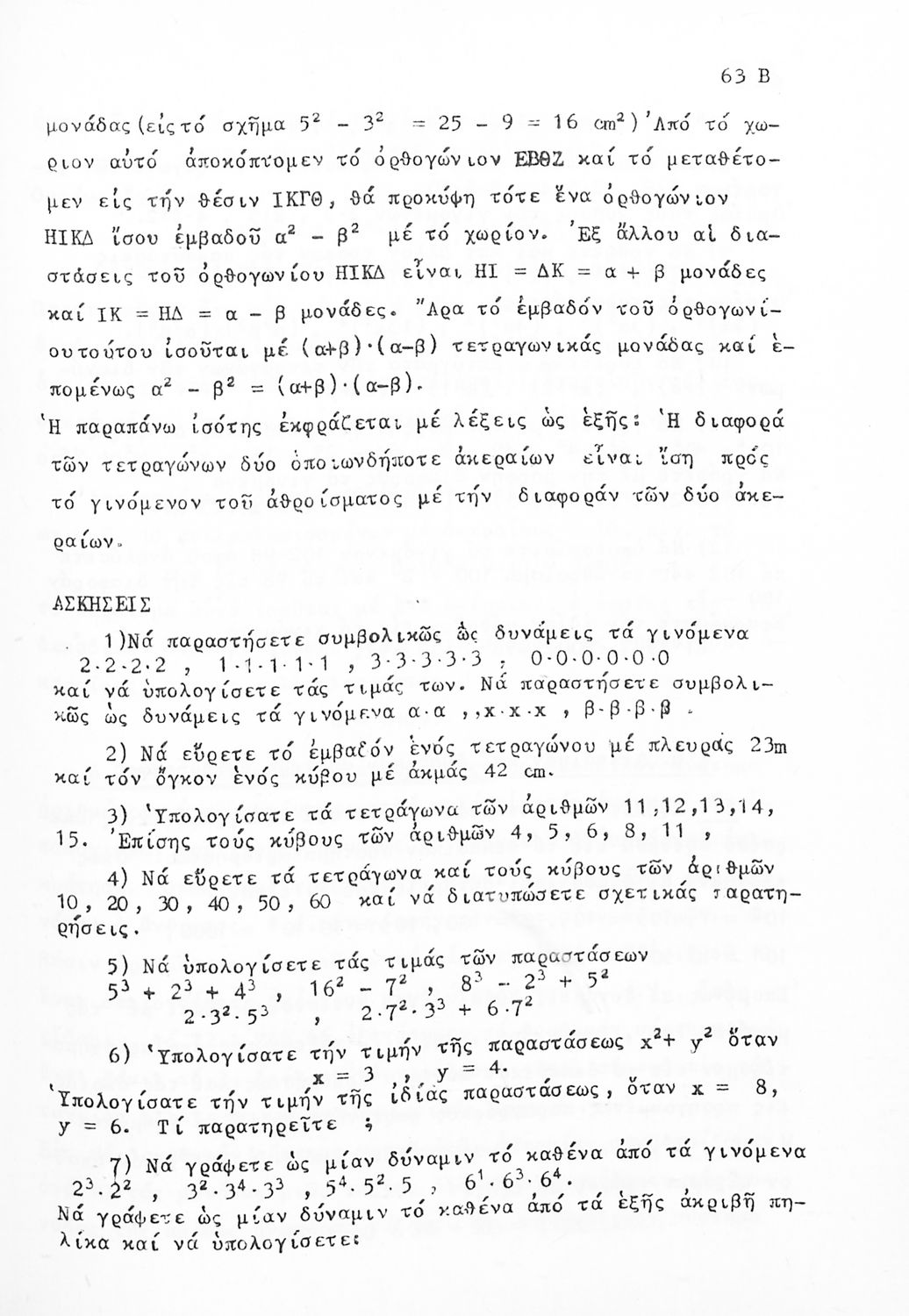 Σχολικό εγχειρίδιο Μαθηματικών Α' Γυμνασίου που περιλαμβάνει γεωμετρία με έμφαση στον υπολογισμό γωνιών και εμβαδού και άλγεβρας με έμφαση στους ακέραιους αριθμούς και τα κλάσματα. Φέρει το σύμβολο της δικτατορίας.
