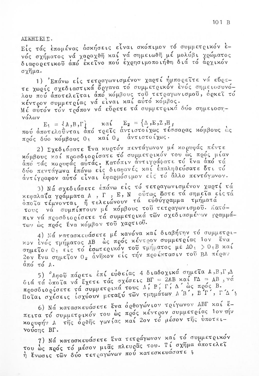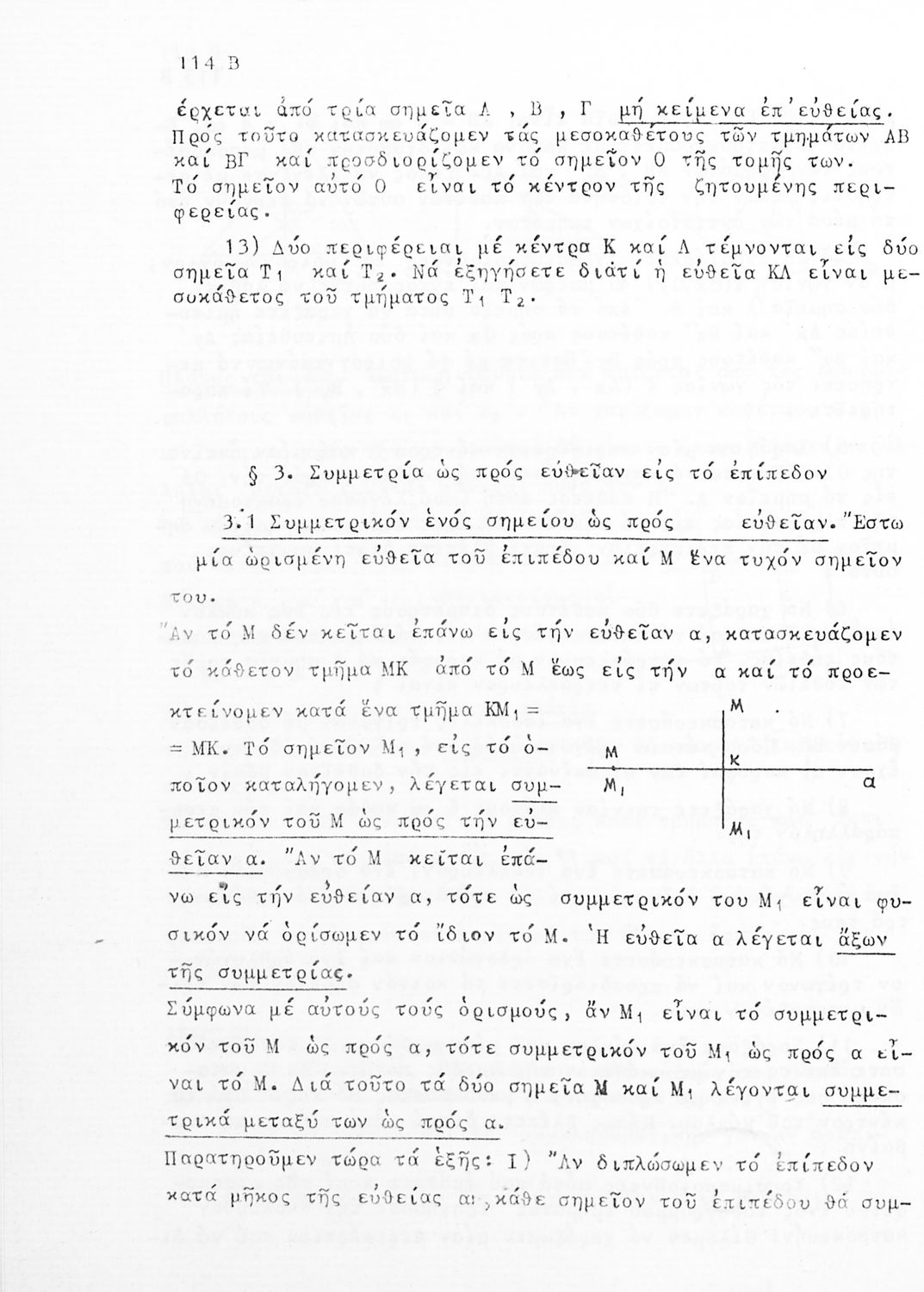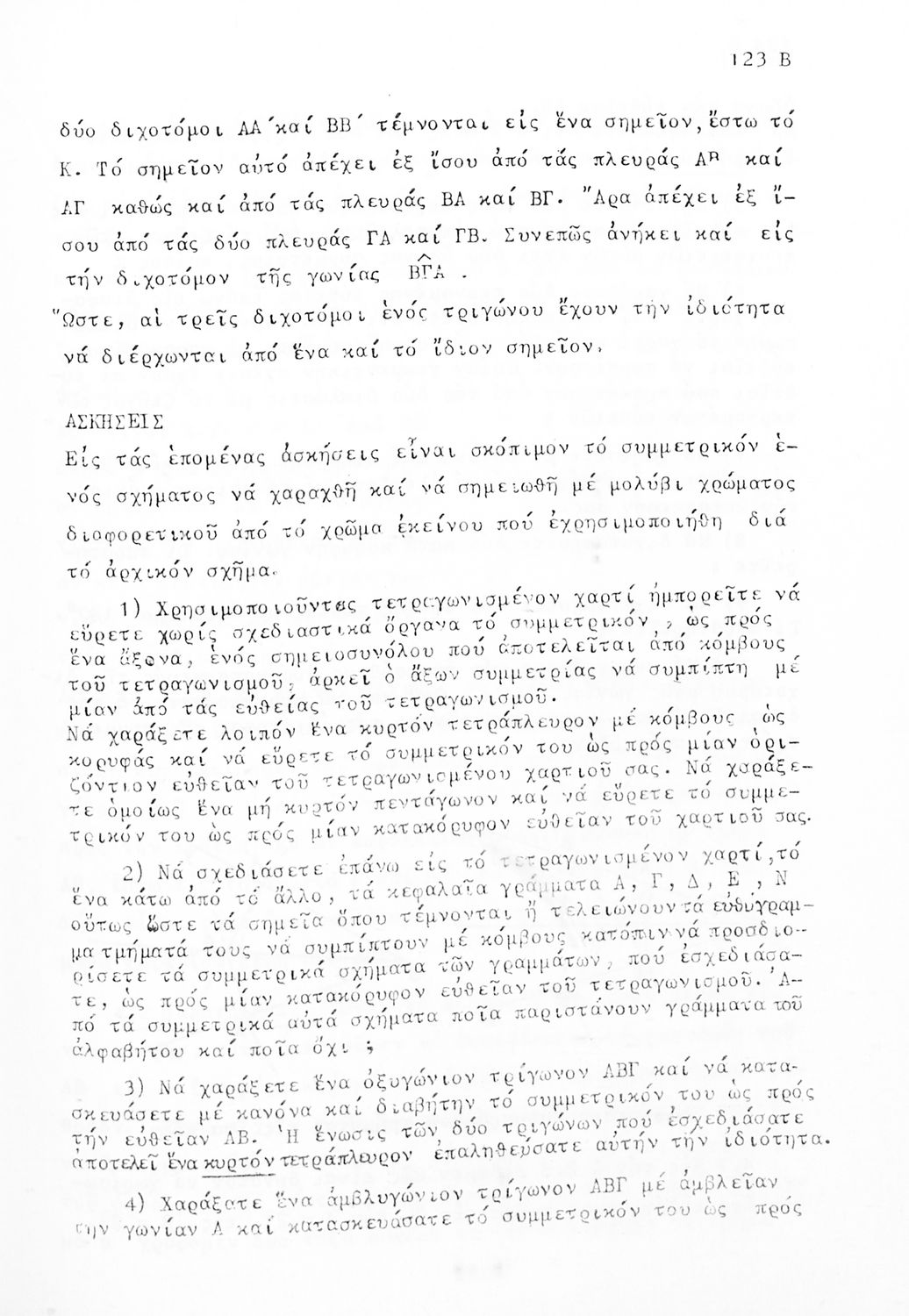 Σχολικό εγχειρίδιο Γεωμετρίας για την Α΄ και Β΄ Γυμνασίου χωρισμένο σε Επιπεδομετρία και Στερεομετρία που περιέχει θεωρία και ασκήσεις.
