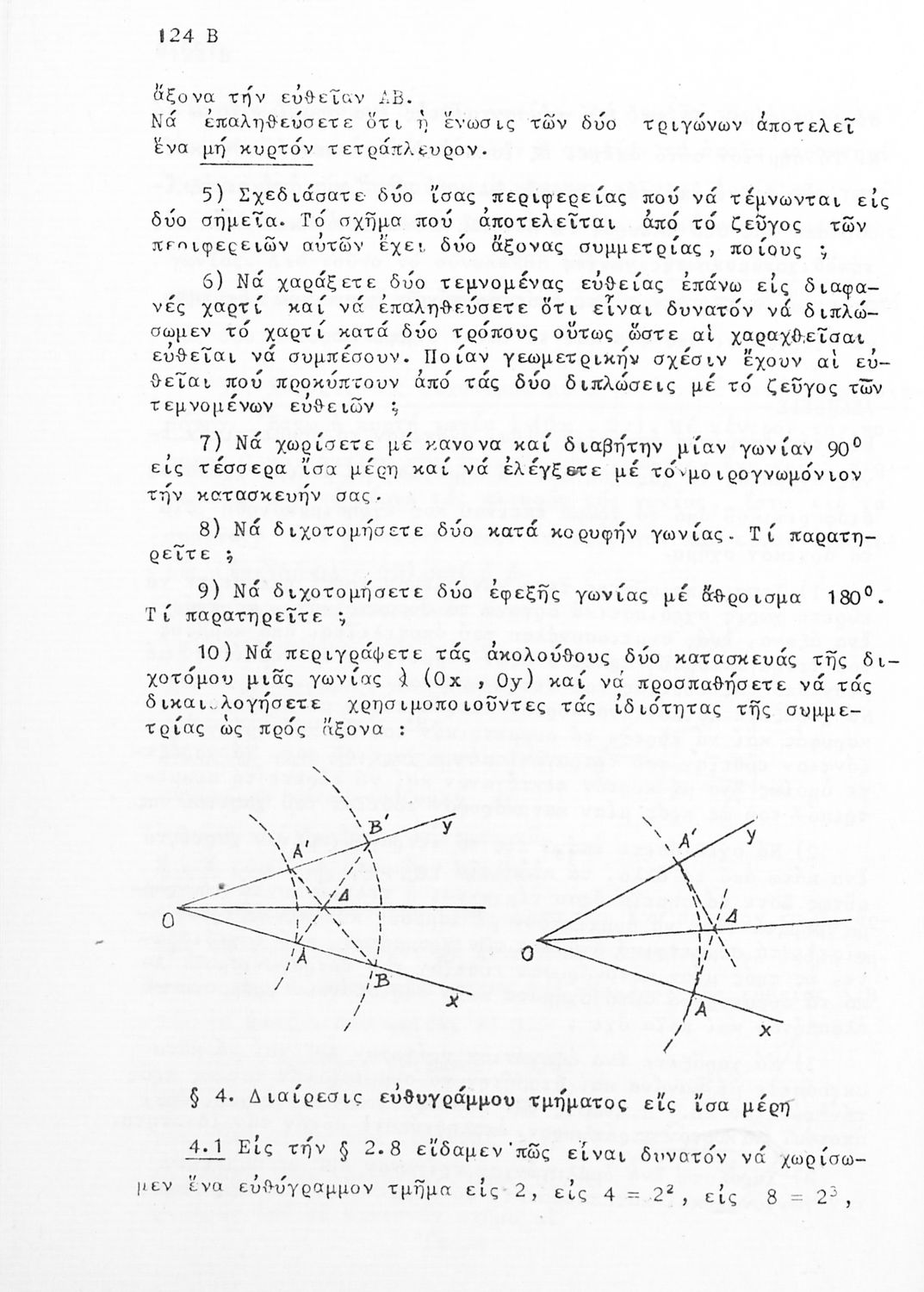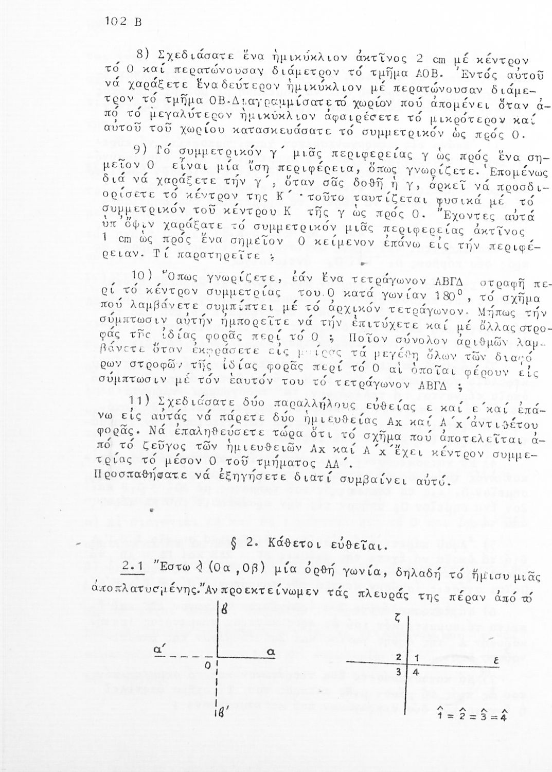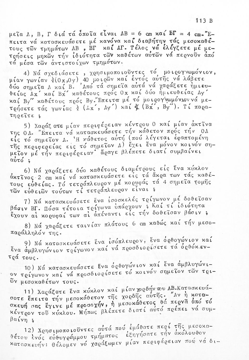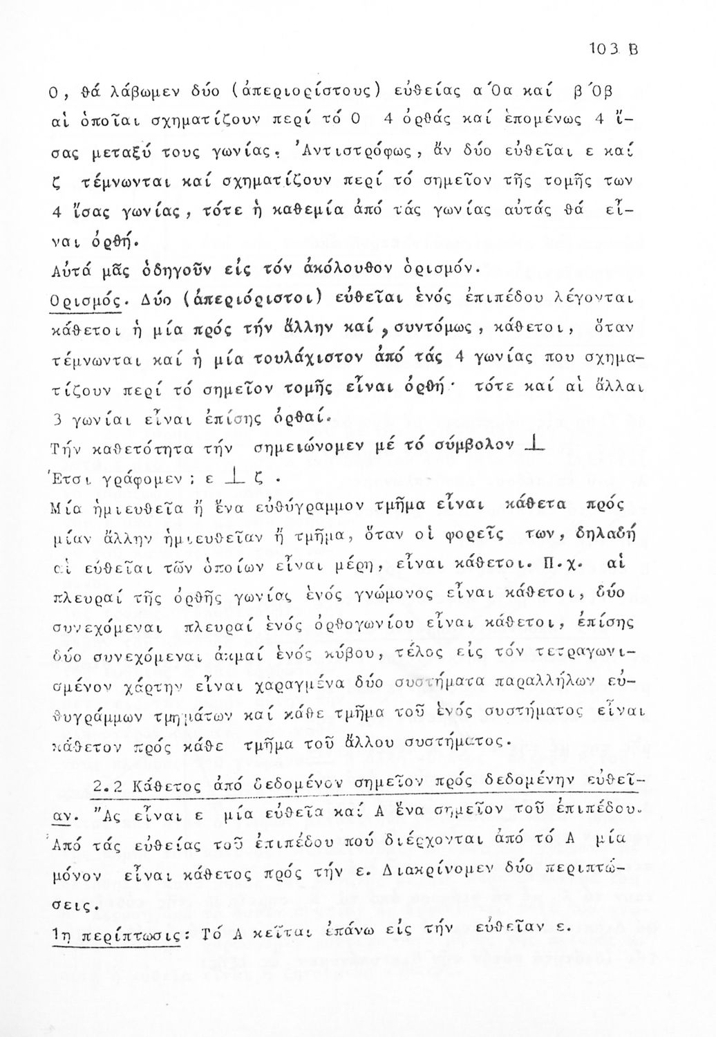 Σχολικό εγχειρίδιο Γεωμετρίας για την Α΄ και Β΄ Γυμνασίου χωρισμένο σε Επιπεδομετρία και Στερεομετρία που περιέχει θεωρία και ασκήσεις.