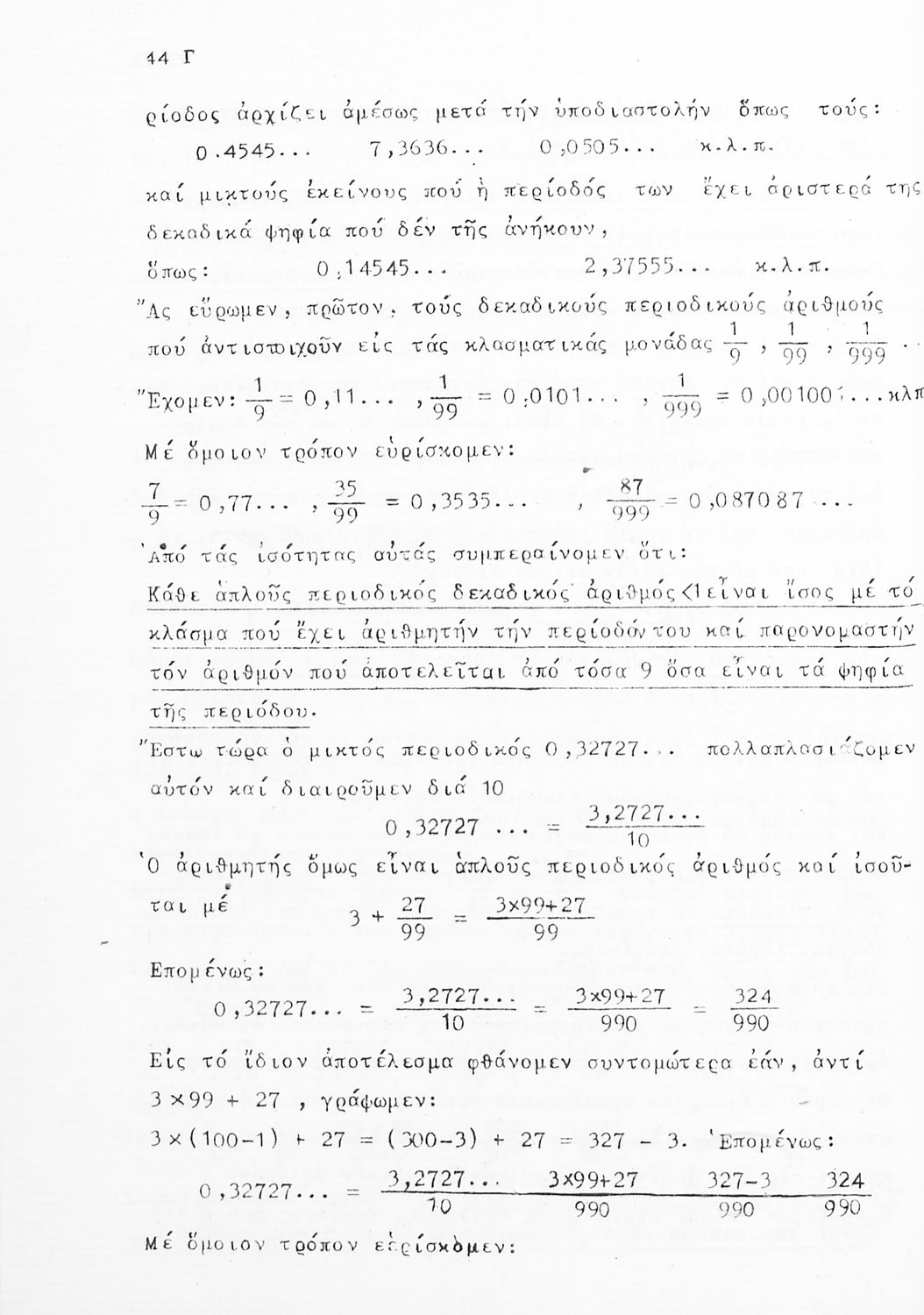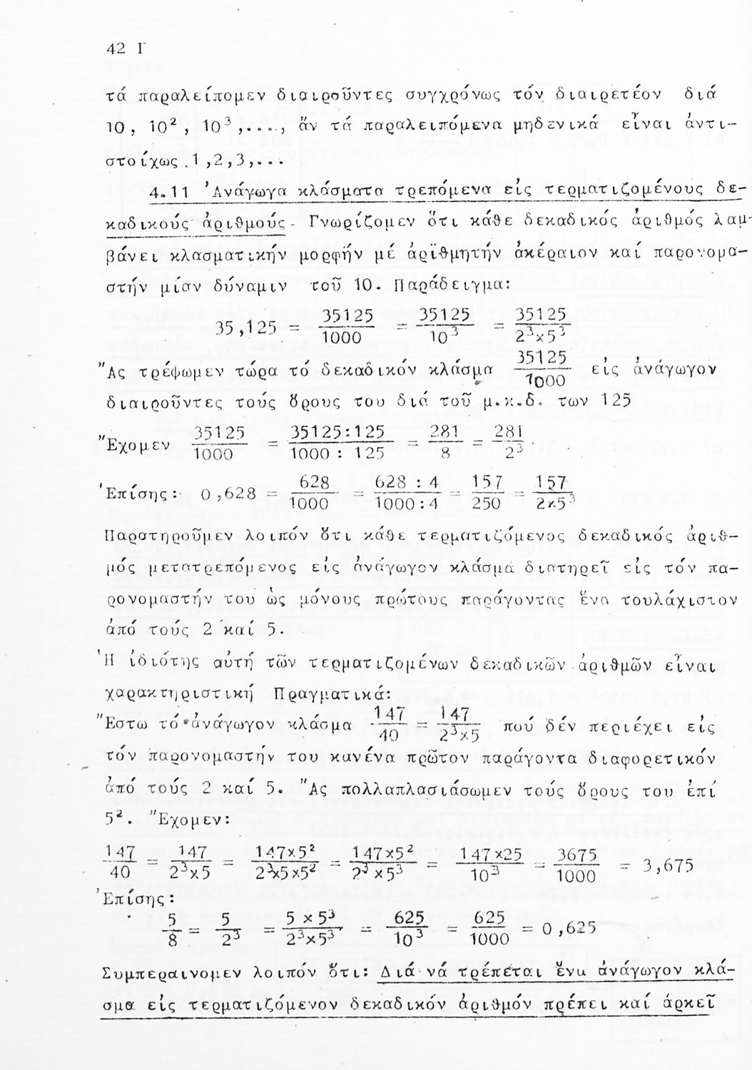 Σχολικό εγχειρίδιο Αριθμητικής για τις Α΄, Β΄, Γ΄ Γυμνασίου και τα Ανώτερα Παρθεναγωγεία που είναι χωρισμένο σε θεωρία και ασκήσεις και εστιάζει στις αριθμητικές πράξεις με κλάσματα και ακέραιους και συμμιγείς