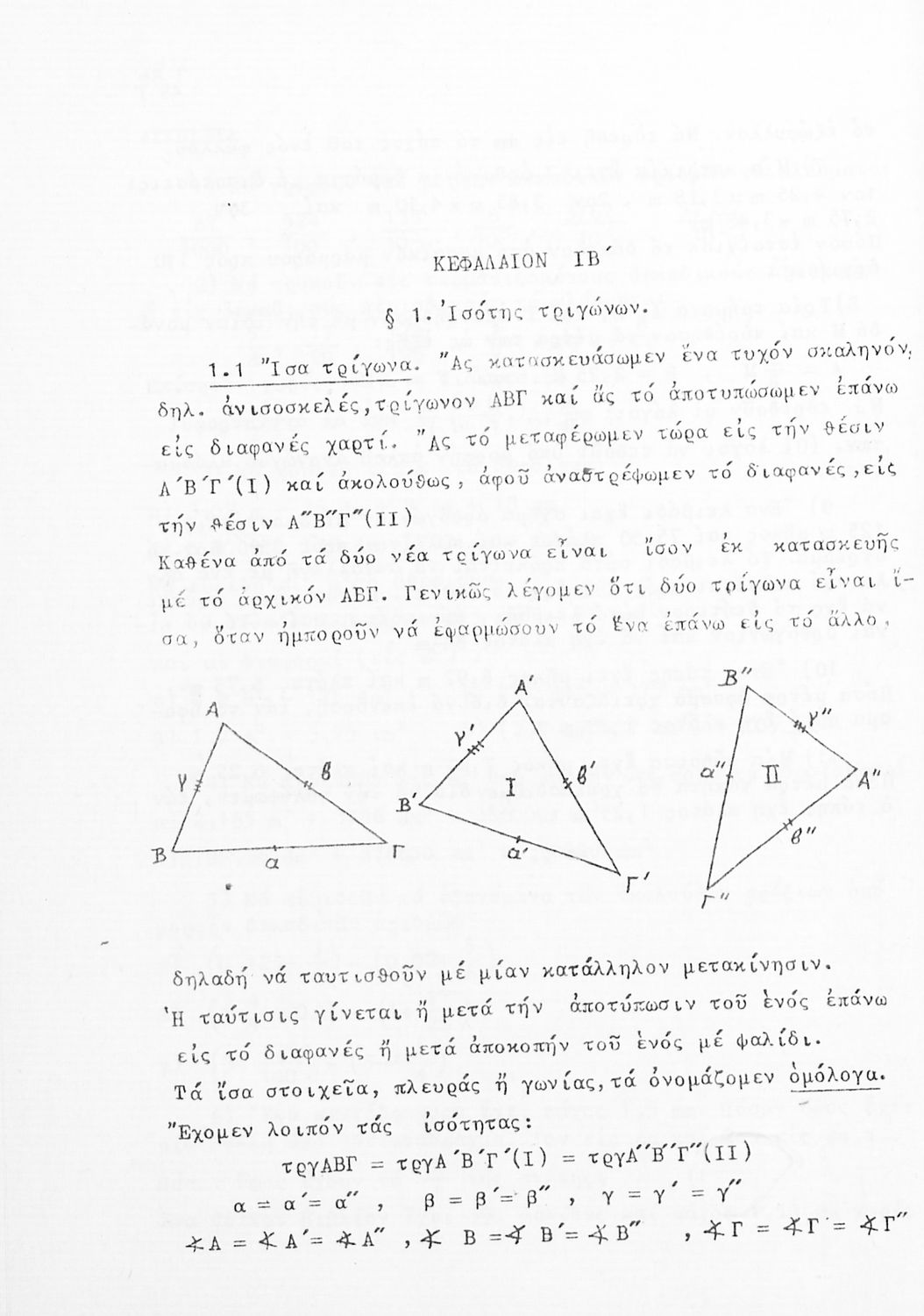 Σχολικό εγχειρίδιο Γεωμετρίας για την Α΄ και Β΄ Γυμνασίου χωρισμένο σε Επιπεδομετρία και Στερεομετρία που περιέχει θεωρία και ασκήσεις.