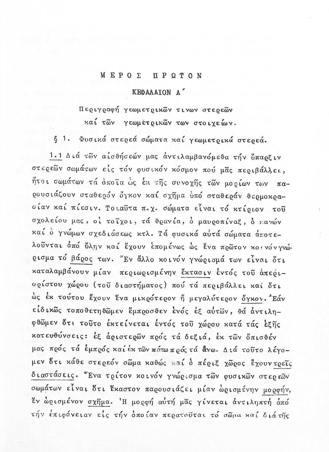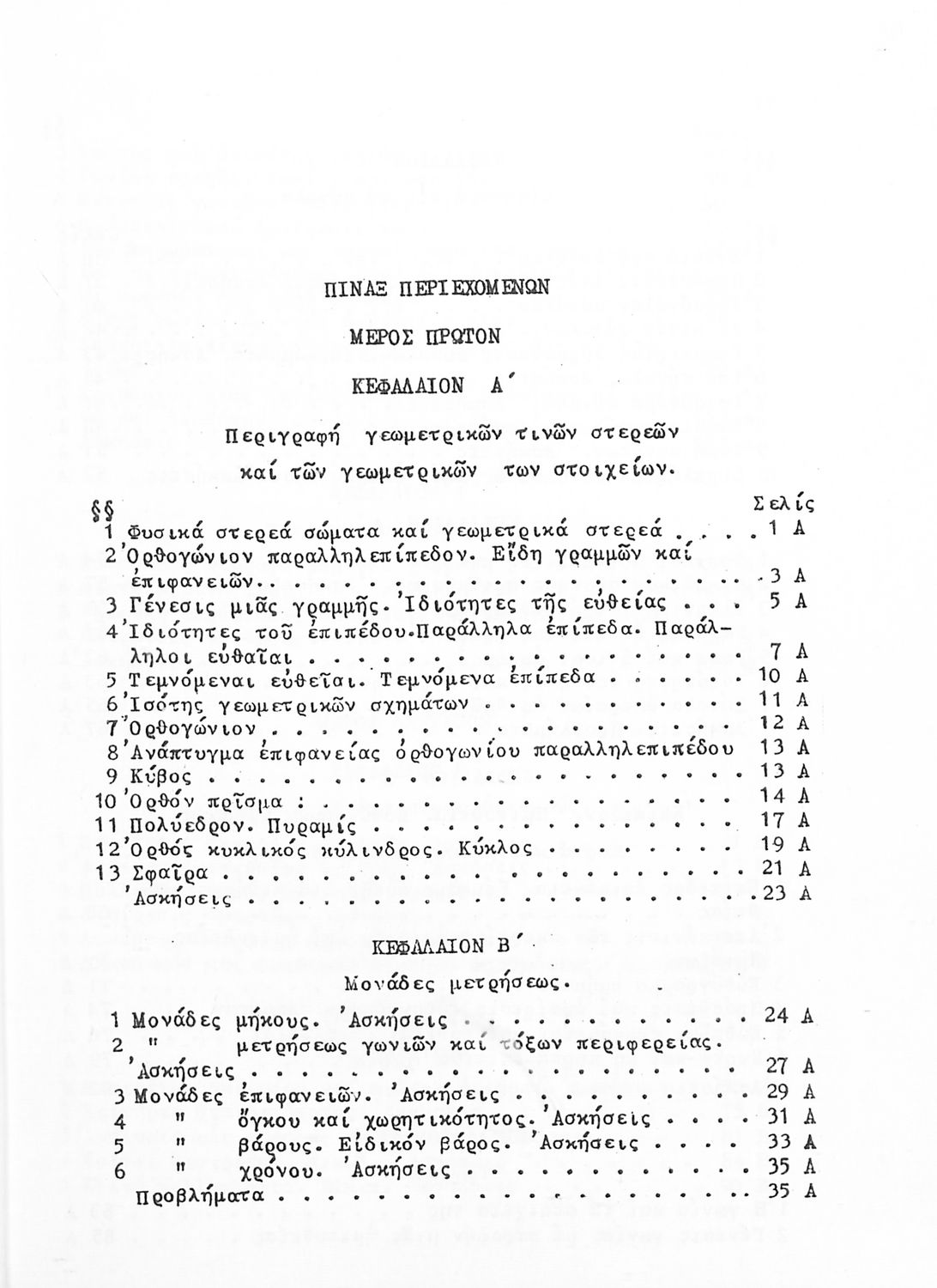 Σχολικό εγχειρίδιο Γεωμετρίας για την Α΄ και Β΄ Γυμνασίου χωρισμένο σε Επιπεδομετρία και Στερεομετρία που περιέχει θεωρία και ασκήσεις.