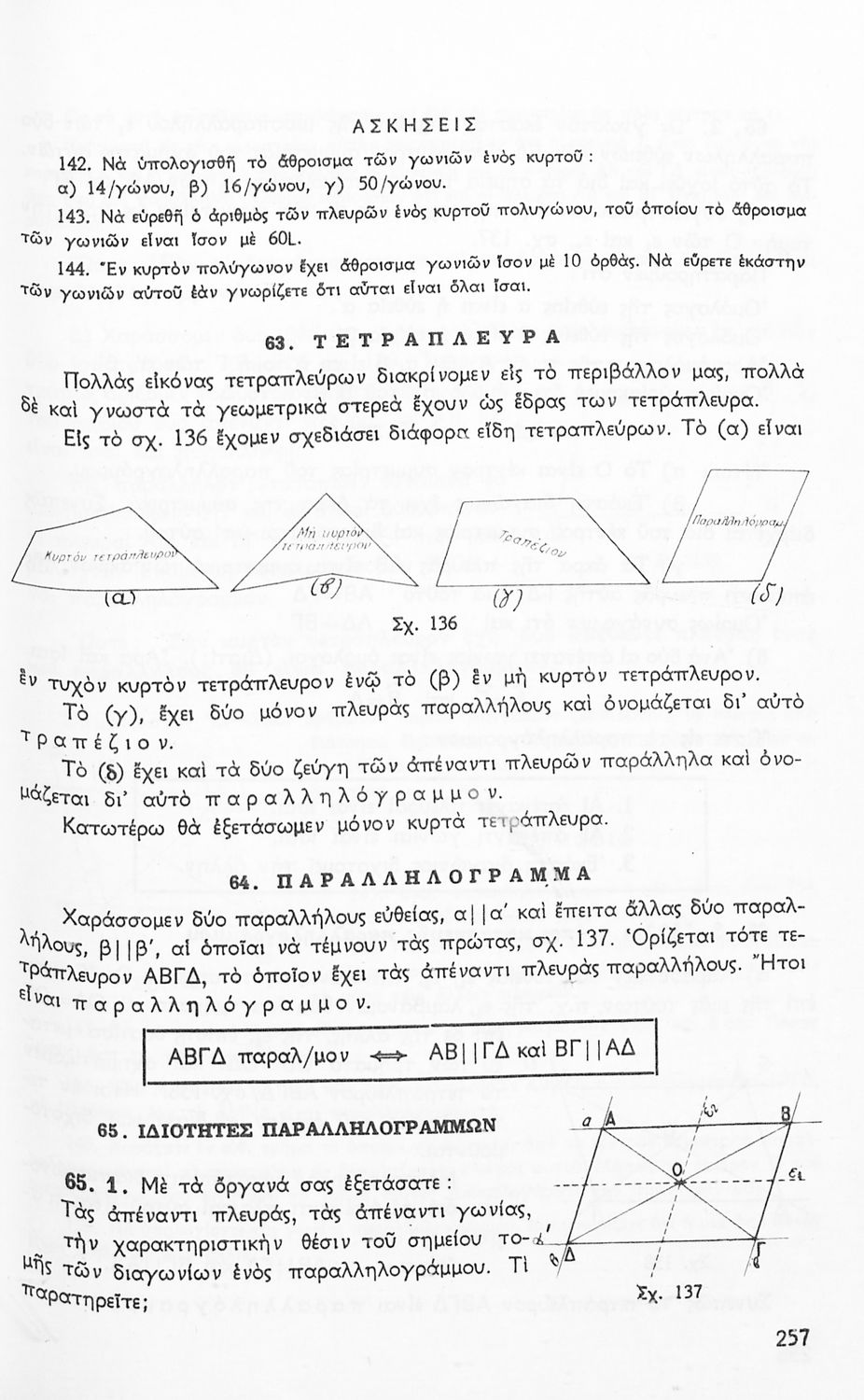 Σχολικό εγχειρίδιο Γεωμετρίας για την Α΄ και Β΄ Γυμνασίου χωρισμένο σε Επιπεδομετρία και Στερεομετρία που περιέχει θεωρία και ασκήσεις.