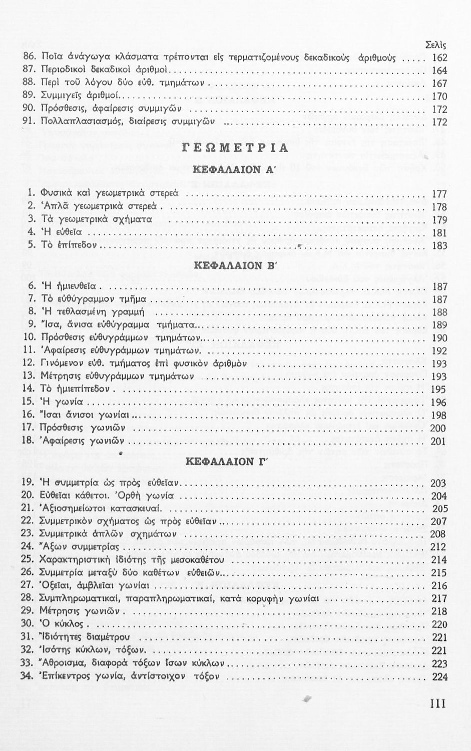 Σχολικό εγχειρίδιο Γεωμετρίας για τις Α΄, Β΄, Γ΄ Γυμνασίου που είναι χωρισμένο σε Επιπεδομετρία και Στερεομετρία και περιλαμβάνει θεωρία και ασκήσεις.