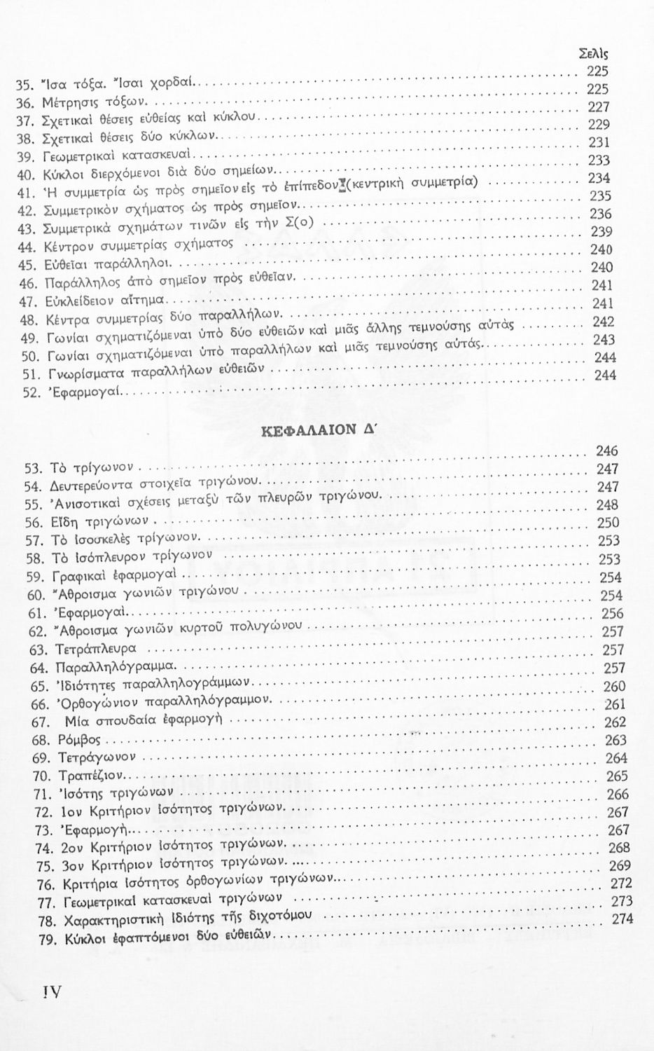 Σχολικό εγχειρίδιο Μαθηματικών Α' Γυμνασίου που περιέχει άλγεβρα με έμφαση στις αριθμητικές πράξεις με ακέραιους, δεκαδικούς και κλάσματα, και γεωμετρία με έμφαση στην επιπεδομετρία. Περιέχει και εισαγωγή στη θεωρία των συνόλων. Φέρει το σύμβολο της δικτατορίας.