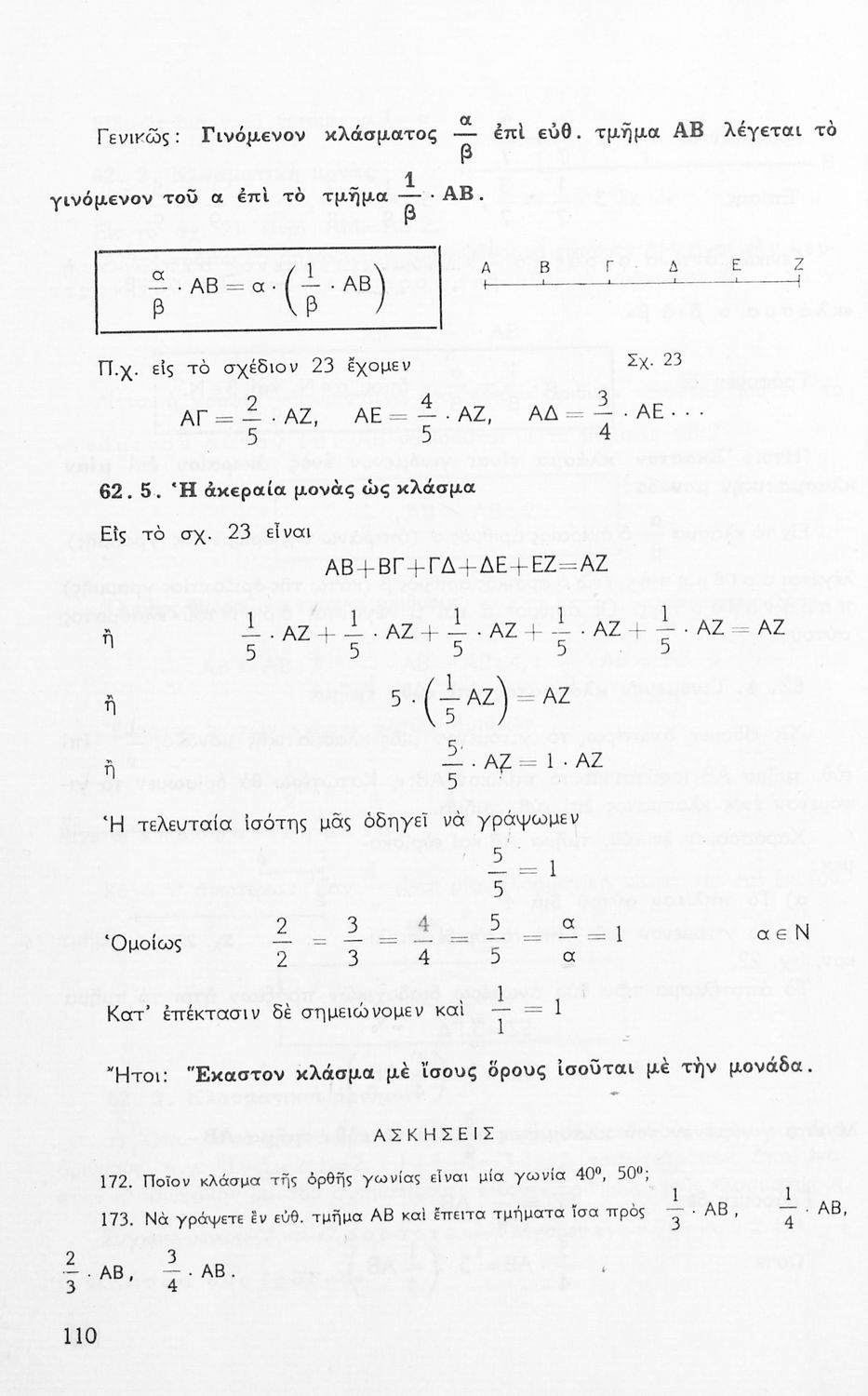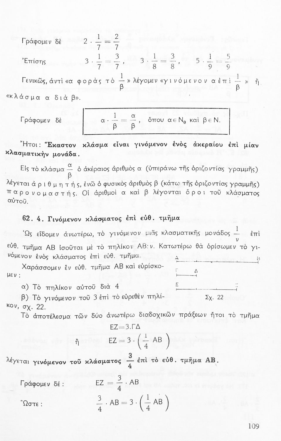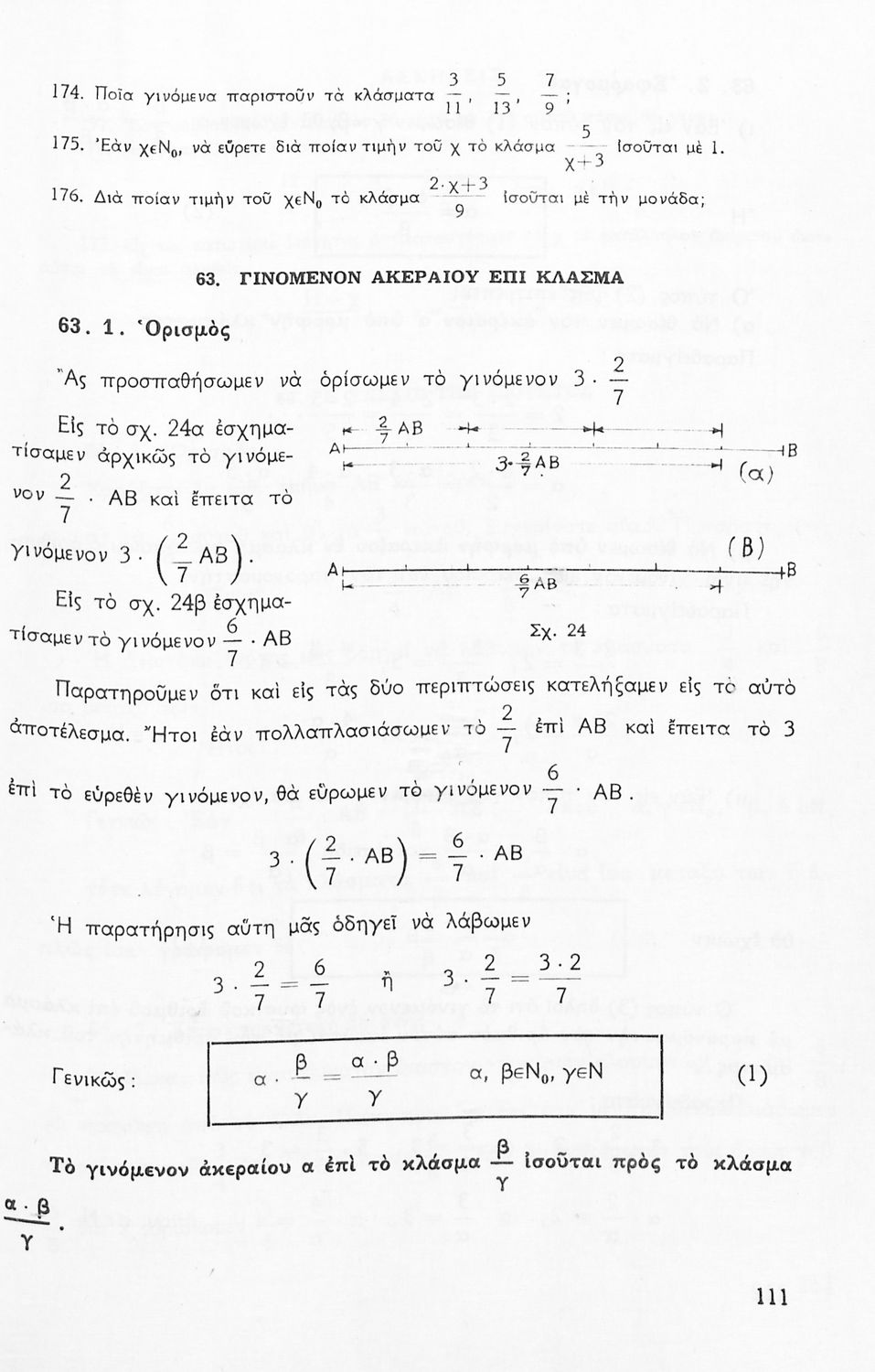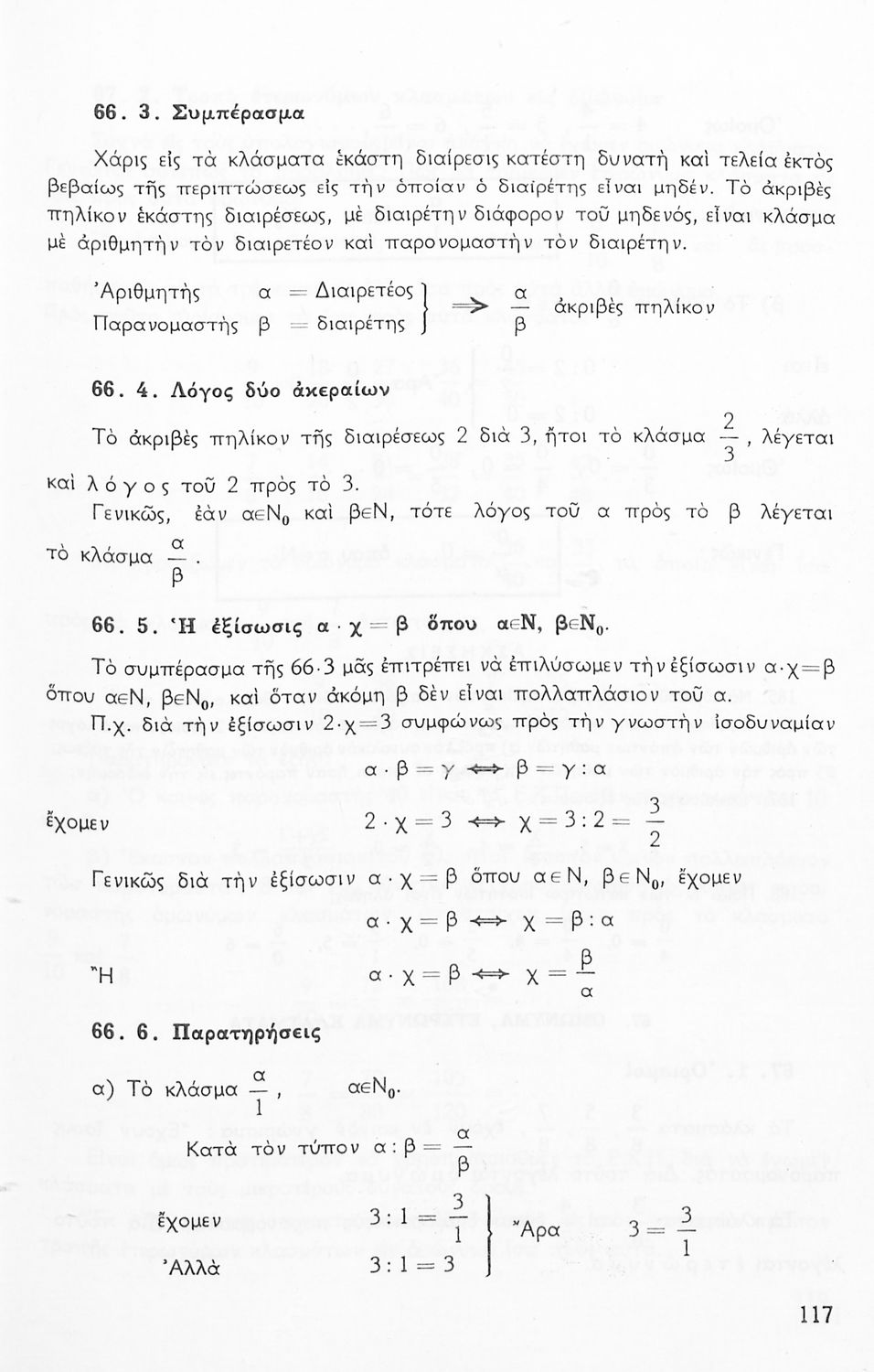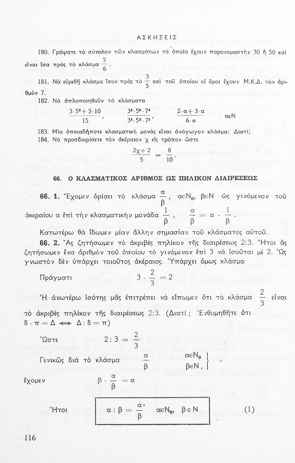 Σχολικό εγχειρίδιο Μαθηματικών Α' Γυμνασίου που περιέχει άλγεβρα με έμφαση στις αριθμητικές πράξεις με ακέραιους, δεκαδικούς και κλάσματα, και γεωμετρία με έμφαση στην επιπεδομετρία. Περιέχει και εισαγωγή στη θεωρία των συνόλων. Φέρει το σύμβολο της δικτατορίας.