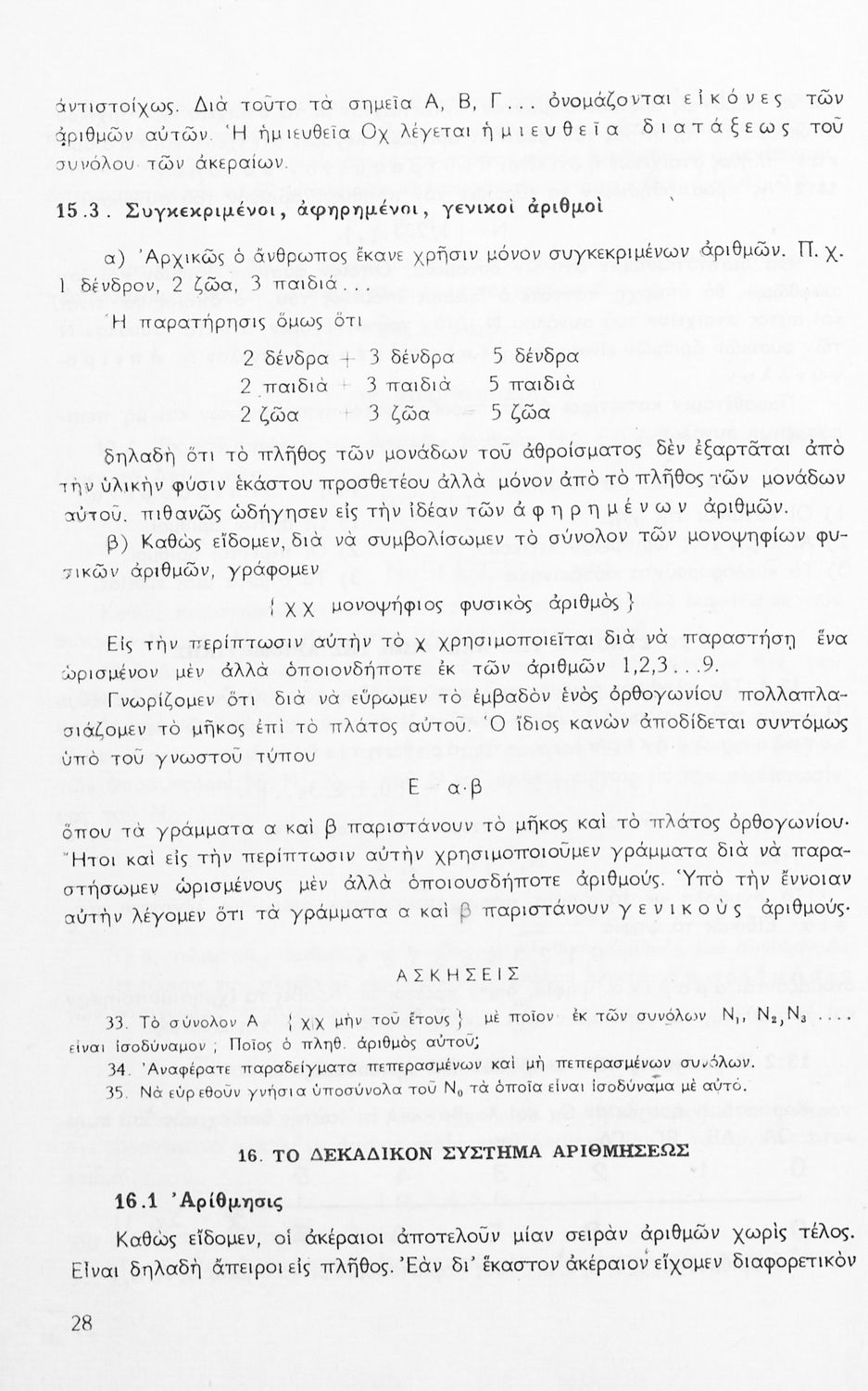 Σχολικό εγχειρίδιο Αριθμητικής για τις Α΄, Β΄, Γ΄ Γυμνασίου που είναι χωρισμένο σε ορισμούς και ασκήσεις και εστιάζει στις ιδιότητες των αριθμητικών πράξεων, τα κλάσματα και την τετραγωνική ρίζα.