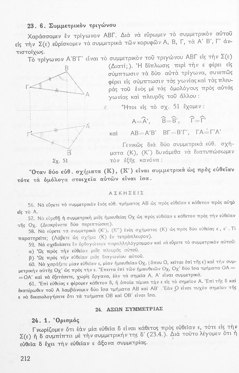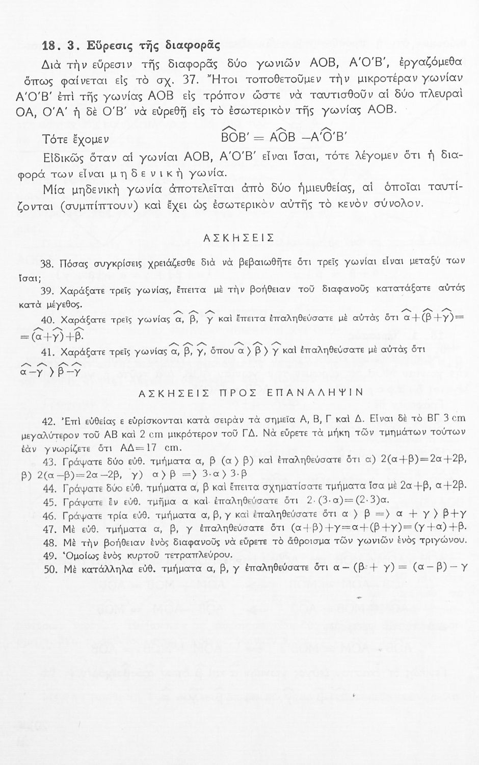 Σχολικό εγχειρίδιο Γεωμετρίας για την Α΄ και Β΄ Γυμνασίου χωρισμένο σε Επιπεδομετρία και Στερεομετρία που περιέχει θεωρία και ασκήσεις.