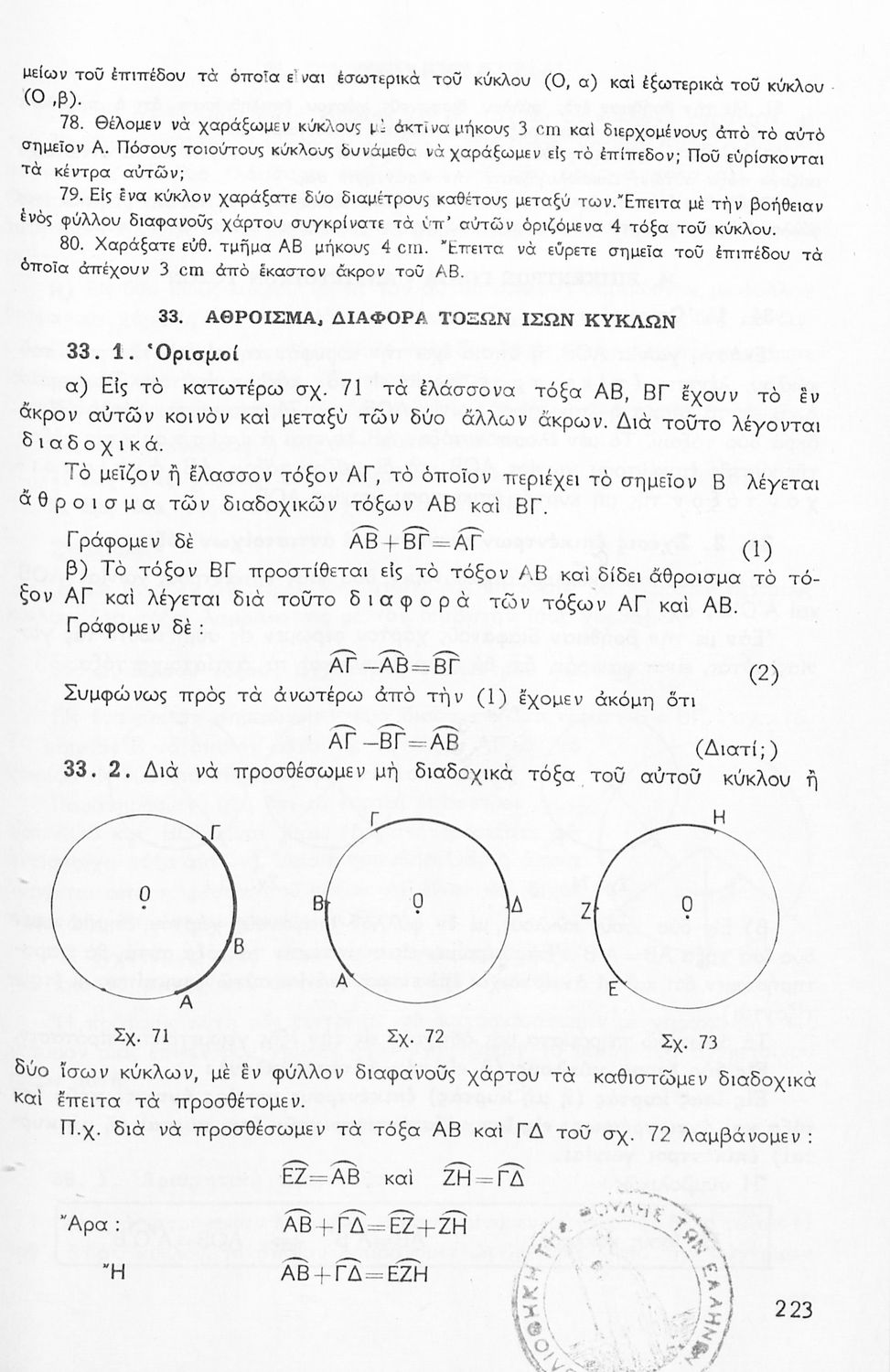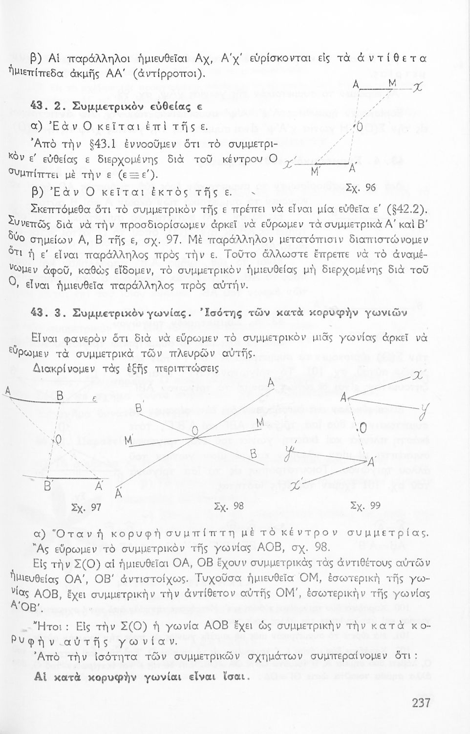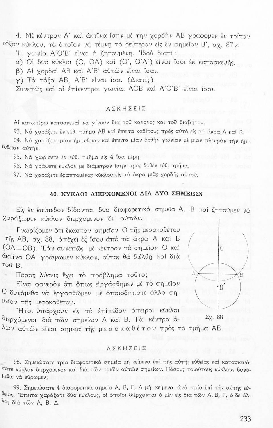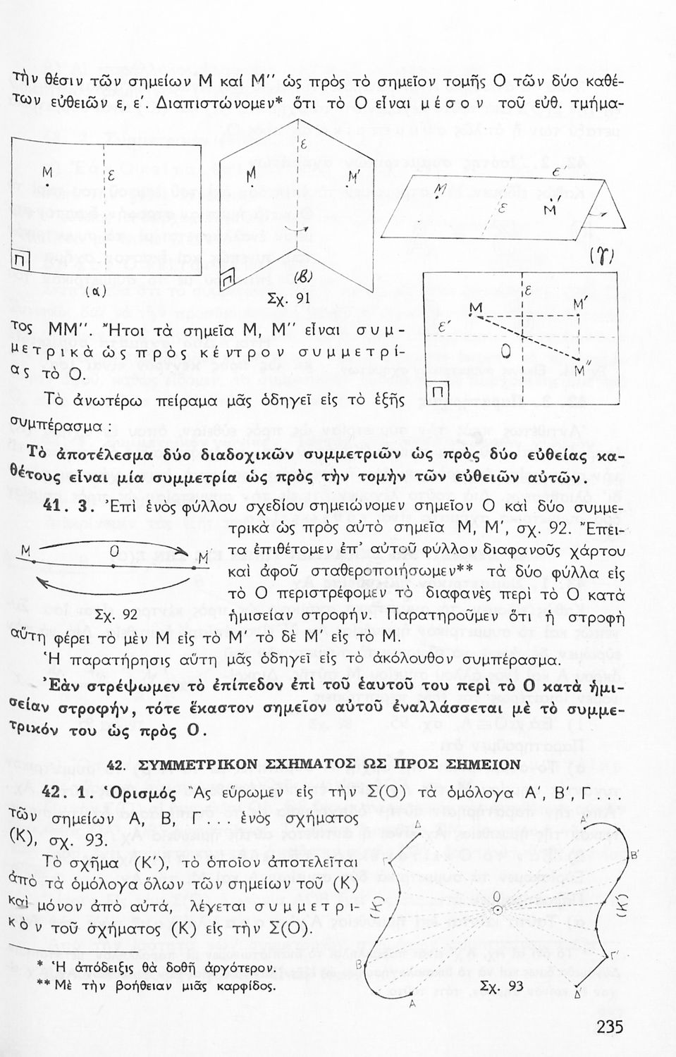 Σχολικό εγχειρίδιο Γεωμετρίας για την Α΄ και Β΄ Γυμνασίου χωρισμένο σε Επιπεδομετρία και Στερεομετρία που περιέχει θεωρία και ασκήσεις.