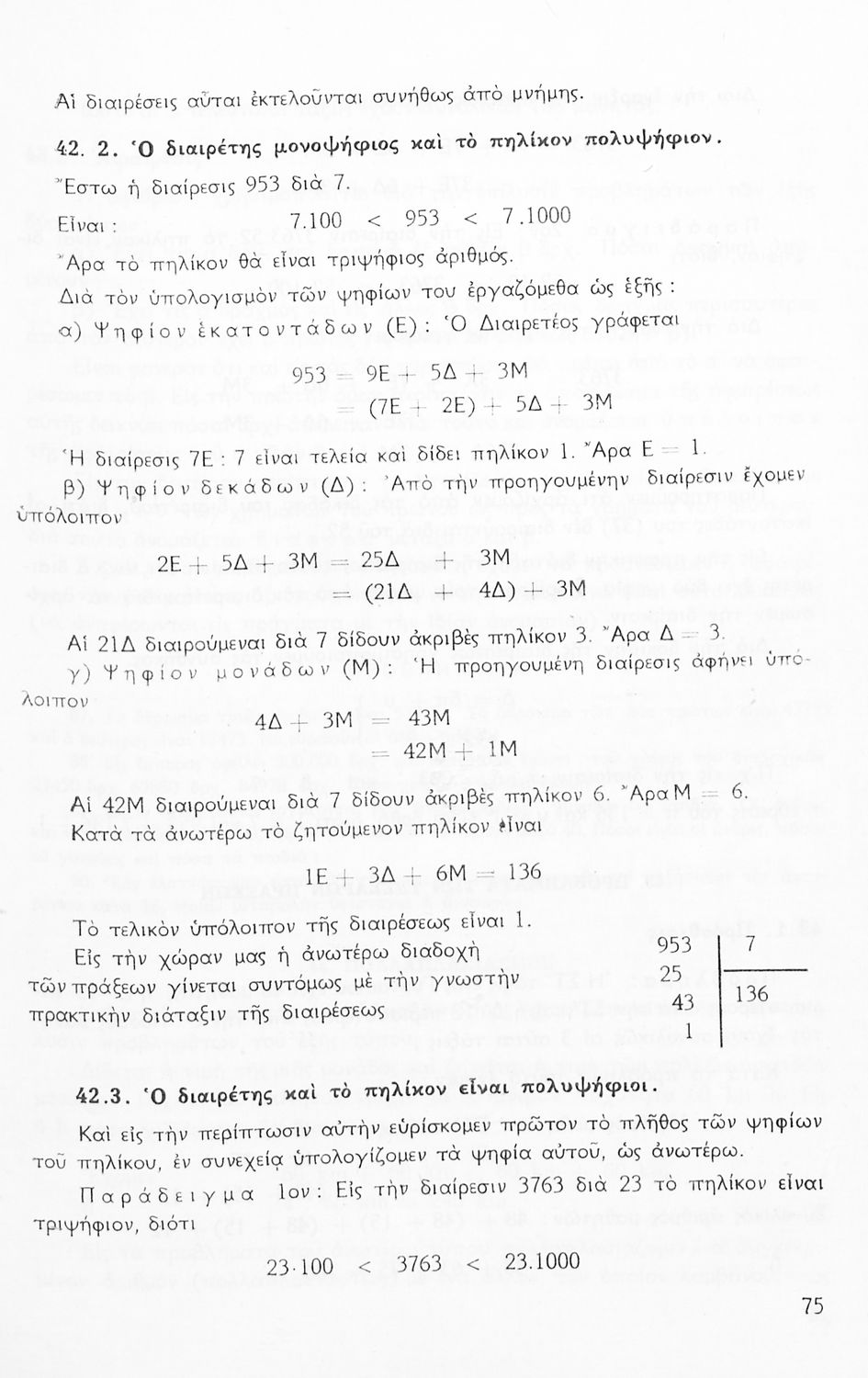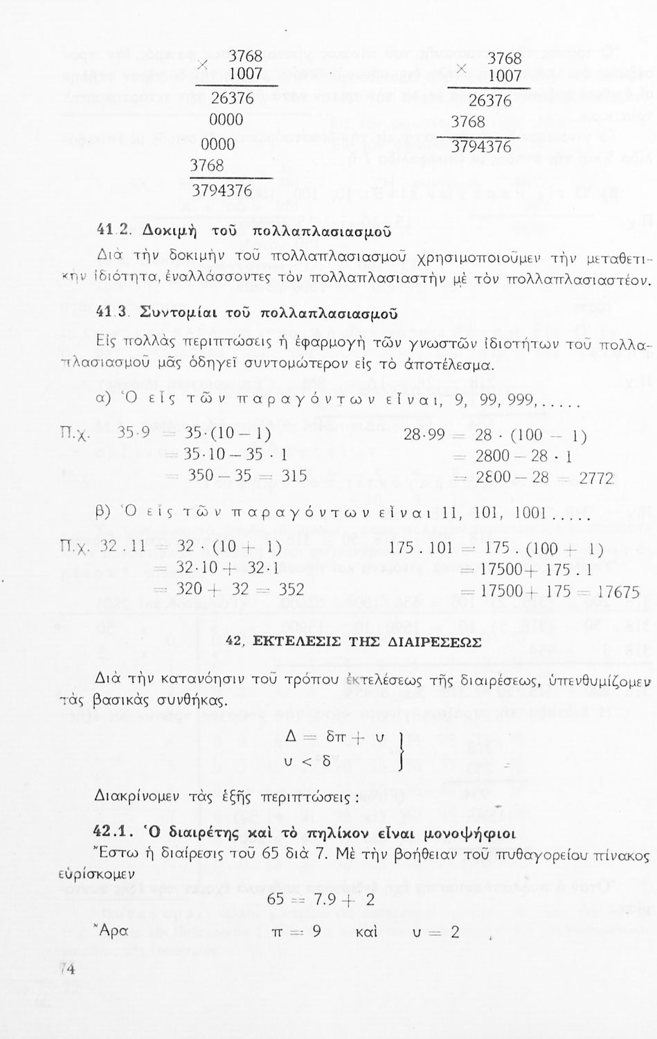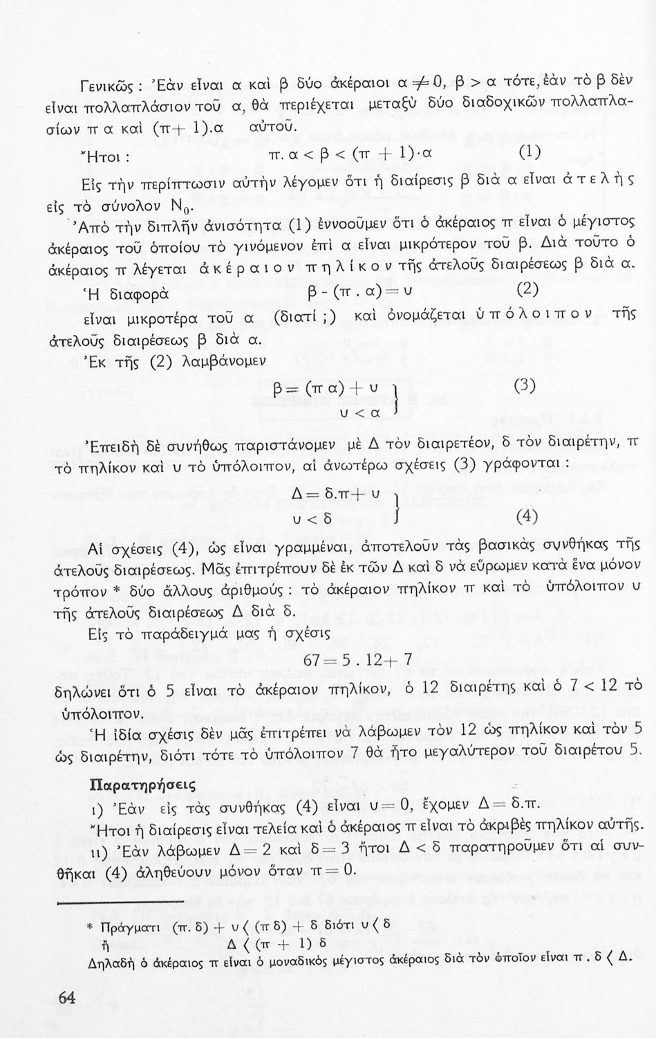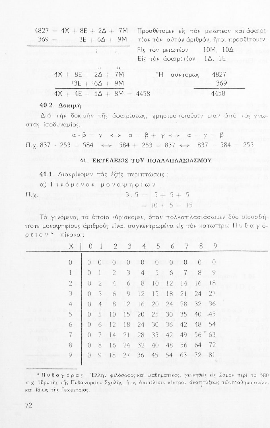Σχολικό εγχειρίδιο Μαθηματικών Α' Γυμνασίου που περιέχει άλγεβρα με έμφαση στις αριθμητικές πράξεις με ακέραιους, δεκαδικούς και κλάσματα, και γεωμετρία με έμφαση στην επιπεδομετρία. Περιέχει και εισαγωγή στη θεωρία των συνόλων. Φέρει το σύμβολο της δικτατορίας.