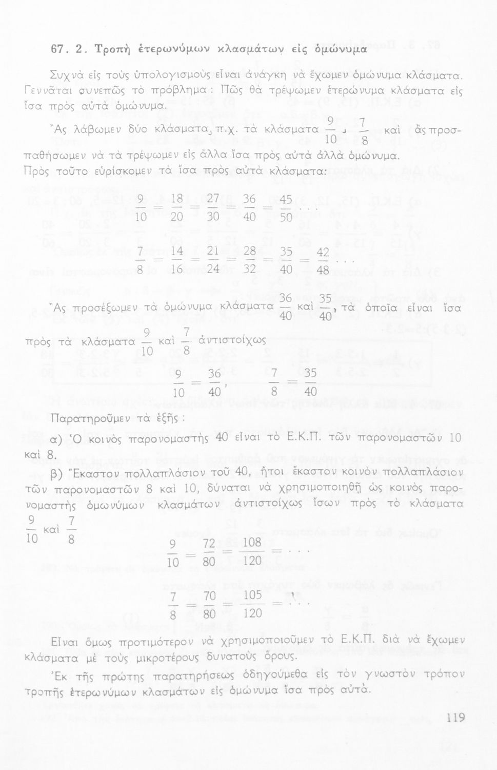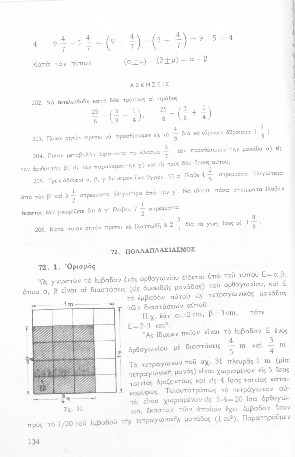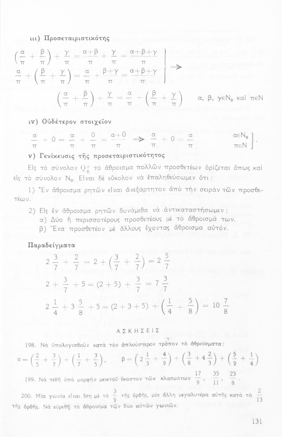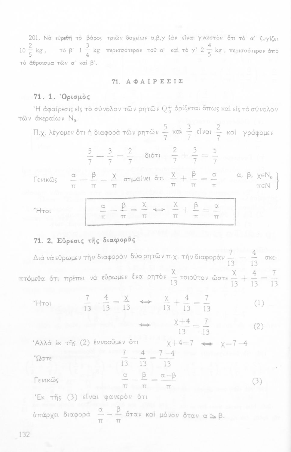 Σχολικό εγχειρίδιο Μαθηματικών Α' Γυμνασίου που περιέχει άλγεβρα με έμφαση στις αριθμητικές πράξεις με ακέραιους, δεκαδικούς και κλάσματα, και γεωμετρία με έμφαση στην επιπεδομετρία. Περιέχει και εισαγωγή στη θεωρία των συνόλων. Φέρει το σύμβολο της δικτατορίας.