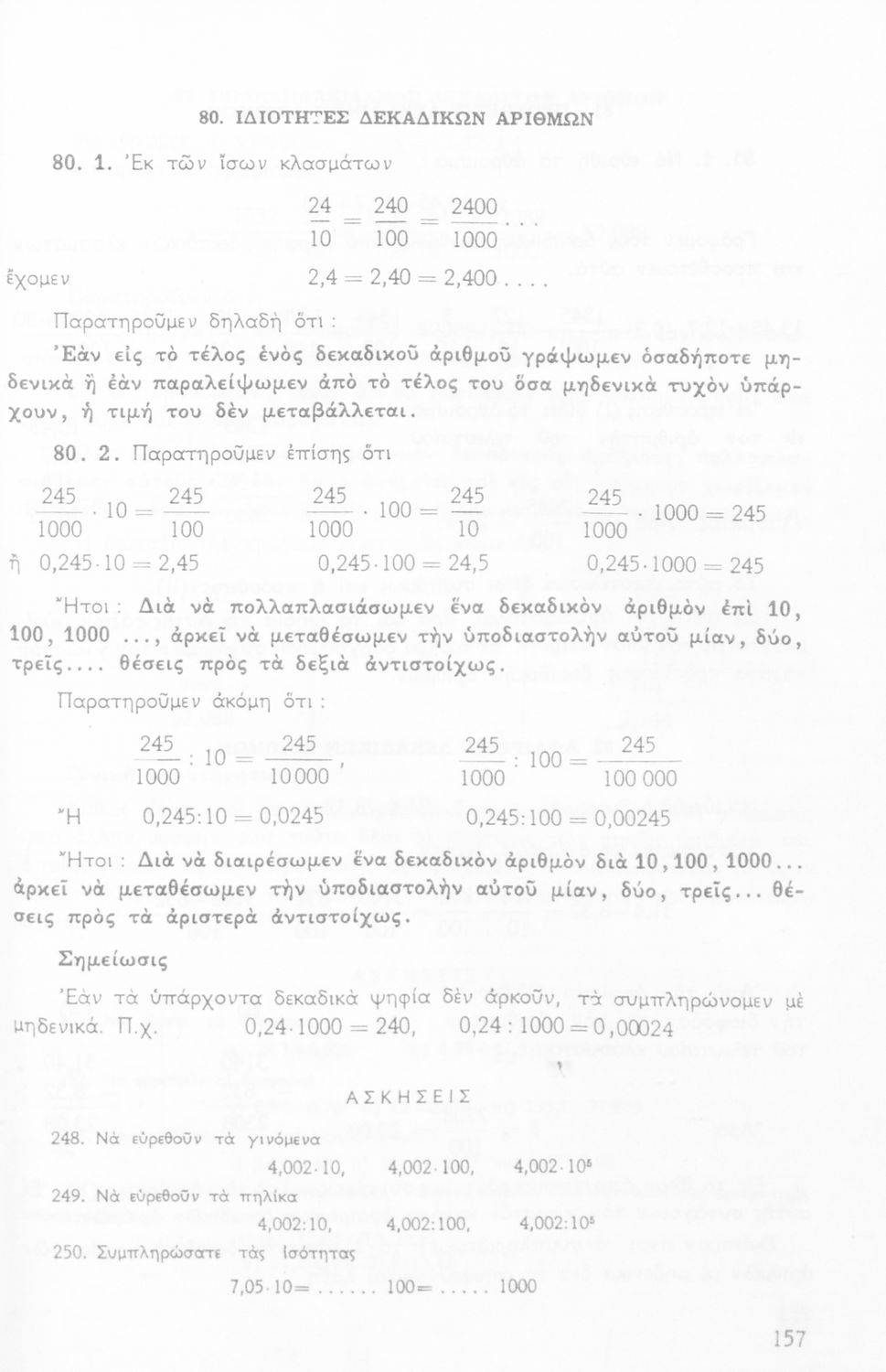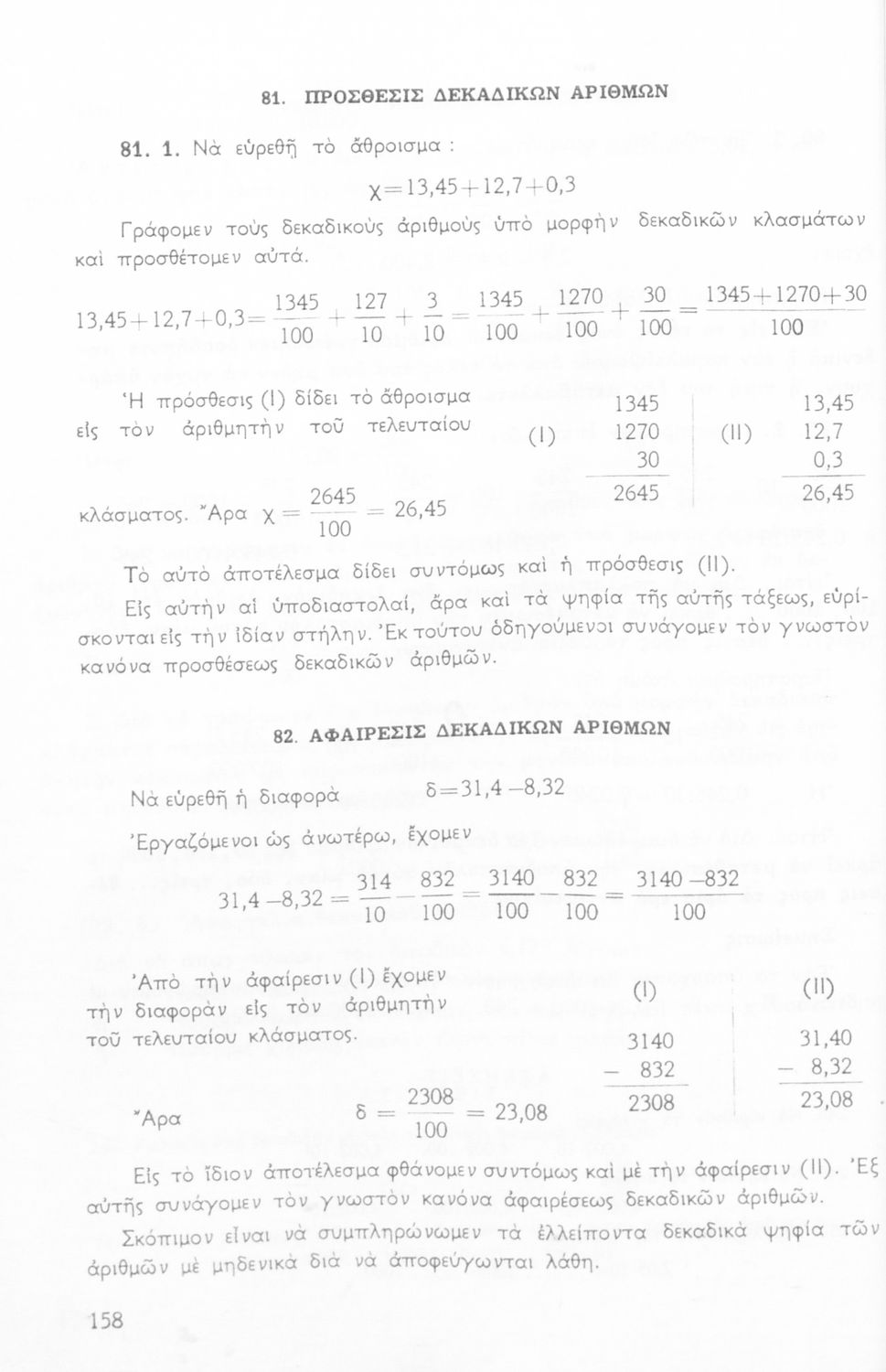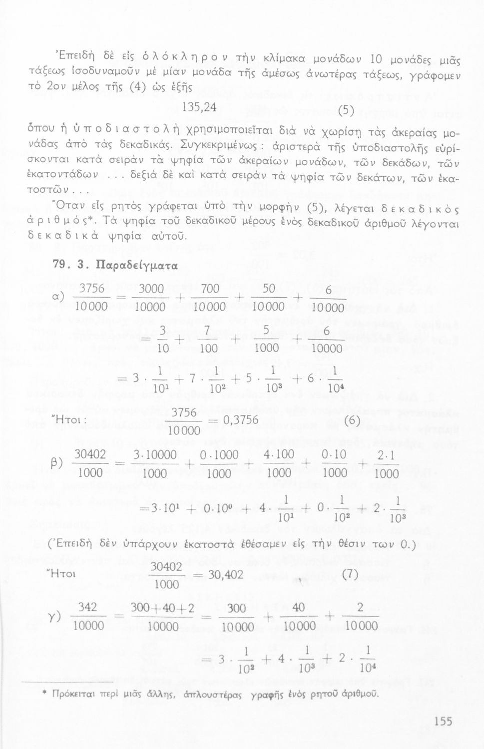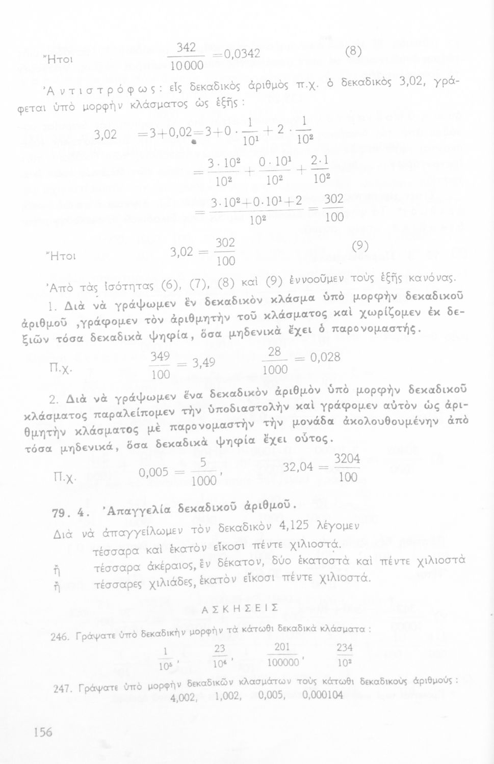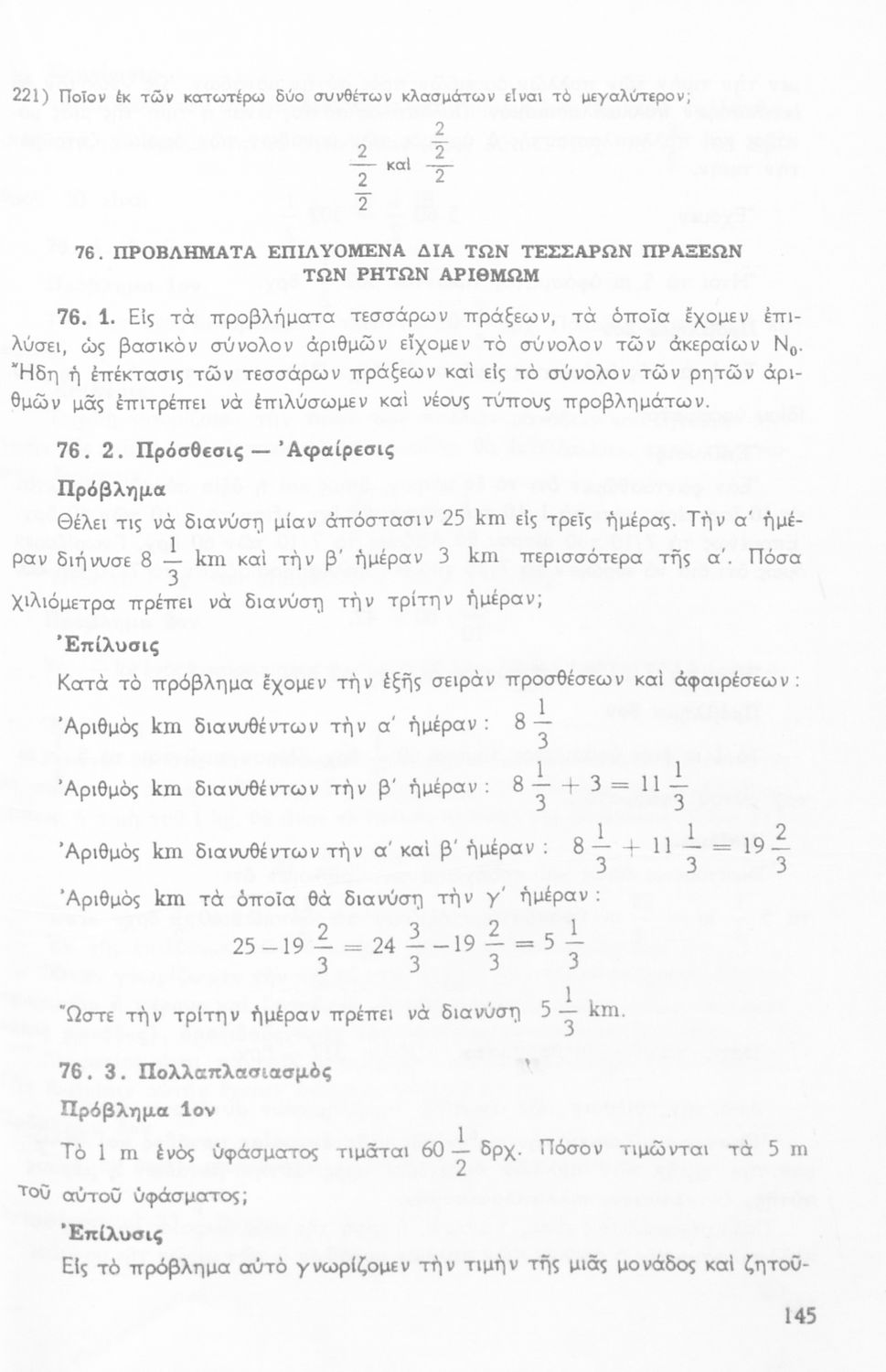 Σχολικό εγχειρίδιο Μαθηματικών Α' Γυμνασίου που περιέχει άλγεβρα με έμφαση στις αριθμητικές πράξεις με ακέραιους, δεκαδικούς και κλάσματα, και γεωμετρία με έμφαση στην επιπεδομετρία. Περιέχει και εισαγωγή στη θεωρία των συνόλων. Φέρει το σύμβολο της δικτατορίας.
