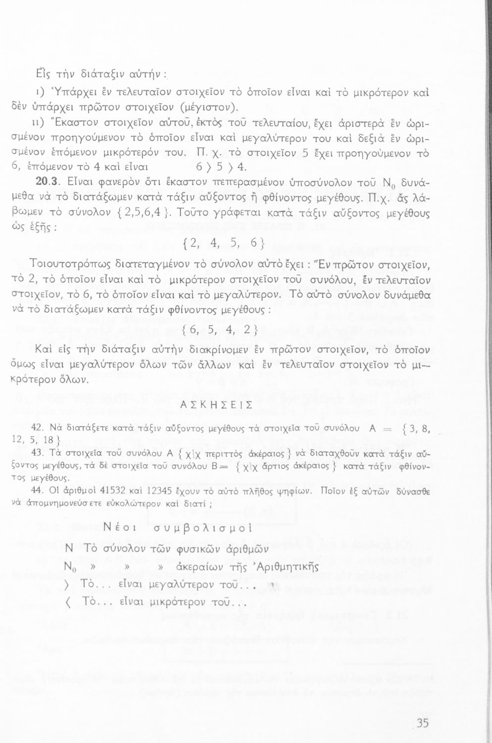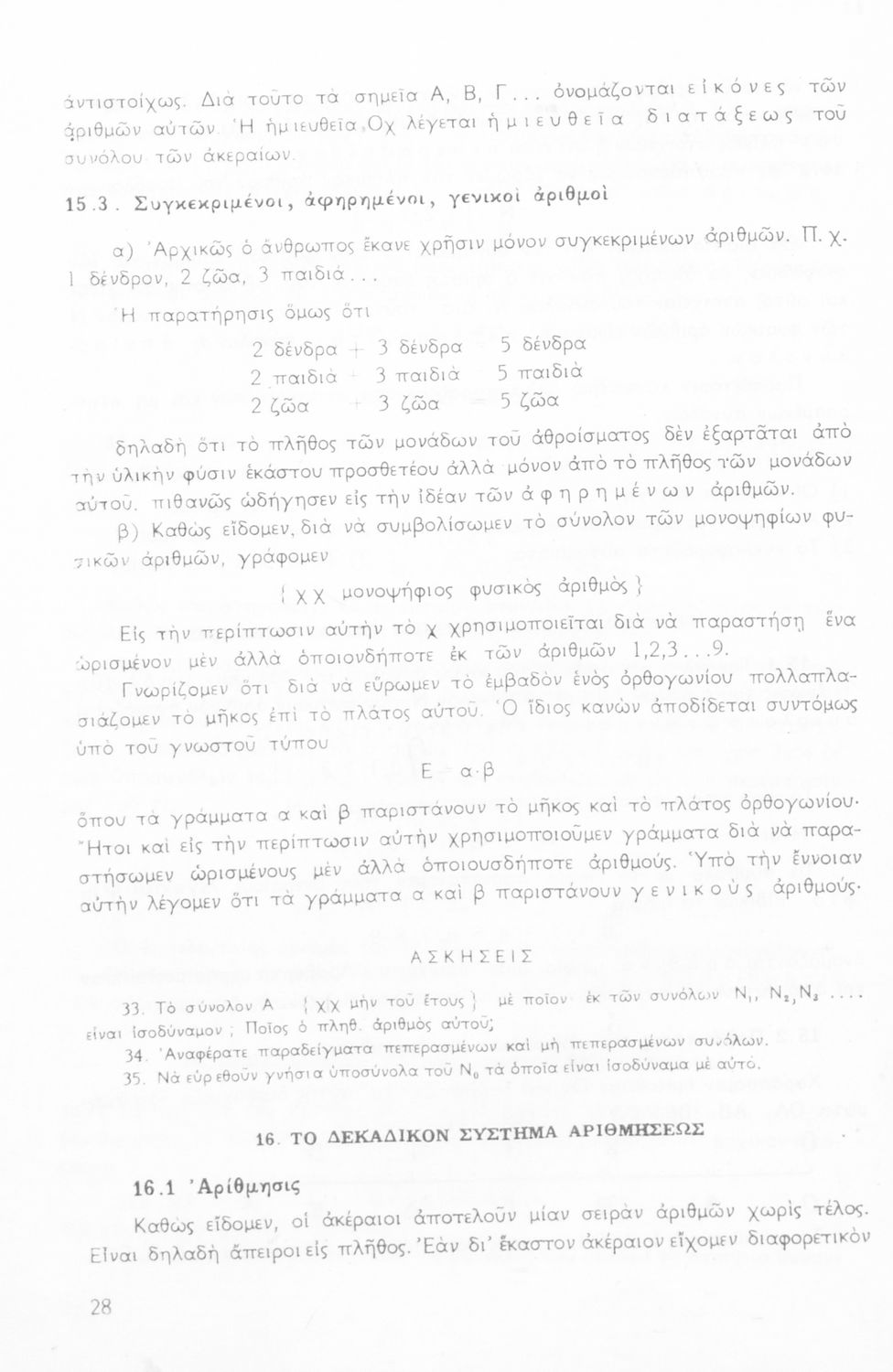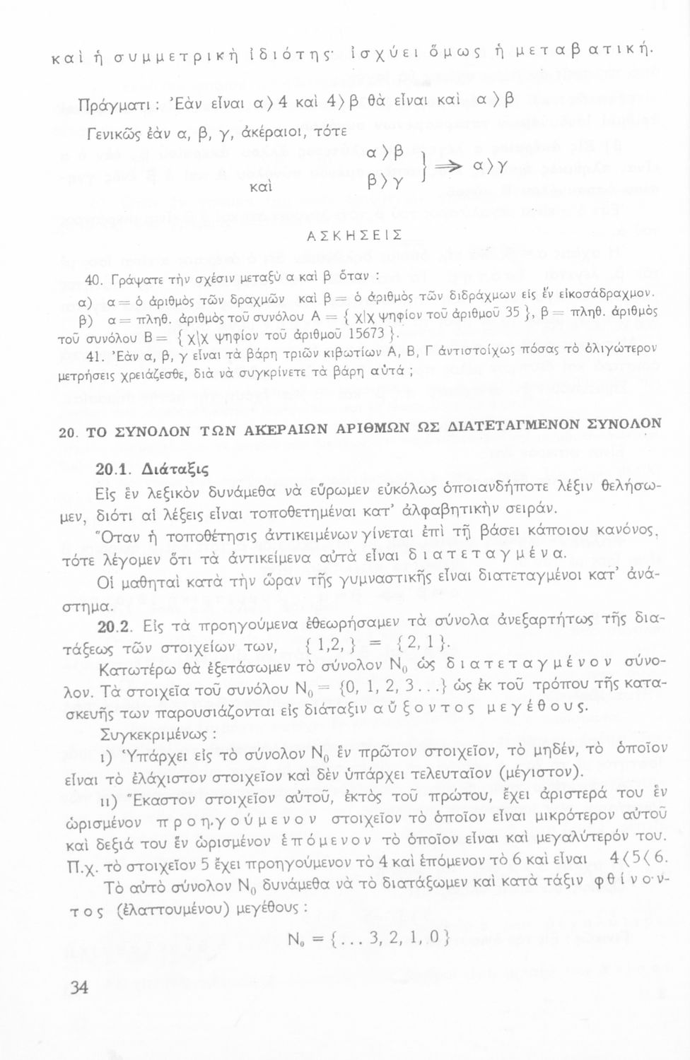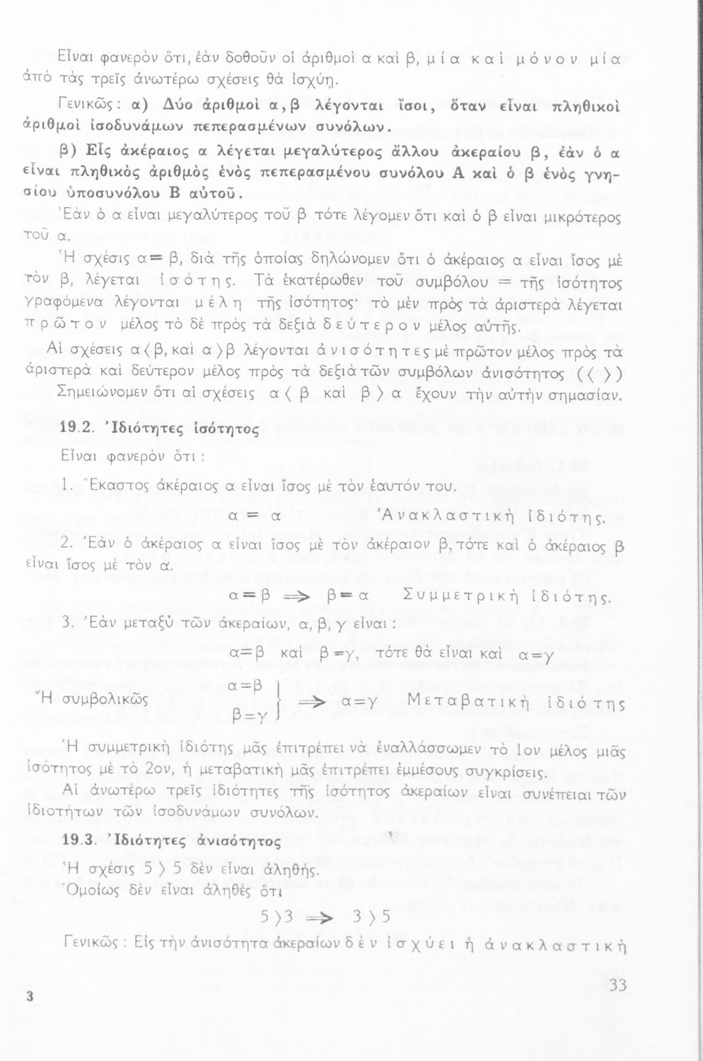 Σχολικό εγχειρίδιο Μαθηματικών Γυμνασίου που είναι χωρισμένο σε θεωρήματα, παραδείγματα και ασκήσεις και περιλαμβάνει στοιχεία Ανώτερης Άλγεβρας και Μαθηματικής Ανάλυσης.