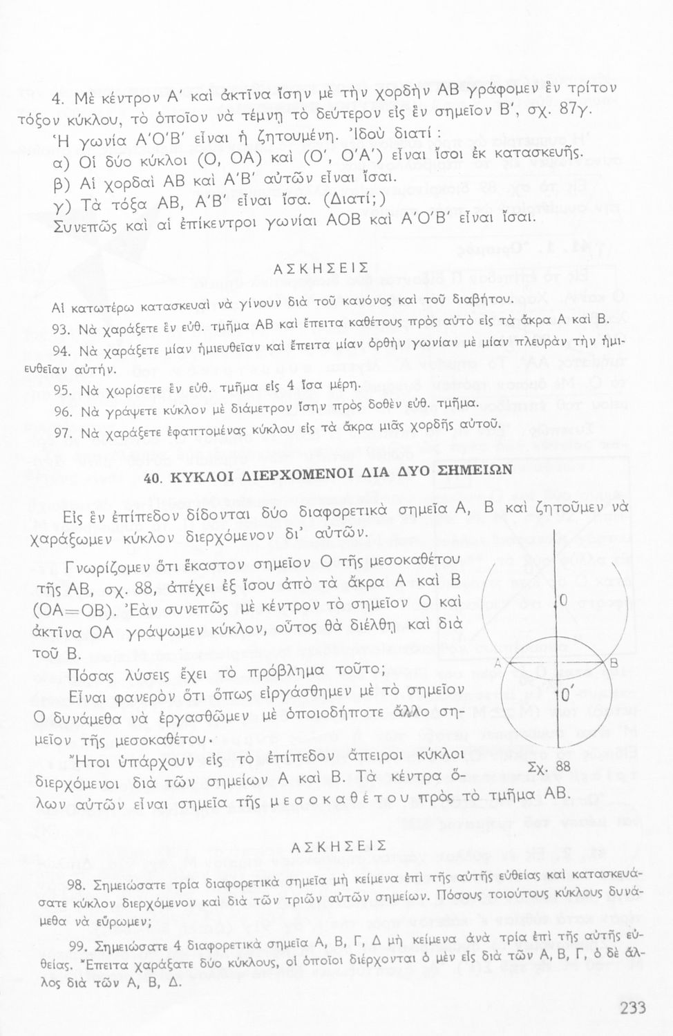 Σχολικό εγχειρίδιο Γεωμετρίας για την Α΄ και Β΄ Γυμνασίου χωρισμένο σε Επιπεδομετρία και Στερεομετρία που περιέχει θεωρία και ασκήσεις.