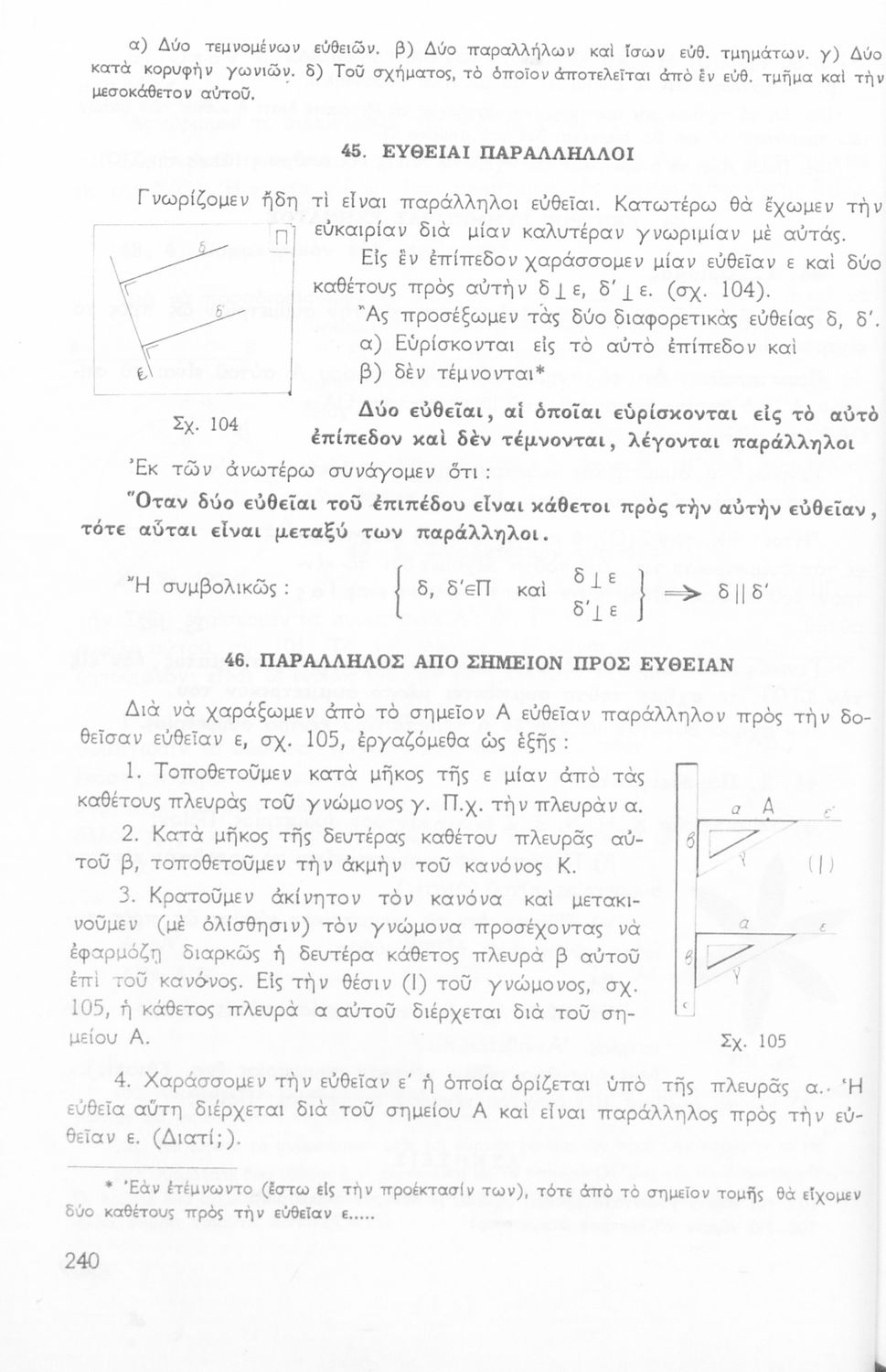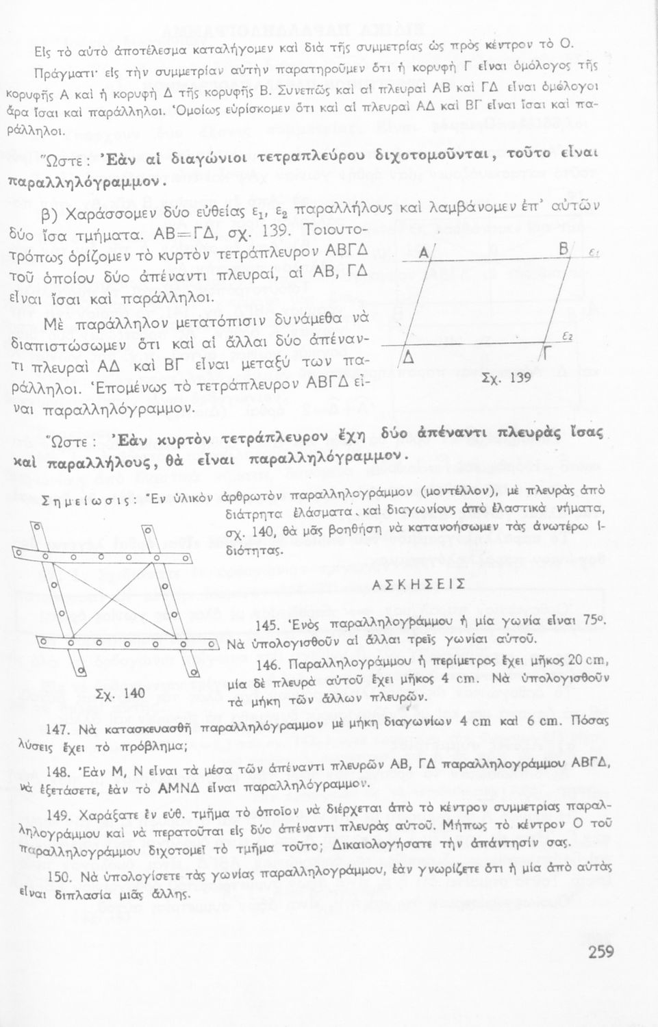 Σχολικό εγχειρίδιο Γεωμετρίας για την Α΄ και Β΄ Γυμνασίου χωρισμένο σε Επιπεδομετρία και Στερεομετρία που περιέχει θεωρία και ασκήσεις.