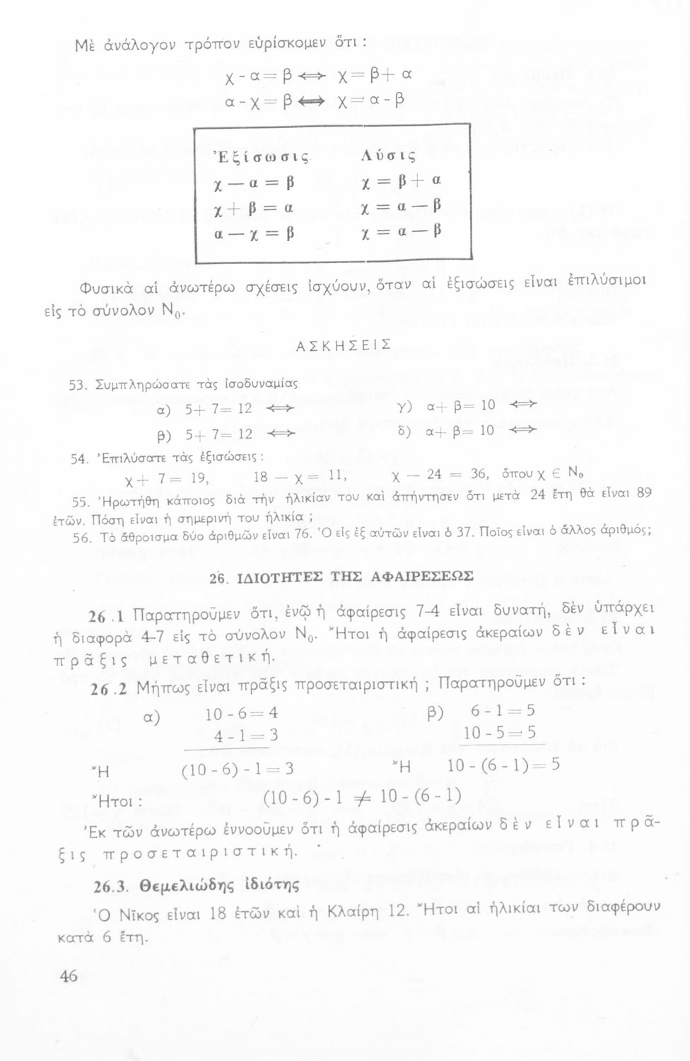 Σχολικό εγχειρίδιο Μαθηματικών Γυμνασίου που είναι χωρισμένο σε θεωρήματα, παραδείγματα και ασκήσεις και περιλαμβάνει στοιχεία Ανώτερης Άλγεβρας και Μαθηματικής Ανάλυσης.