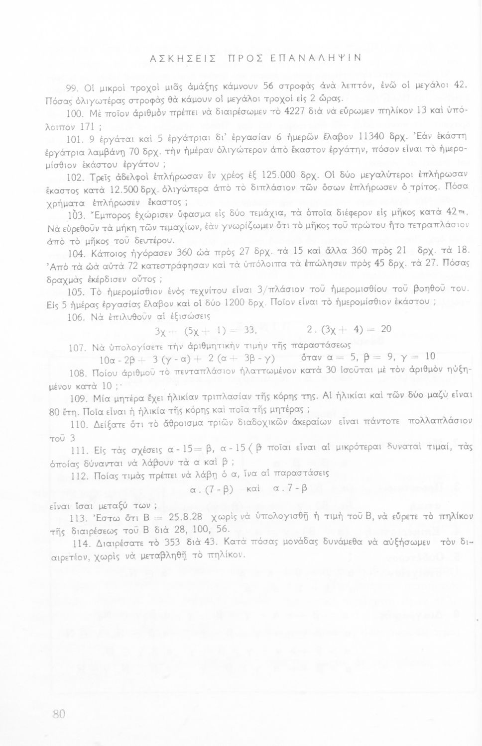 Σχολικό εγχειρίδιο Μαθηματικών Γυμνασίου που είναι χωρισμένο σε θεωρήματα, παραδείγματα και ασκήσεις και περιλαμβάνει στοιχεία Ανώτερης Άλγεβρας και Μαθηματικής Ανάλυσης.