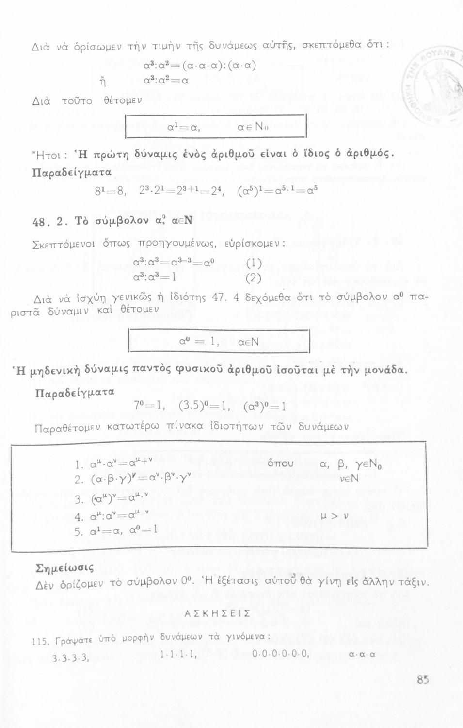 Σχολικό εγχειρίδιο Μαθηματικών Γ΄ Γυμνασίου που περιλαμβάνει θεωρία, παραδείγματα και ασκήσεις. Φέρει το σύμβολο της δικτατορίας.