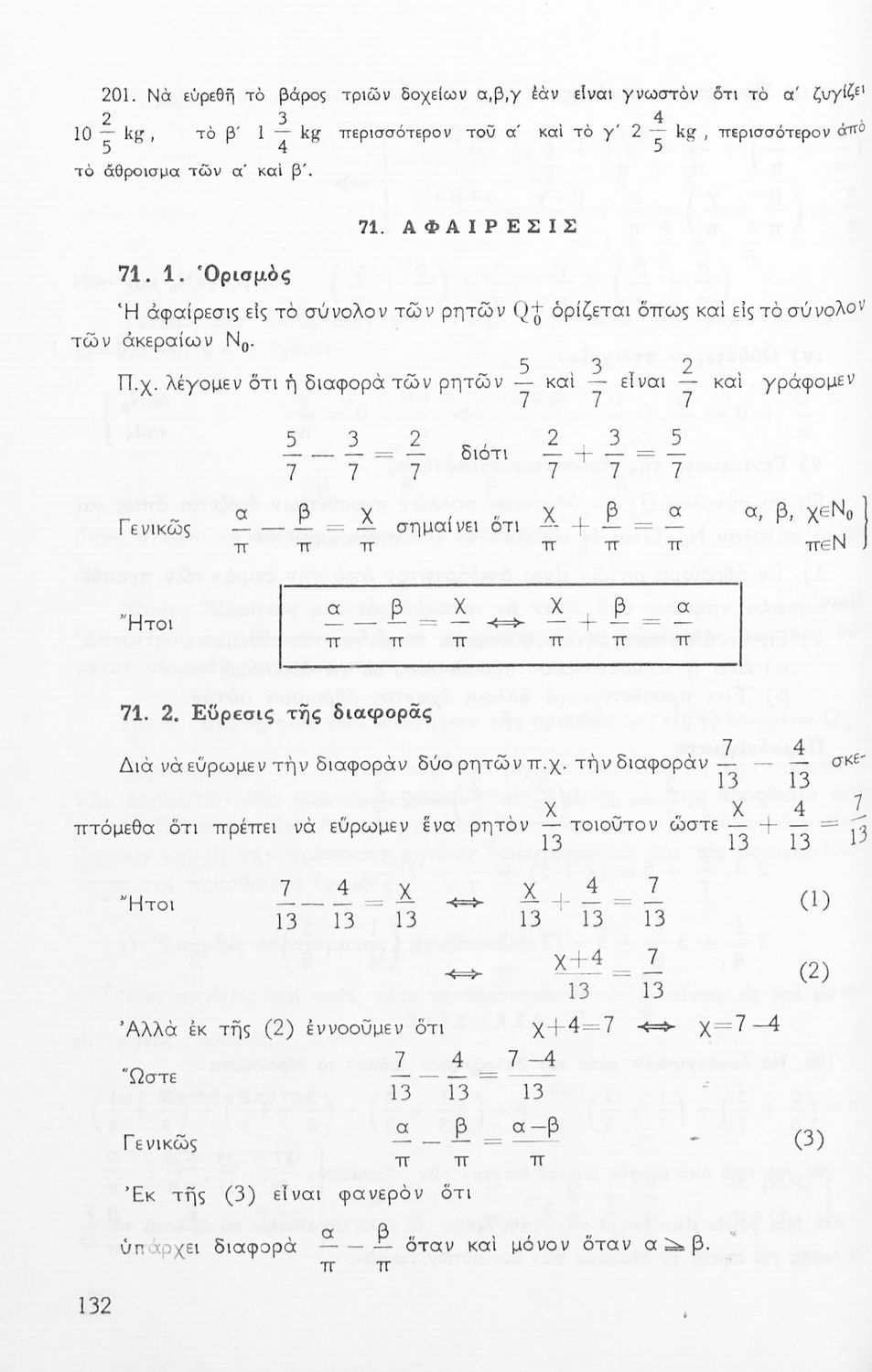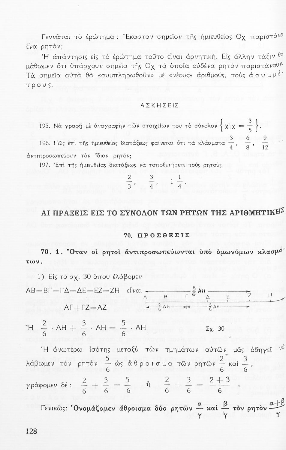 Σχολικό εγχειρίδιο Μαθηματικών Α' Γυμνασίου που περιέχει άλγεβρα με έμφαση στις αριθμητικές πράξεις με ακέραιους, δεκαδικούς και κλάσματα, και γεωμετρία με έμφαση στην επιπεδομετρία. Περιέχει και εισαγωγή στη θεωρία των συνόλων.
