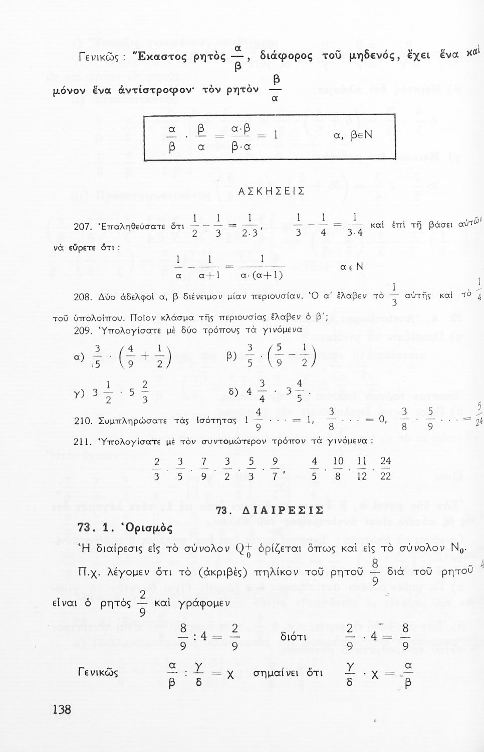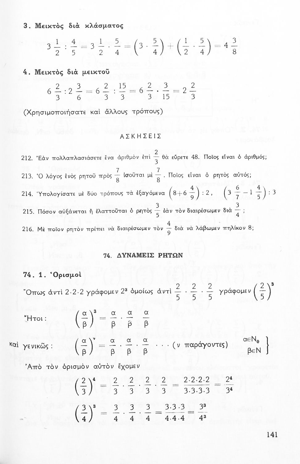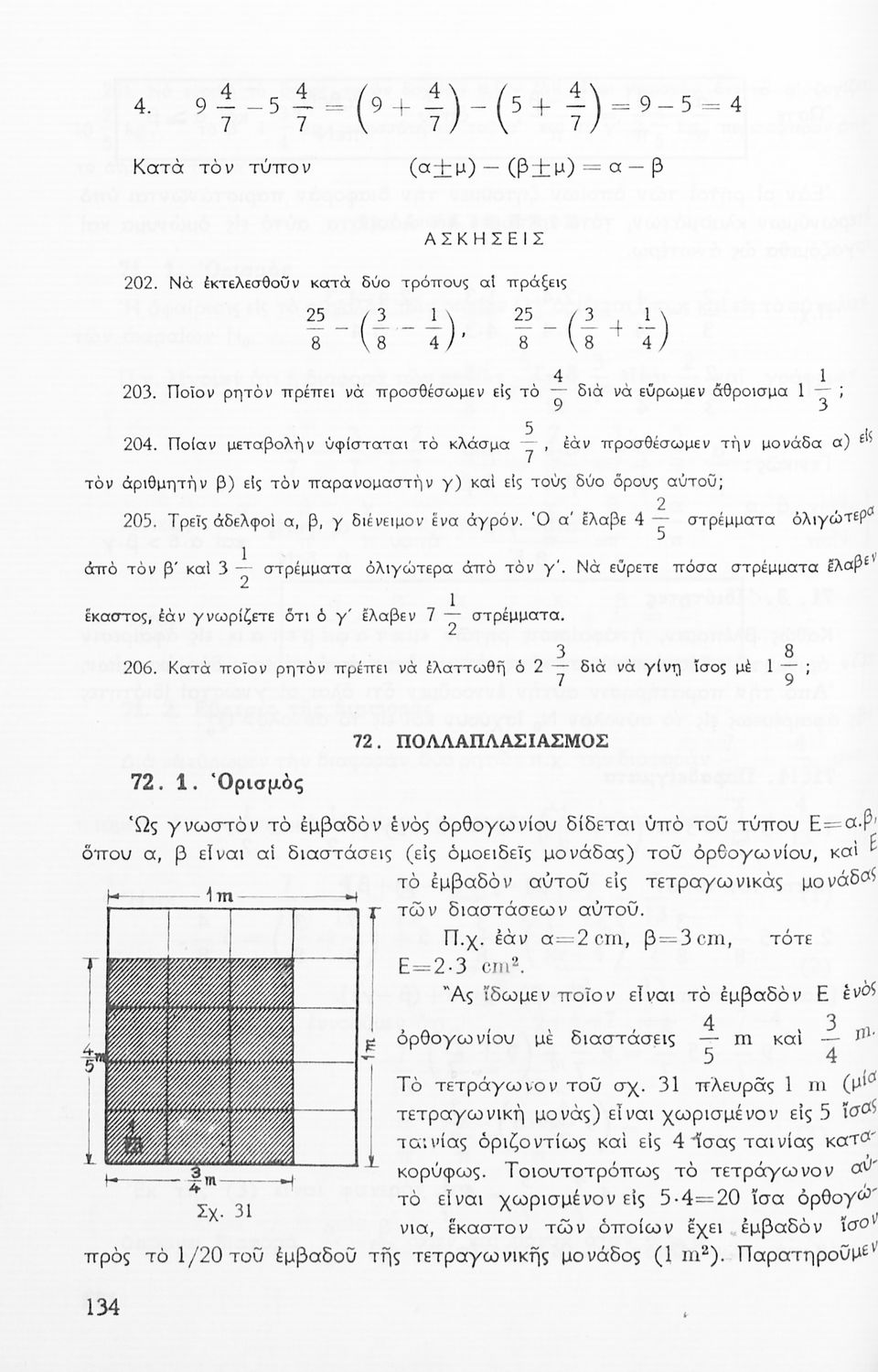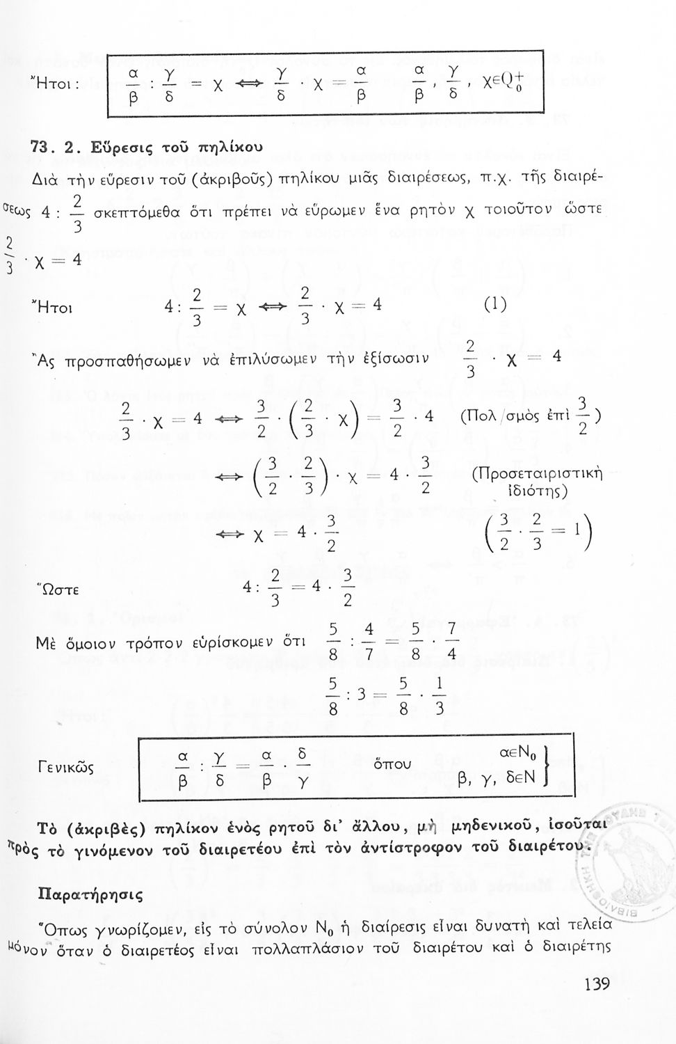 Σχολικό εγχειρίδιο Αριθμητικής για τις Α΄, Β΄, Γ΄ Γυμνασίου που είναι χωρισμένο σε ορισμούς και ασκήσεις και εστιάζει στις ιδιότητες των αριθμητικών πράξεων, τα κλάσματα και την τετραγωνική ρίζα.