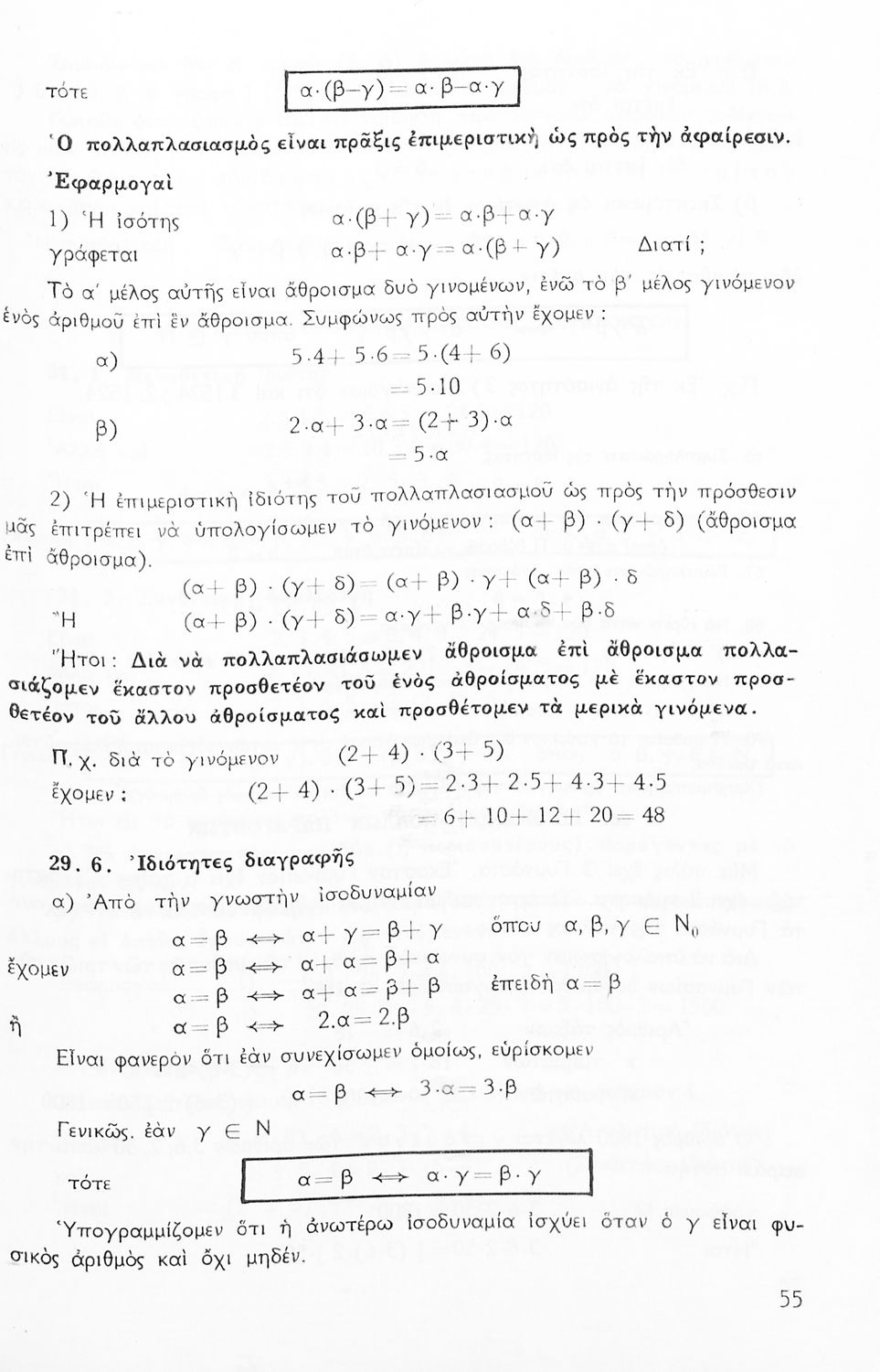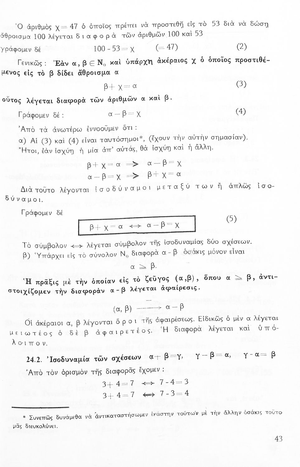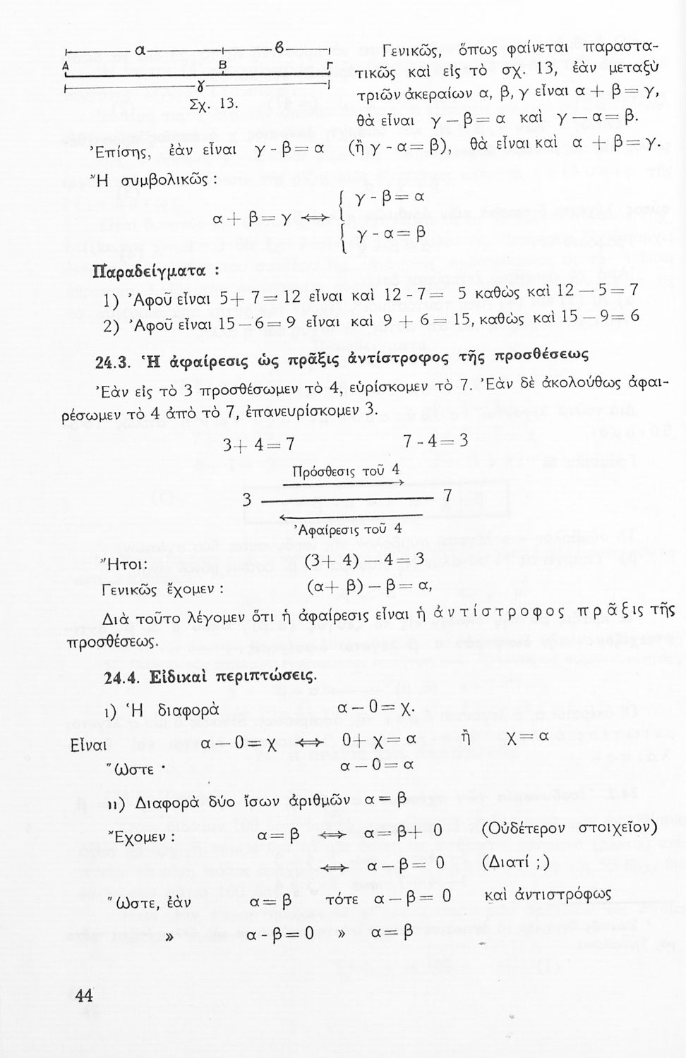 Σχολικό εγχειρίδιο Μαθηματικών Α' Γυμνασίου που περιέχει άλγεβρα με έμφαση στις αριθμητικές πράξεις με ακέραιους, δεκαδικούς και κλάσματα, και γεωμετρία με έμφαση στην επιπεδομετρία. Περιέχει και εισαγωγή στη θεωρία των συνόλων.