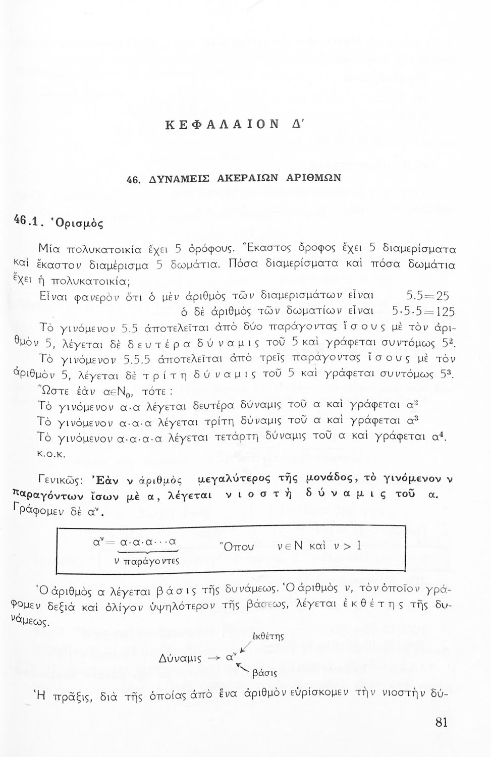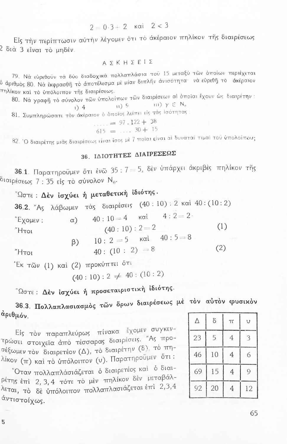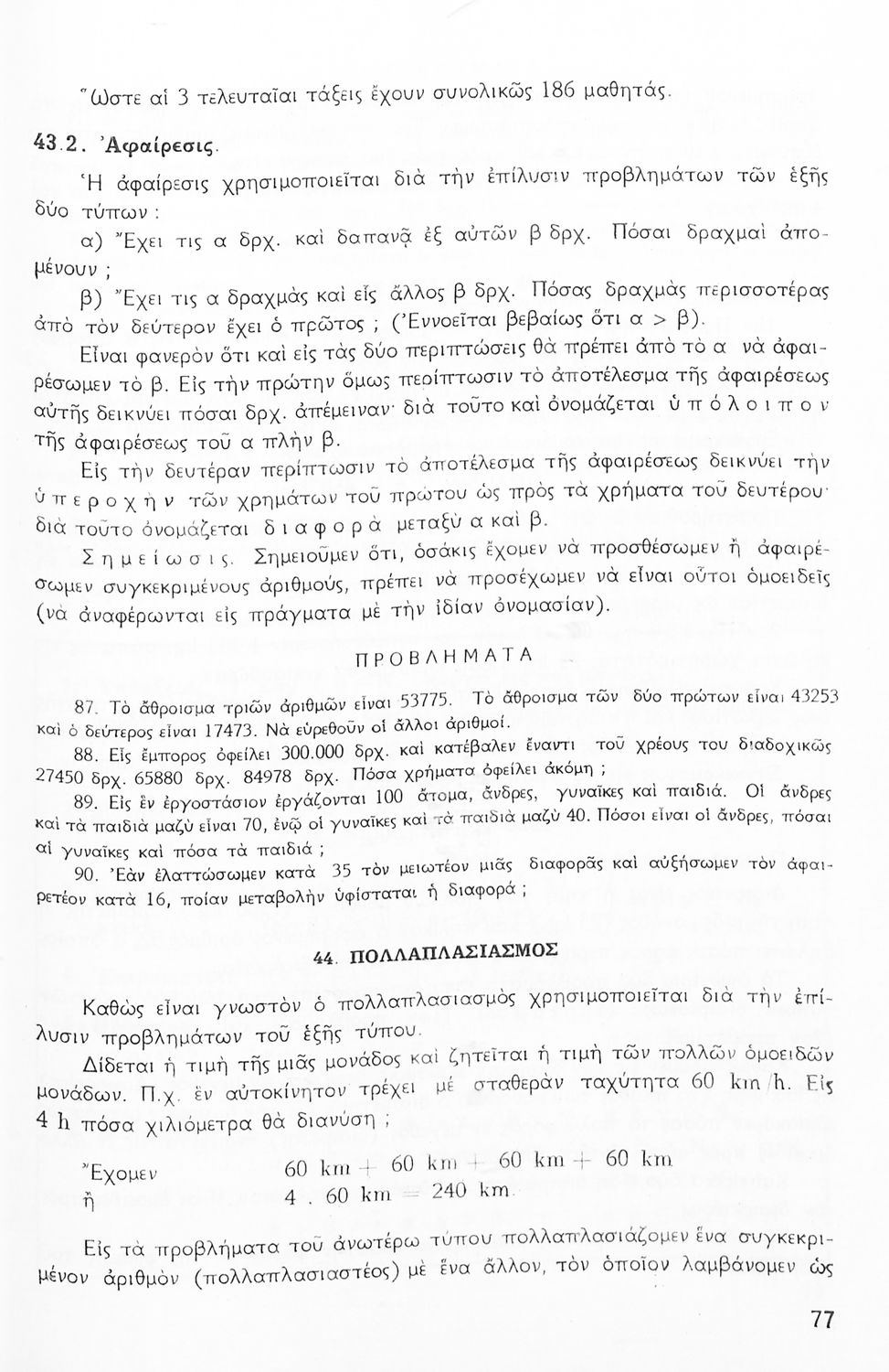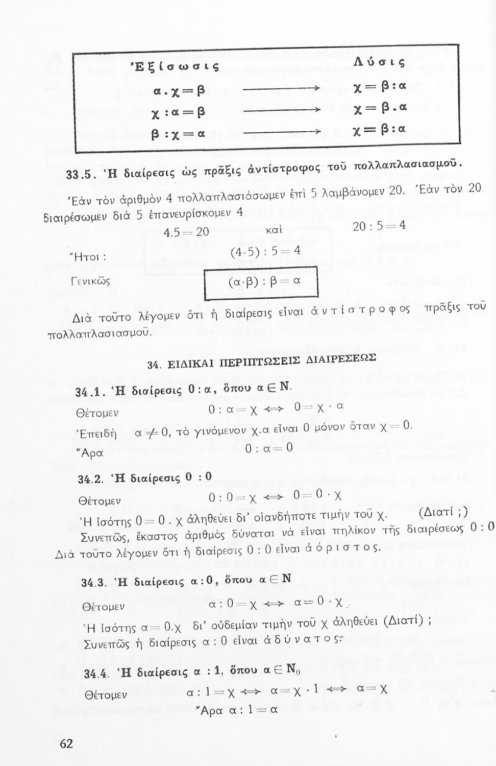 Σχολικό εγχειρίδιο Μαθηματικών Α' Γυμνασίου που περιέχει άλγεβρα με έμφαση στις αριθμητικές πράξεις με ακέραιους, δεκαδικούς και κλάσματα, και γεωμετρία με έμφαση στην επιπεδομετρία. Περιέχει και εισαγωγή στη θεωρία των συνόλων.
