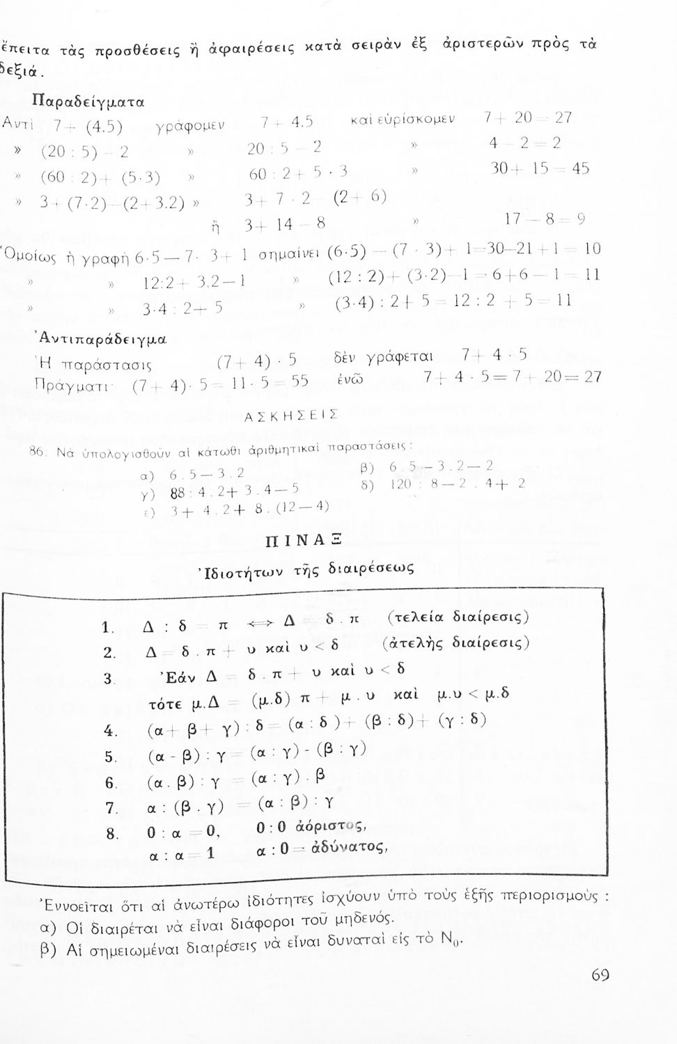 Βαθμίδα εκπαίδευσης: Δευτεροβάθμια Τάξη: Α' Γυμνασίου Μάθημα: Μαθηματικά Γλώσσα: Απλή καθαρεύουσα Παρουσίαση περιεχομένου: Σχολικό εγχειρίδιο Μαθηματικών Α' Γυμνασίου που περιέχει άλγεβρα με έμφαση στις αριθμητικές πράξεις με ακέραιους, δεκαδικούς και κλάσματα, και γεωμετρία με έμφαση στην επιπεδομετρία. Περιέχει και εισαγωγή στη θεωρία των συνόλων. |