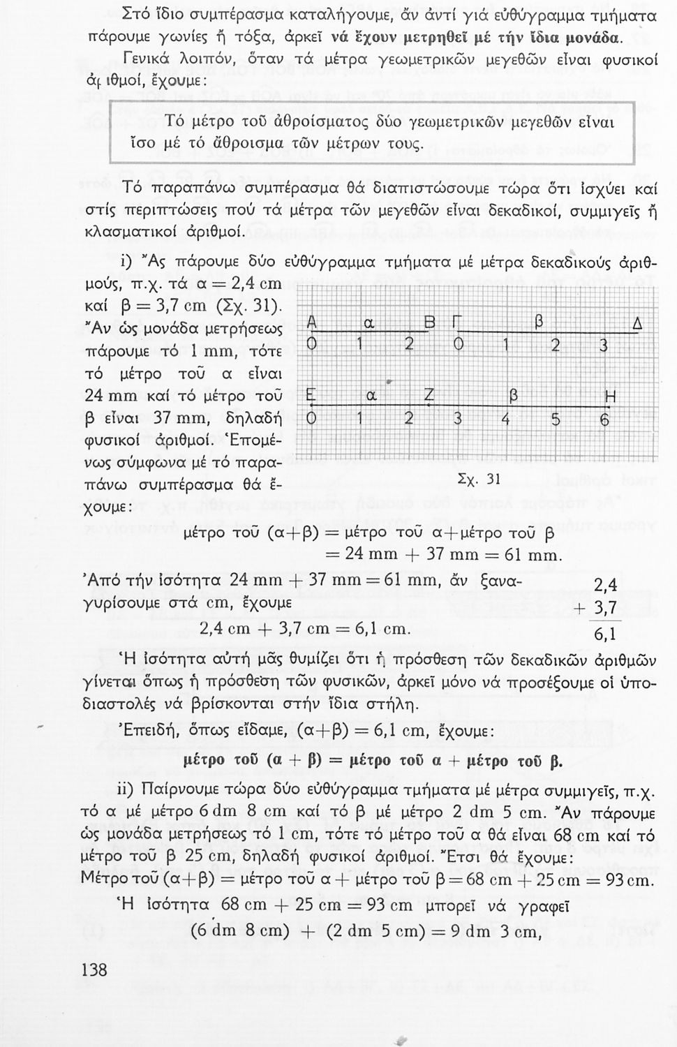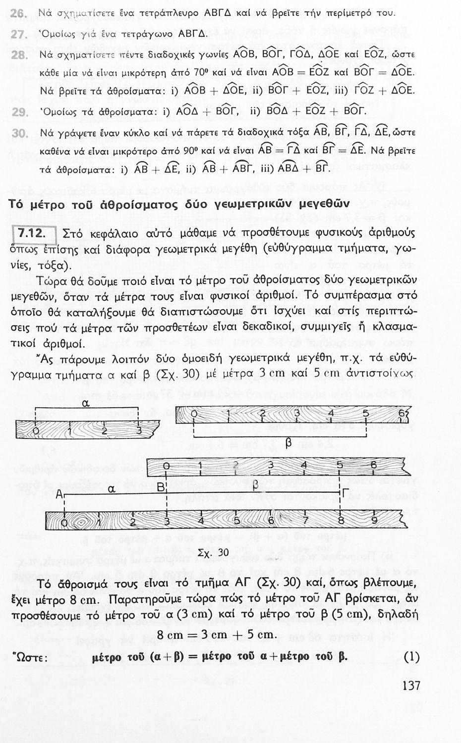 Παρουσίαση περιεχομένου: Σχολικό εγχειρίδιο Μαθηματικών Α΄ Γυμνασίου που συνδυάζει Γεωμετρία και Άλγεβρα.