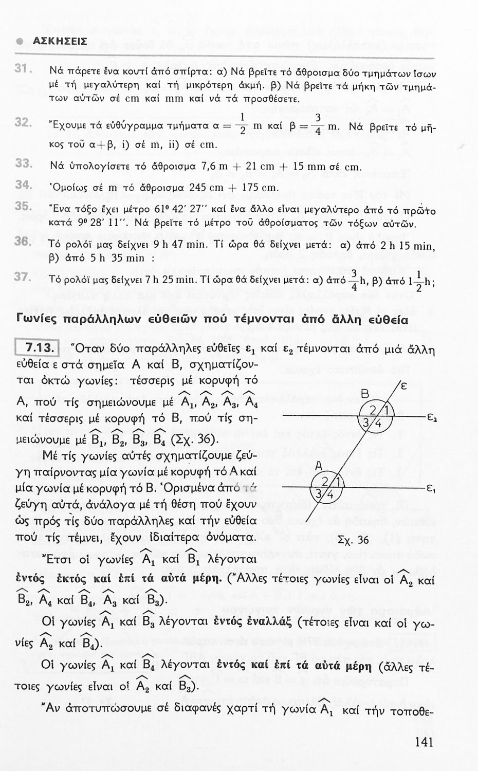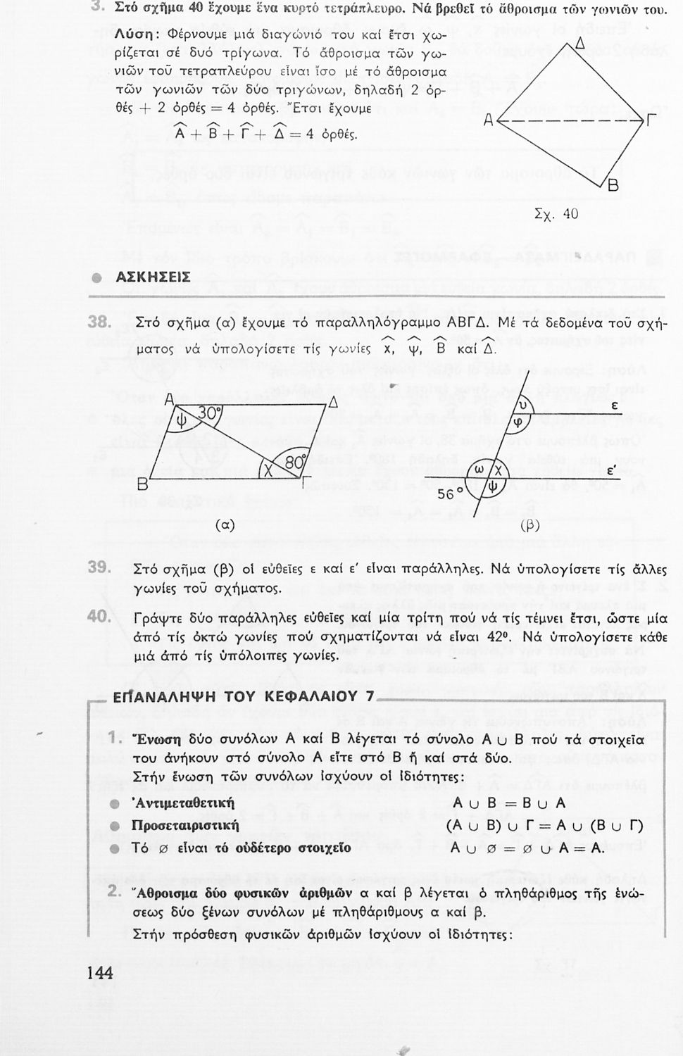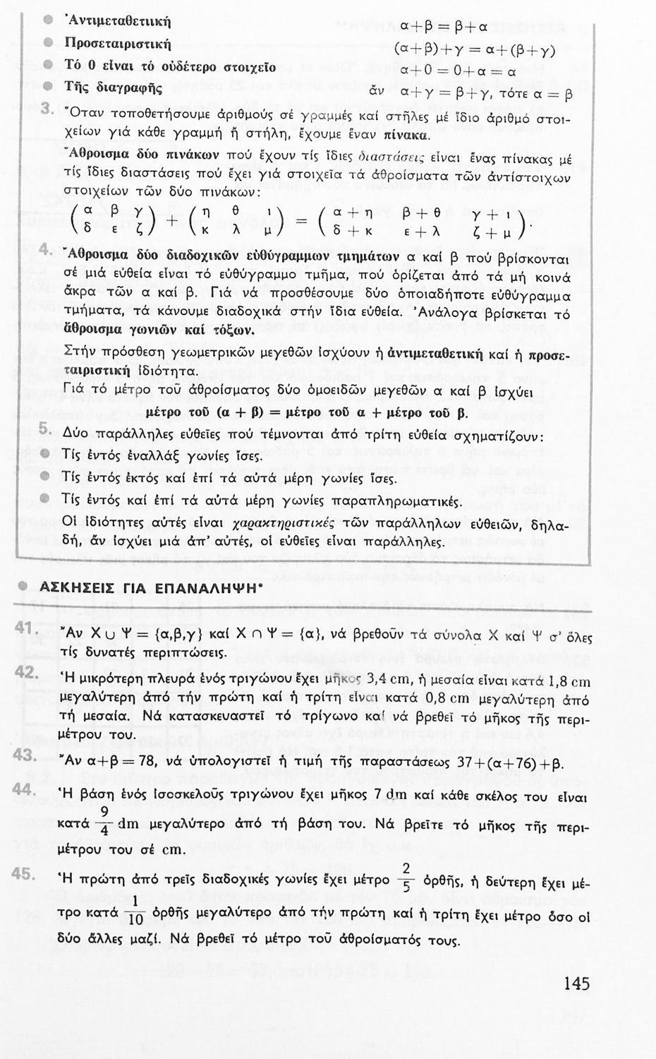 Παρουσίαση περιεχομένου: Σχολικό εγχειρίδιο Μαθηματικών Α΄ Γυμνασίου που συνδυάζει Γεωμετρία και Άλγεβρα.