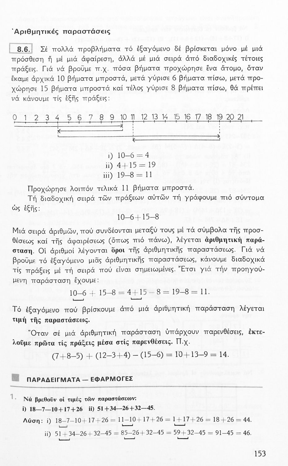 Σχολικό εγχειρίδιο Αριθμητικής για τις Α΄, Β΄, Γ΄ Γυμνασίου που είναι χωρισμένο σε ορισμούς και ασκήσεις και εστιάζει στις ιδιότητες των αριθμητικών πράξεων, τα κλάσματα και την τετραγωνική ρίζα.