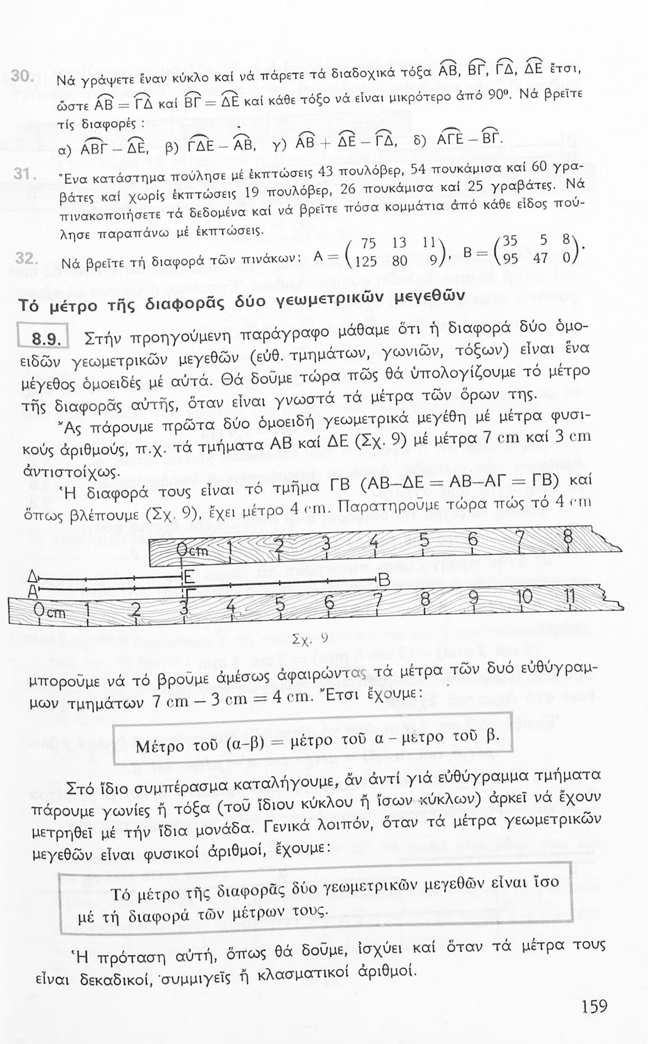 Σχολικό εγχειρίδιο Γεωμετρίας για την Α΄ και Β΄ Γυμνασίου που περιλαμβάνει θεωρία και ασκήσεις και είναι χωρισμένο σε Επιπεδομετρία και Στερεομετρία.
