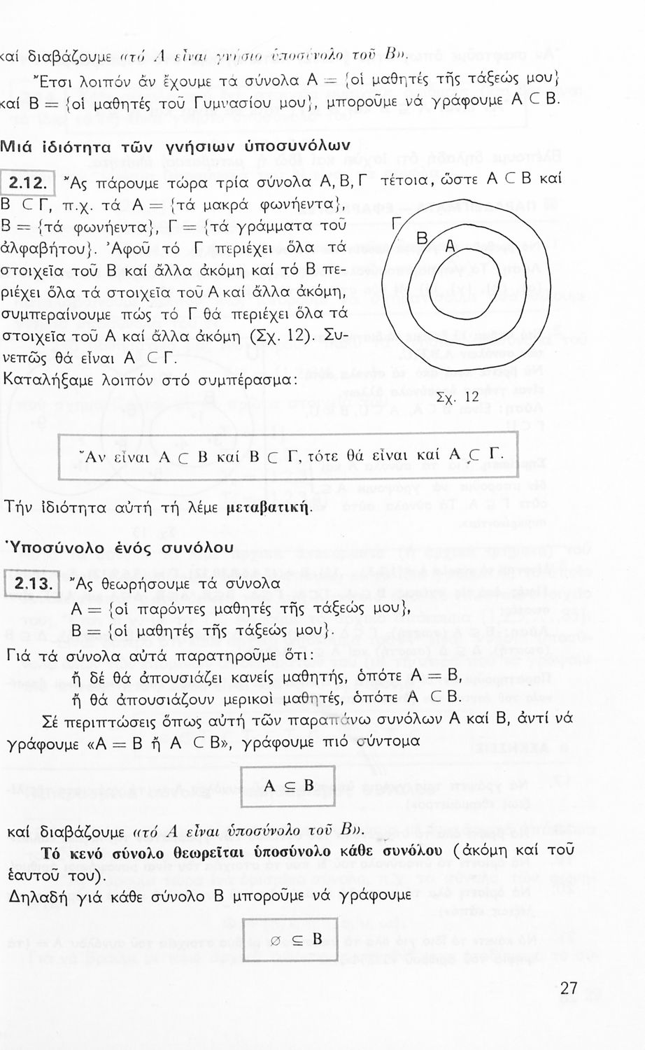 Βαθμίδα εκπαίδευσης: Δευτεροβάθμια Τάξη: Α' Γυμνασίου Μάθημα: Μαθηματικά Γλώσσα: Δημοτική Παρουσίαση περιεχομένου: Σχολικό εγχειρίδιο Μαθηματικών Α΄ Γυμνασίου που συνδυάζει Γεωμετρία και Άλγεβρα. |