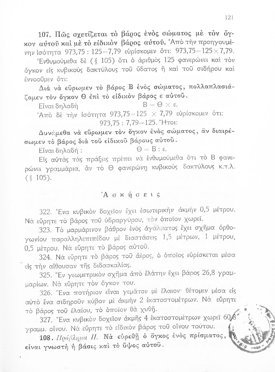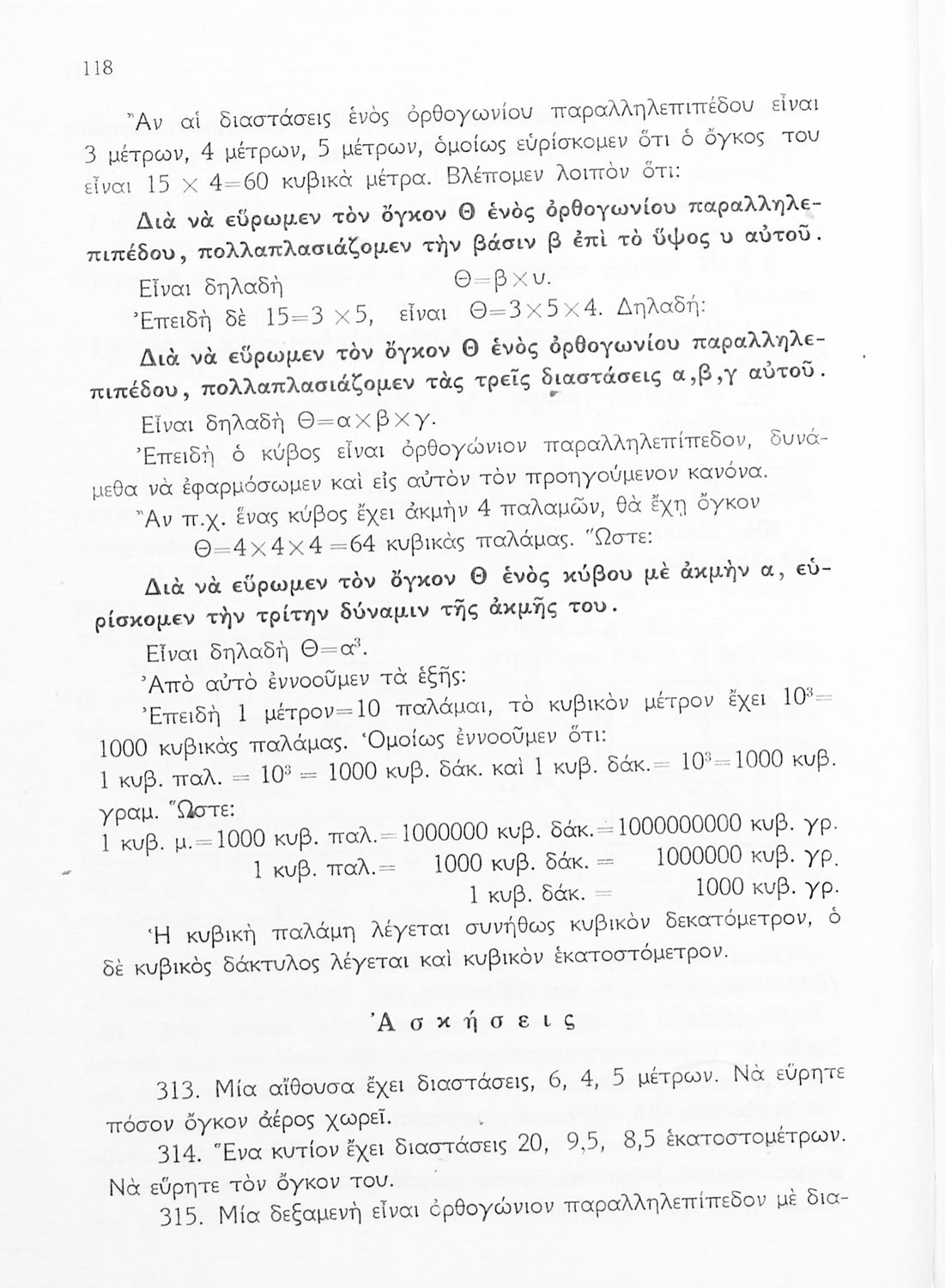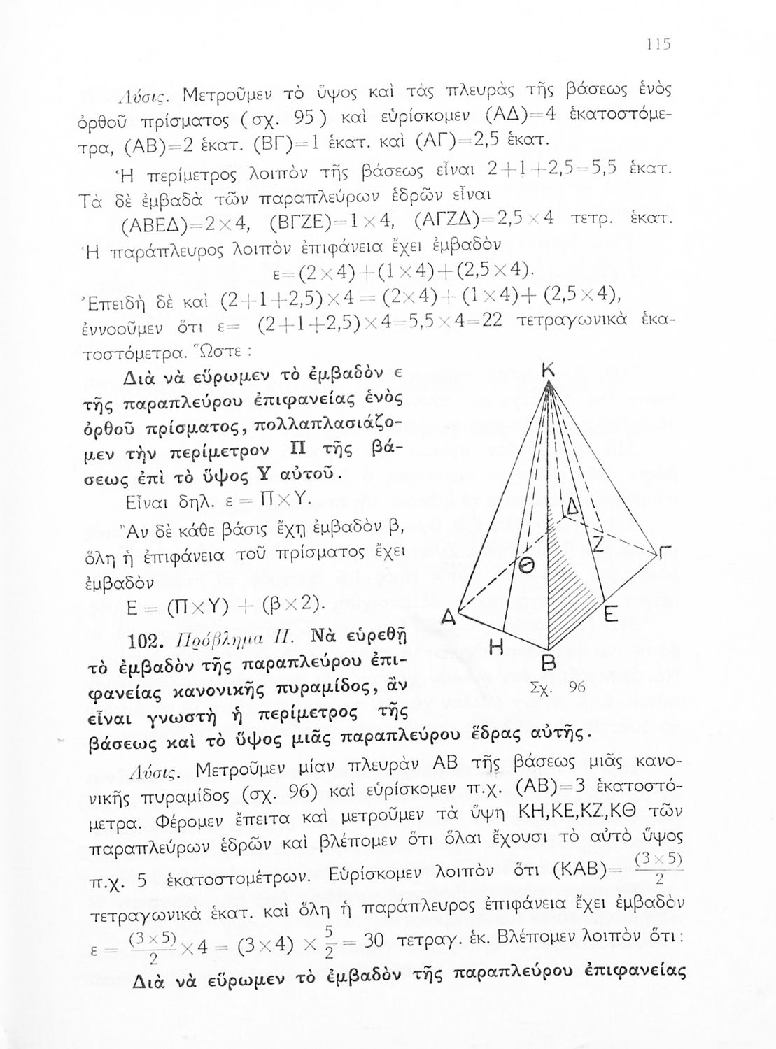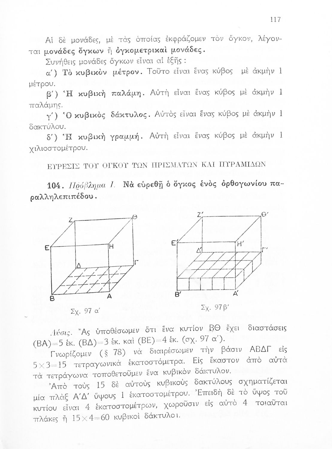 Σχολικό εγχειρίδιο των κατωτέρων τάξεων του Γυμνασίου για το μάθημα της Γεωμετρίας. Το εγχειρίδιο αποτελείται από την εισαγωγή, όπου αναλύονται οι βασικές έννοιες των ιδιοτήτων και γνωρισμάτων των γεωμετρικών σχημάτων, της επιπεδομετρίας δηλαδή των ευθειών, των γωνιών, των παραλλήλων, των κύκλων, των ευθύγραμμων σχημάτων και της στερεομετρίας, της θεματικής εκείνης που αναλύει τις θέσεις της ευθείας, του κυλίνδρου, του κώνου, των πολυέδρων κ.α.