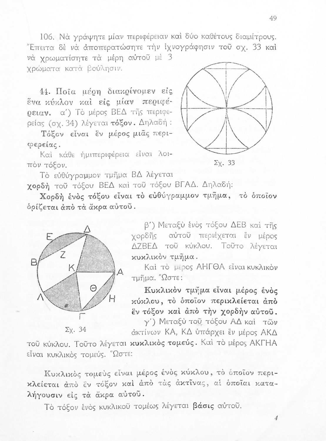 Σχολικό εγχειρίδιο Γεωμετρίας Γυμνασίων και Αστικών Σχολείων χωρισμένο σε Επιπεδομετρία και Στερεομετρία. Περιλαμβάνει και στοιχεία Χωρομετρίας.