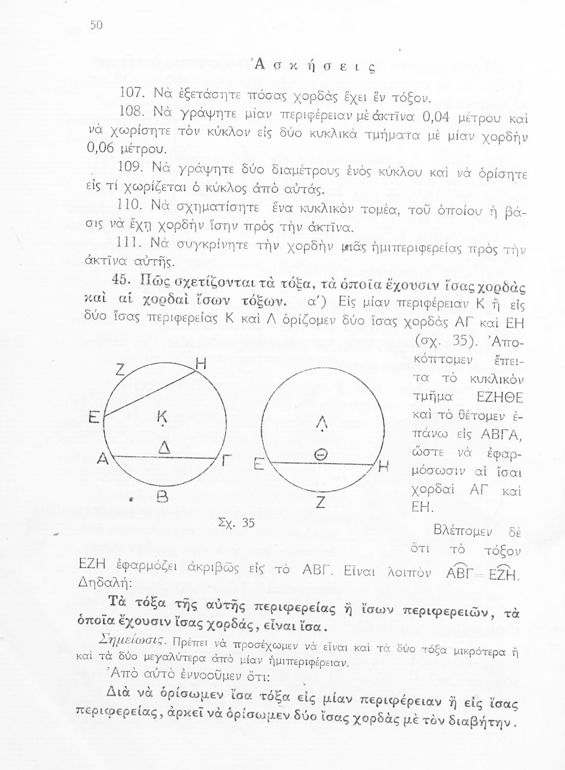 Σχολικό εγχειρίδιο Γεωμετρίας για τα Γυμνάσια και τα Αστικά Σχολεία που είναι χωρισμένο σε Επιπεδομετρία και Στερεομετρία και περιλαμβάνει θεωρία και ασκήσεις.
