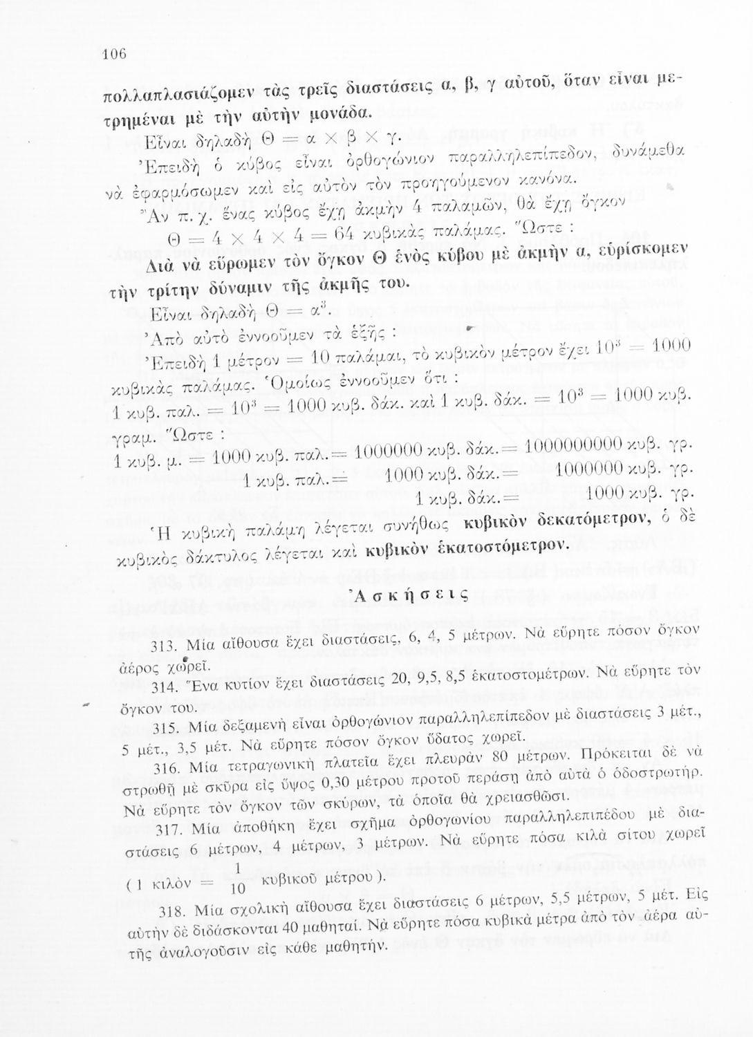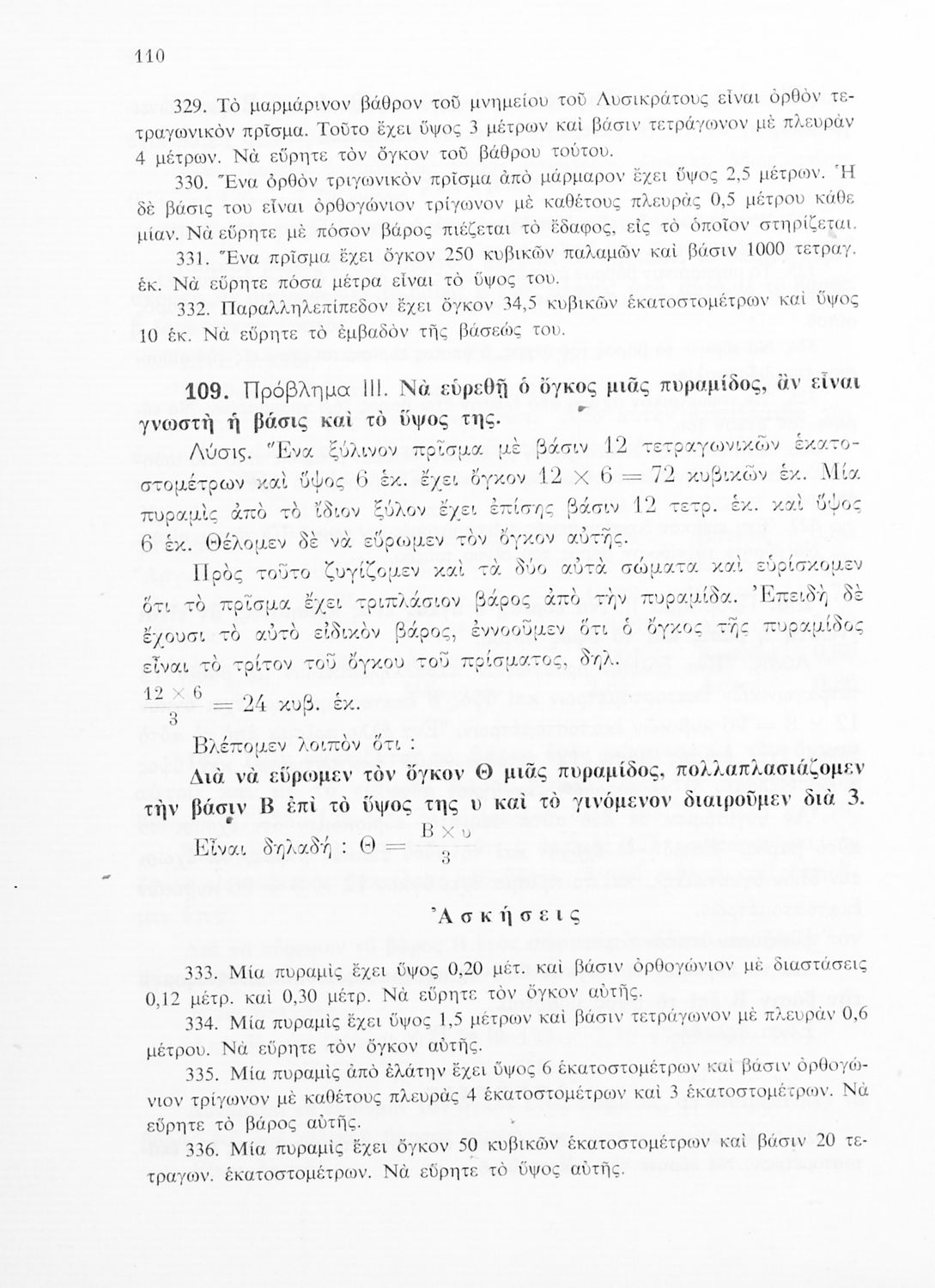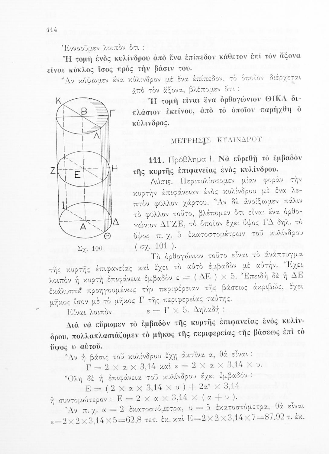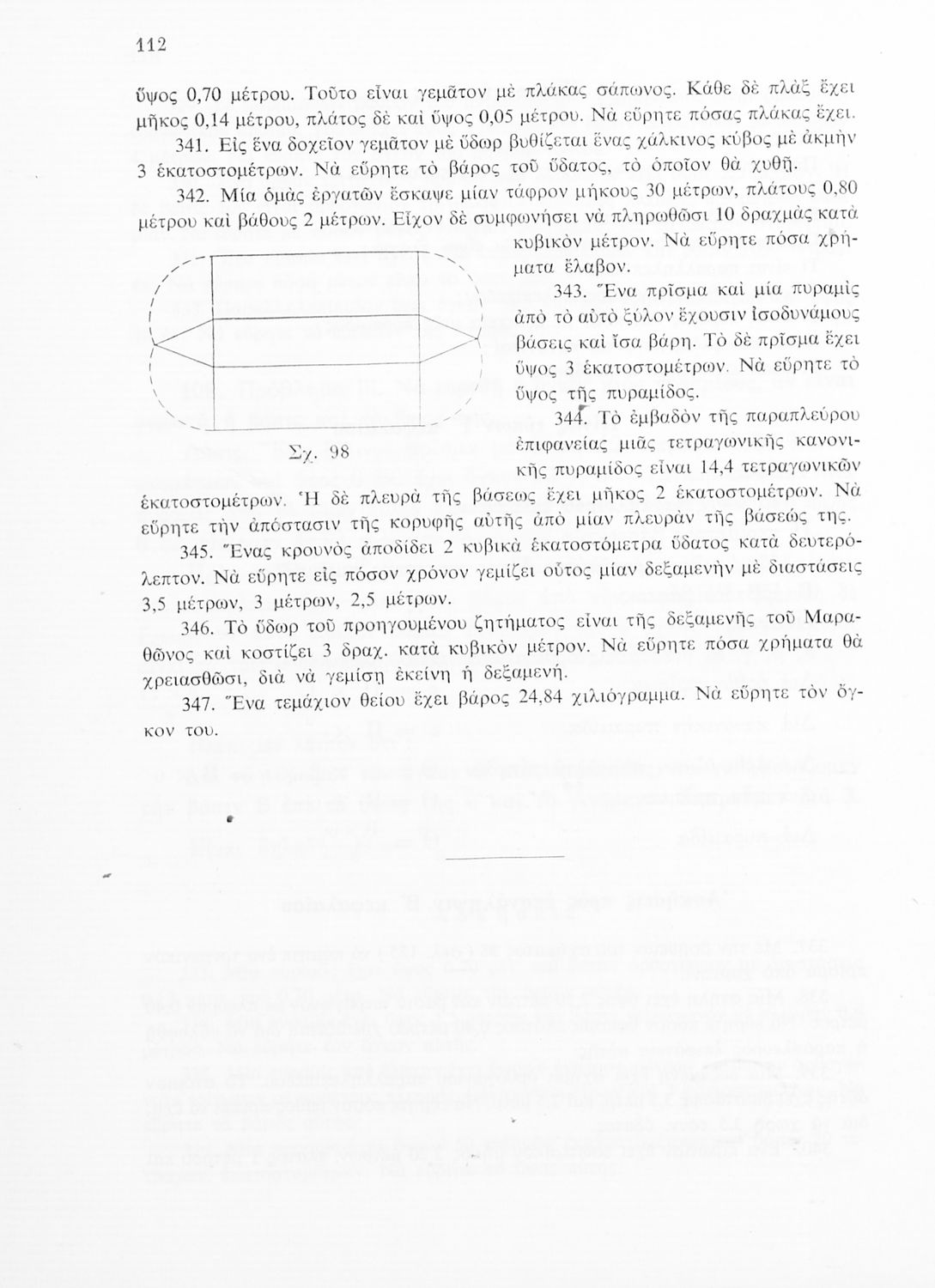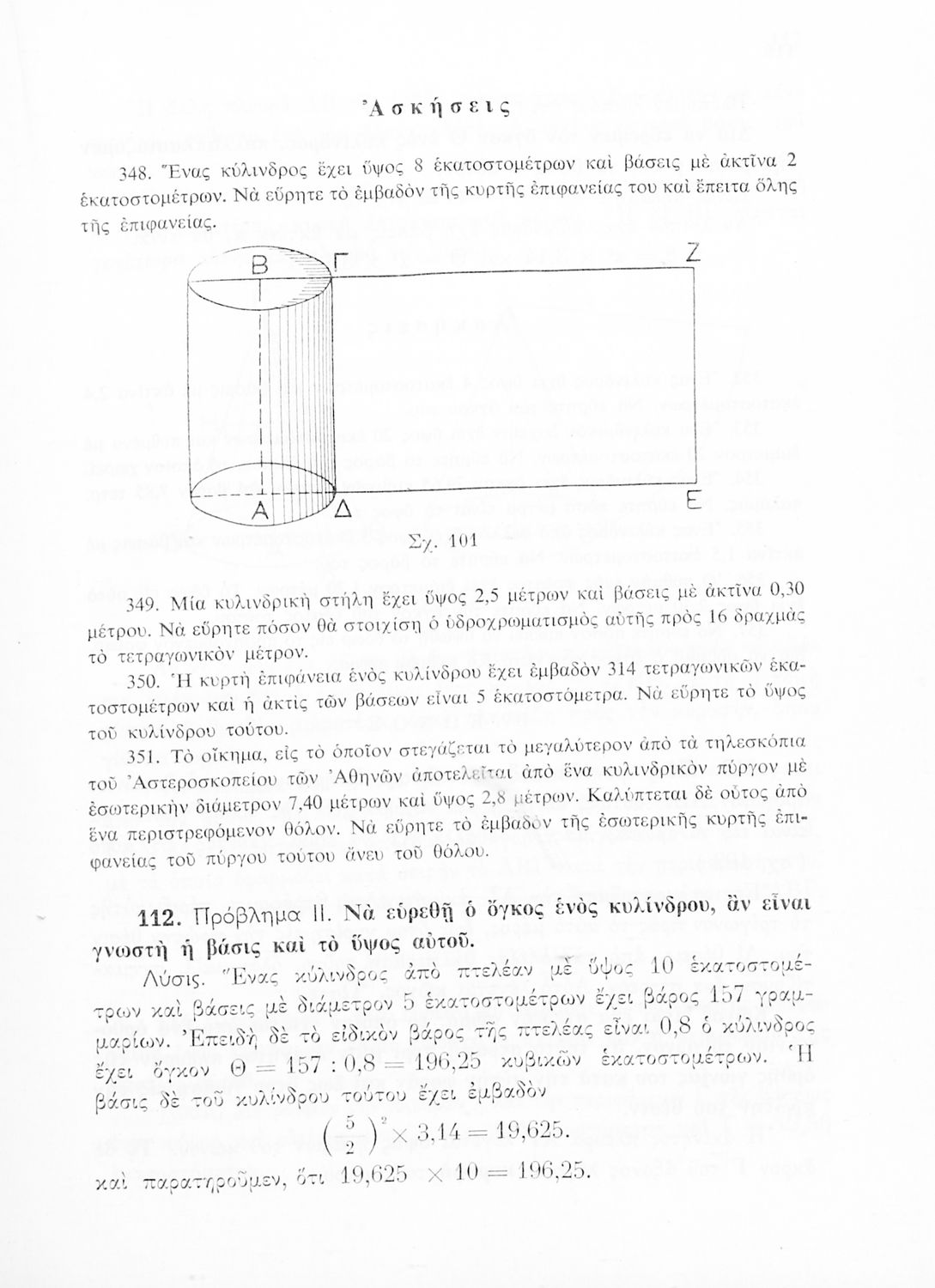 Σχολικό εγχειρίδιο των κατωτέρων τάξεων του Γυμνασίου για το μάθημα της Γεωμετρίας. Το εγχειρίδιο αποτελείται από την εισαγωγή, όπου αναλύονται οι βασικές έννοιες των ιδιοτήτων και γνωρισμάτων των γεωμετρικών σχημάτων, της επιπεδομετρίας δηλαδή των ευθειών, των γωνιών, των παραλλήλων, των κύκλων, των ευθύγραμμων σχημάτων και της στερεομετρίας, της θεματικής εκείνης που αναλύει τις θέσεις της ευθείας, του κυλίνδρου, του κώνου, των πολυέδρων κ.α.