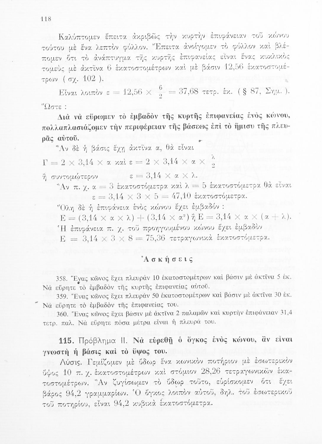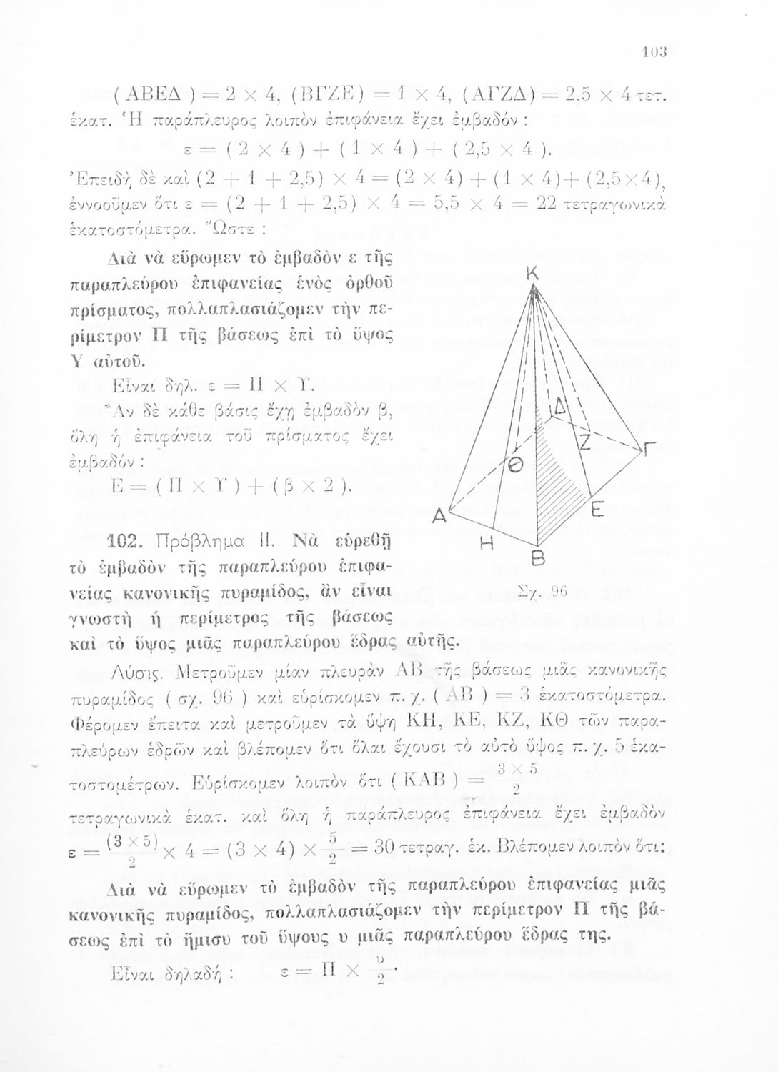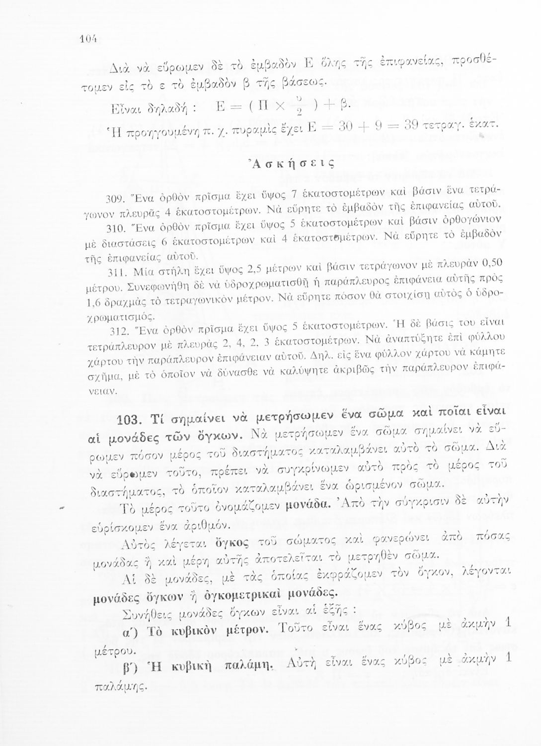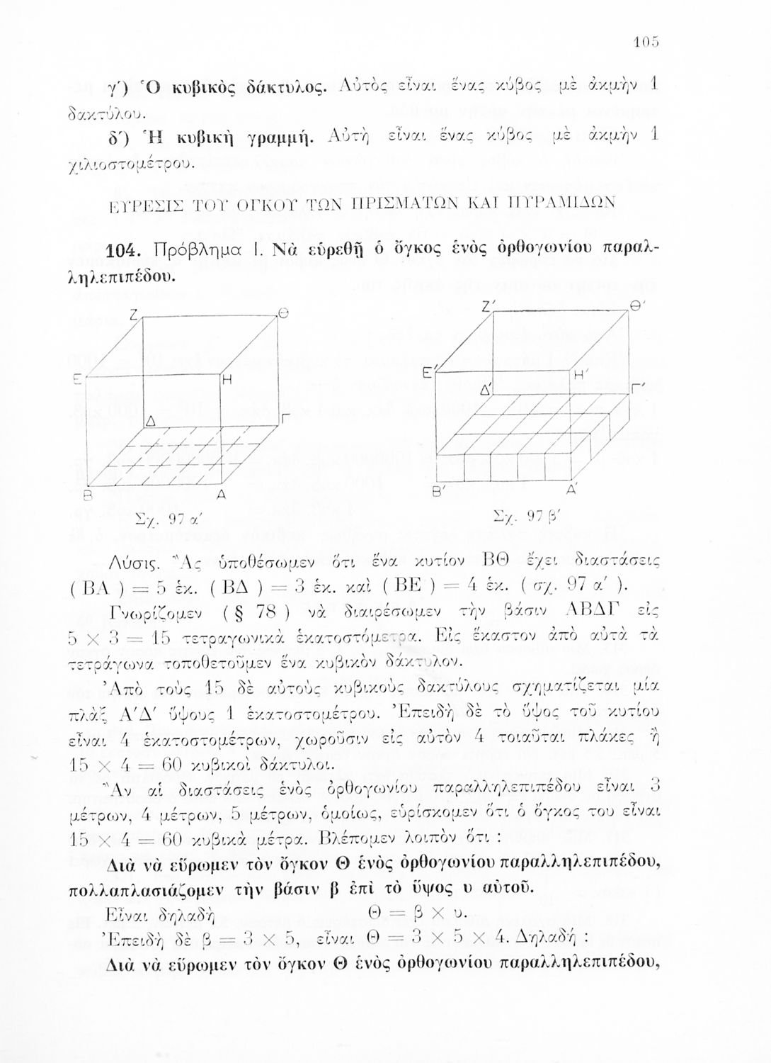 Σχολικό εγχειρίδιο των κατωτέρων τάξεων του Γυμνασίου για το μάθημα της Γεωμετρίας. Το εγχειρίδιο αποτελείται από την εισαγωγή, όπου αναλύονται οι βασικές έννοιες των ιδιοτήτων και γνωρισμάτων των γεωμετρικών σχημάτων, της επιπεδομετρίας δηλαδή των ευθειών, των γωνιών, των παραλλήλων, των κύκλων, των ευθύγραμμων σχημάτων και της στερεομετρίας, της θεματικής εκείνης που αναλύει τις θέσεις της ευθείας, του κυλίνδρου, του κώνου, των πολυέδρων κ.α.
