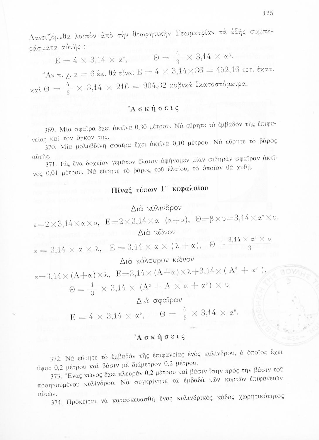 Σχολικό εγχειρίδιο Γεωμετρίας για τα Γυμνάσια και τα Αστικά Σχολεία που είναι χωρισμένο σε Επιπεδομετρία και Στερεομετρία και περιλαμβάνει θεωρία και ασκήσεις.