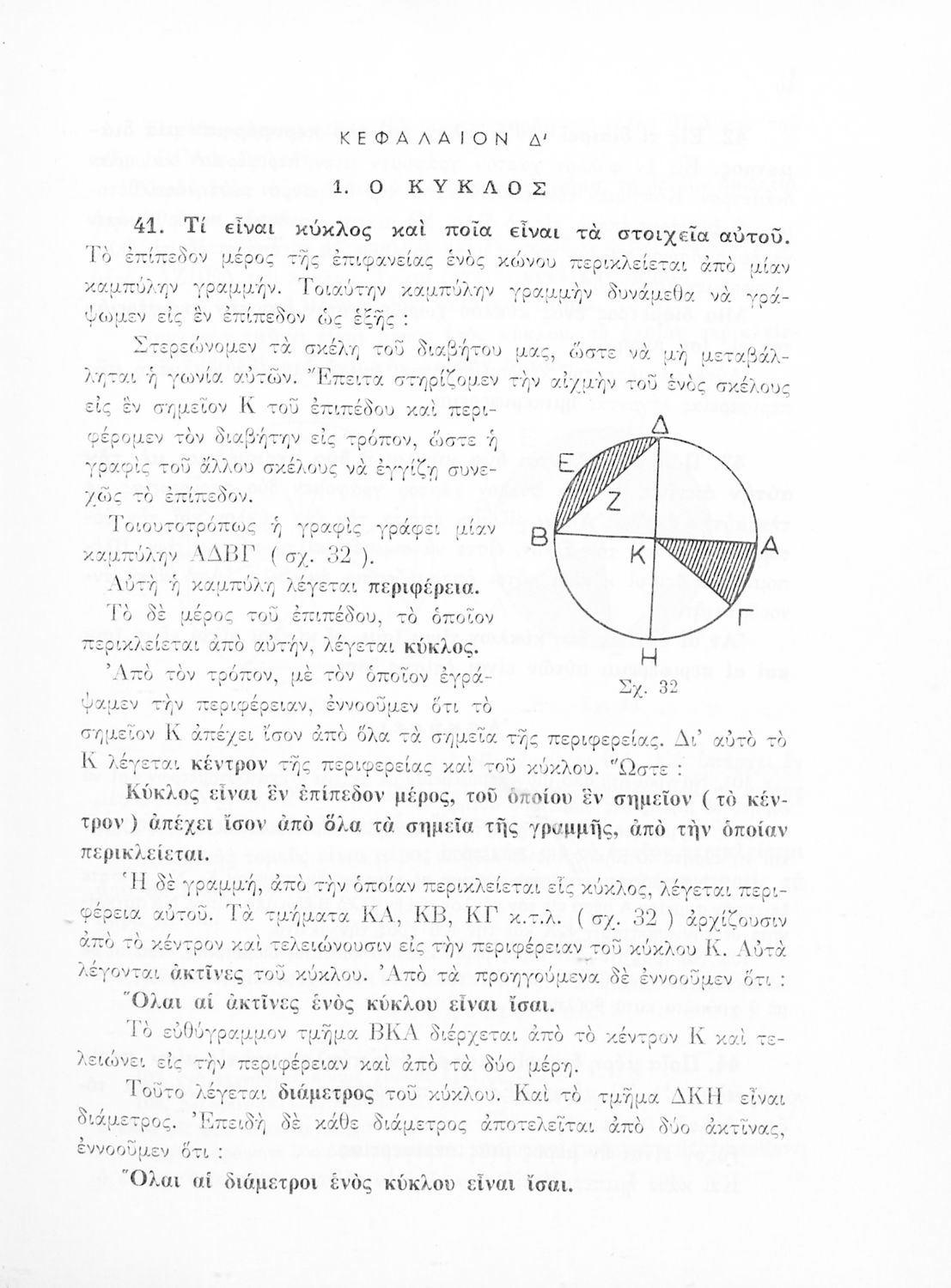 Σχολικό εγχειρίδιο Γεωμετρίας για τα Γυμνάσια και Αστικά Σχολεία που περιλαμβάνει θεωρία και ασκήσεις και είναι χωρισμένο σε Επιπεδομετρία και Στερεομετρία.