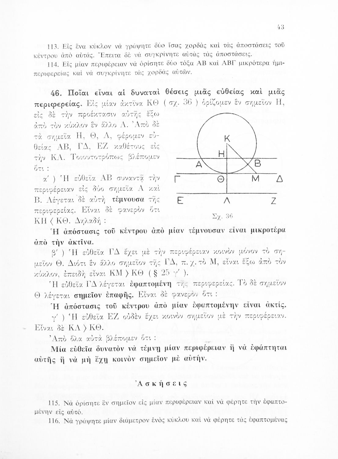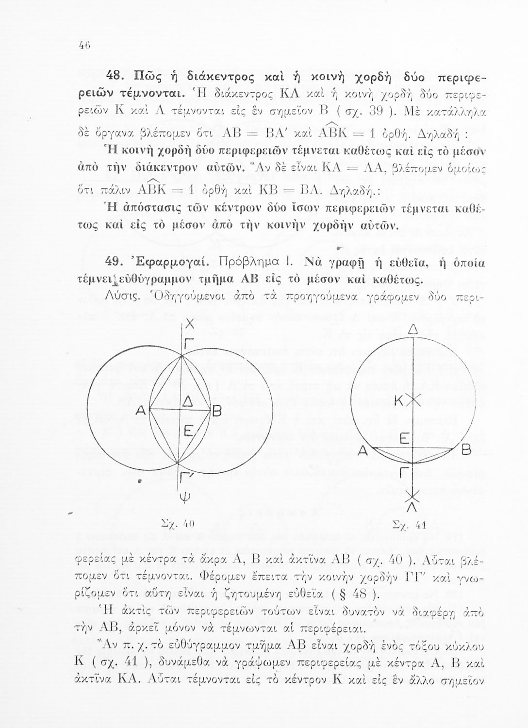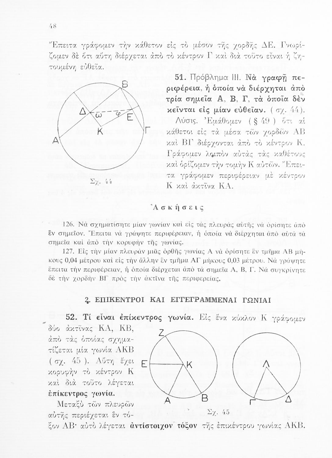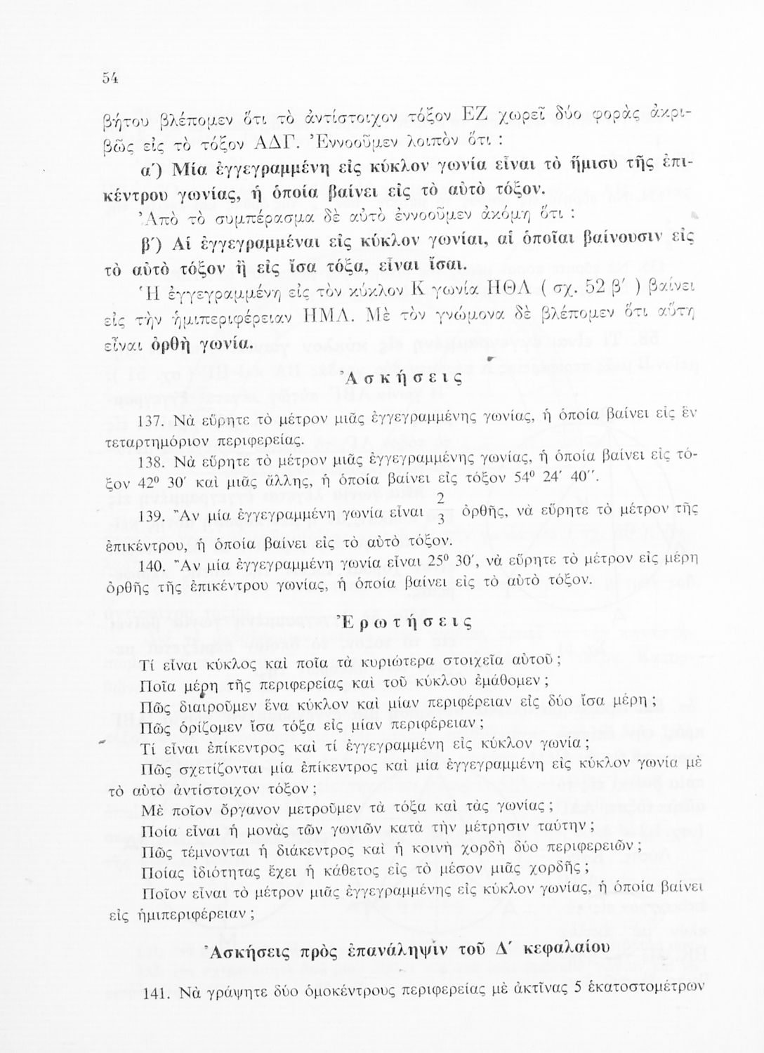 520 ## _aΣχολικό εγχειρίδιο των κατωτέρων τάξεων του Γυμνασίου για το μάθημα της Γεωμετρίας. Το εγχειρίδιο αποτελείται από την εισαγωγή, όπου αναλύονται οι βασικές έννοιες των ιδιοτήτων και γνωρισμάτων των γεωμετρικών σχημάτων, της επιπεδομετρίας δηλαδή των ευθειών, των γωνιών, των παραλλήλων, των κύκλων, των ευθύγραμμων σχημάτων και της στερεομετρίας, της θεματικής εκείνης που αναλύει τις θέσεις της ευθείας, του κυλίνδρου, του κώνου, των πολυέδρων κ.α.
