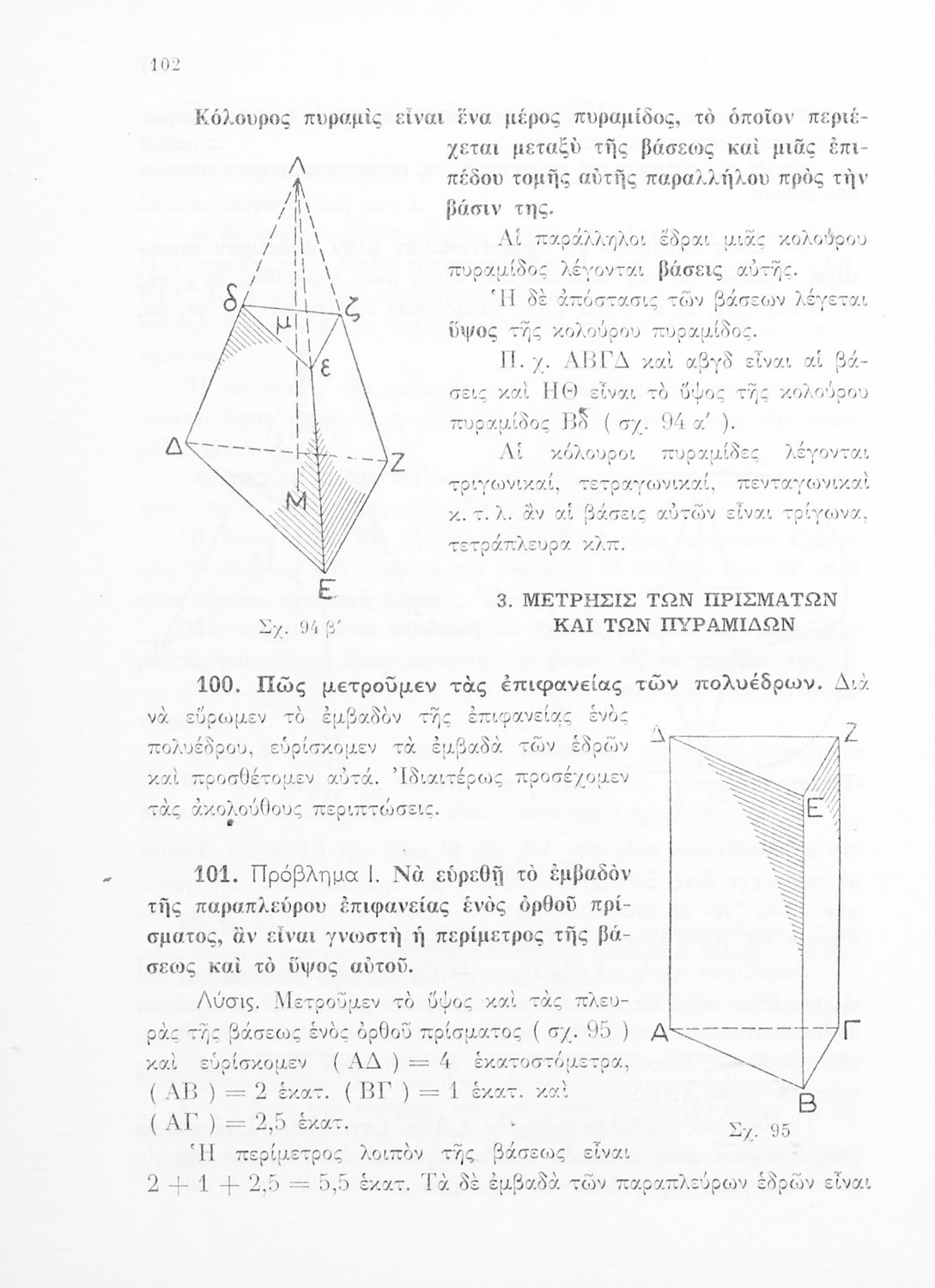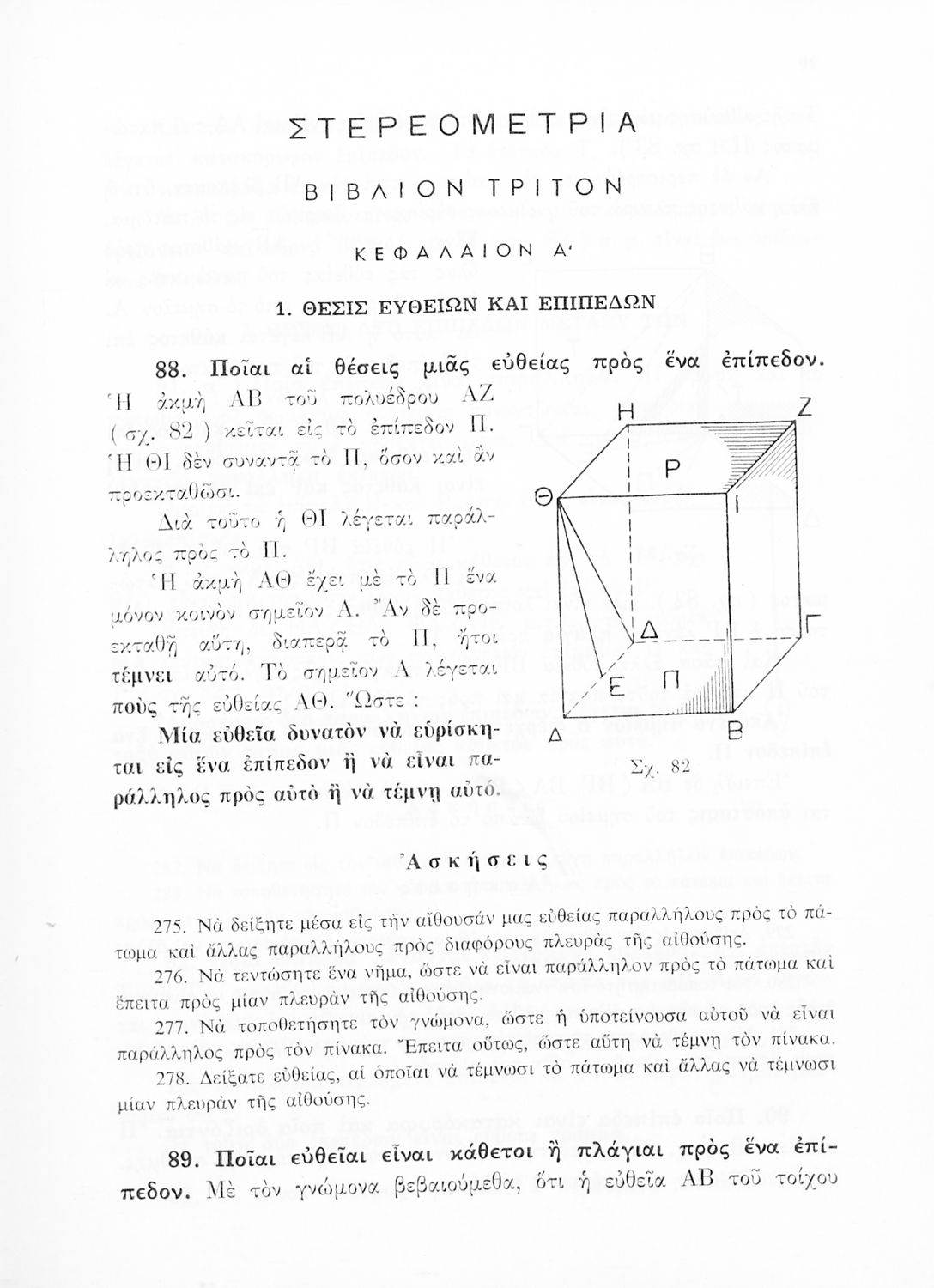 Σχολικό εγχειρίδιο Γεωμετρίας για τα Γυμνάσια και Αστικά Σχολεία που περιλαμβάνει θεωρία και ασκήσεις και είναι χωρισμένο σε Επιπεδομετρία και Στερεομετρία.