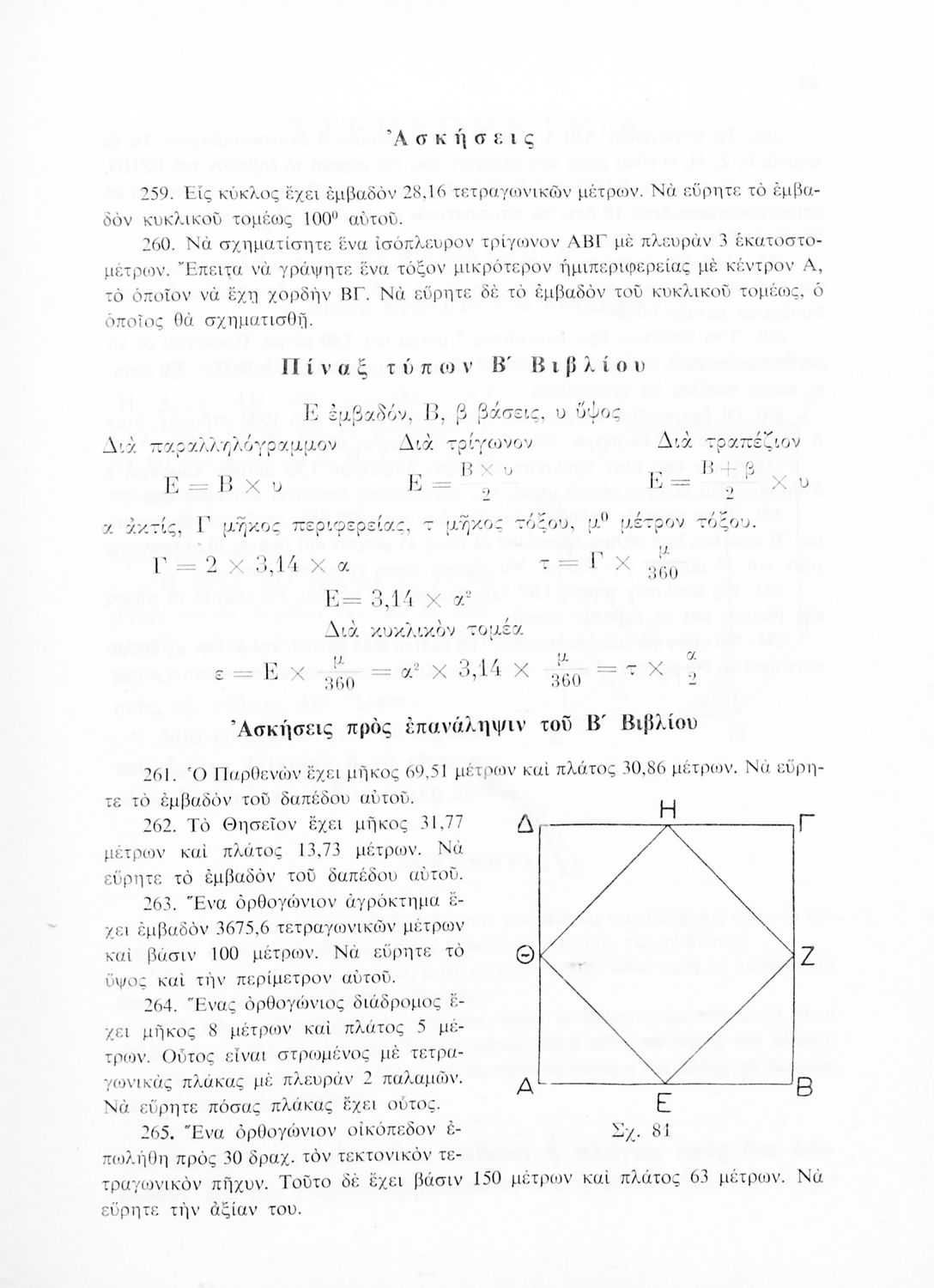 Σχολικό εγχειρίδιο Γεωμετρίας για τα Γυμνάσια και τα Αστικά Σχολεία που είναι χωρισμένο σε Επιπεδομετρία και Στερεομετρία και περιλαμβάνει θεωρία και ασκήσεις.