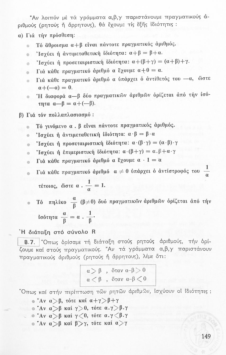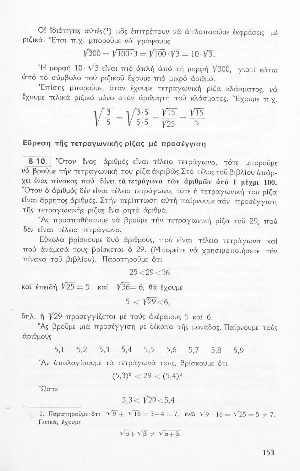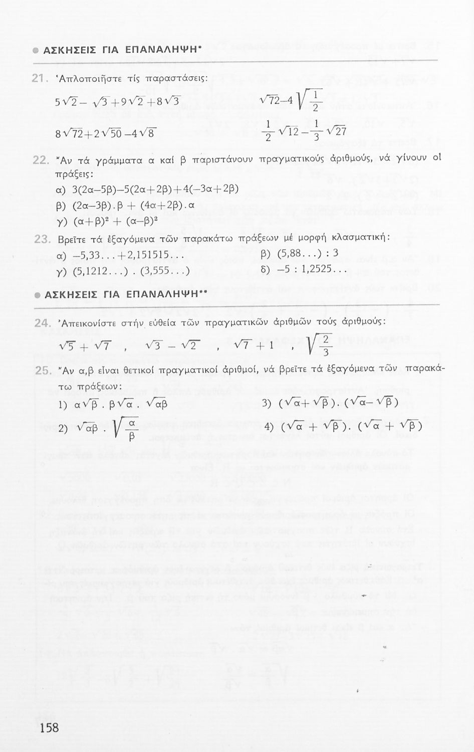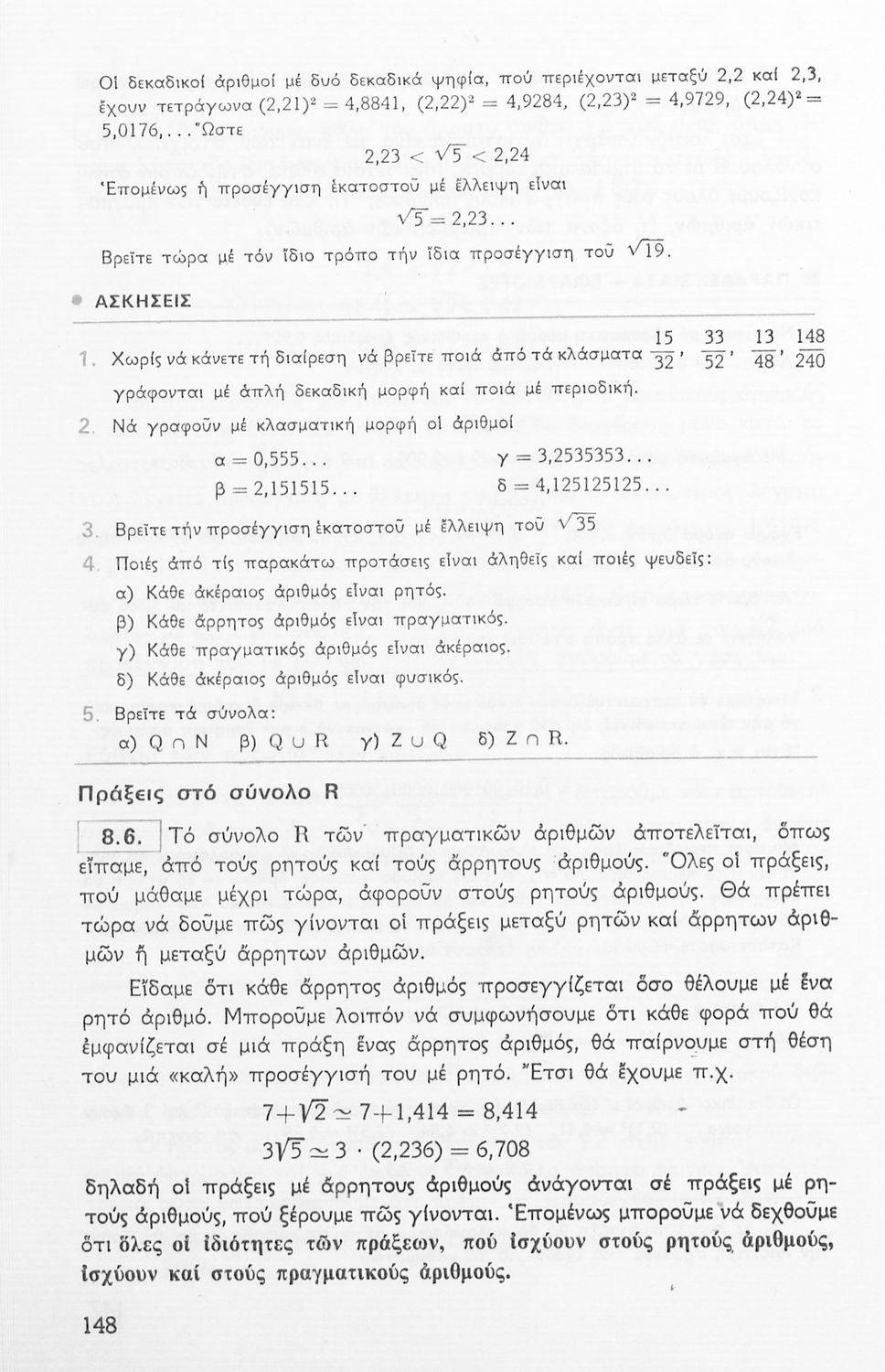 Σχολικό εγχειρίδιο Αριθμητικής για τις Α΄, Β΄, Γ΄ Γυμνασίου που είναι χωρισμένο σε ορισμούς και ασκήσεις και εστιάζει στις ιδιότητες των αριθμητικών πράξεων, τα κλάσματα και την τετραγωνική ρίζα.