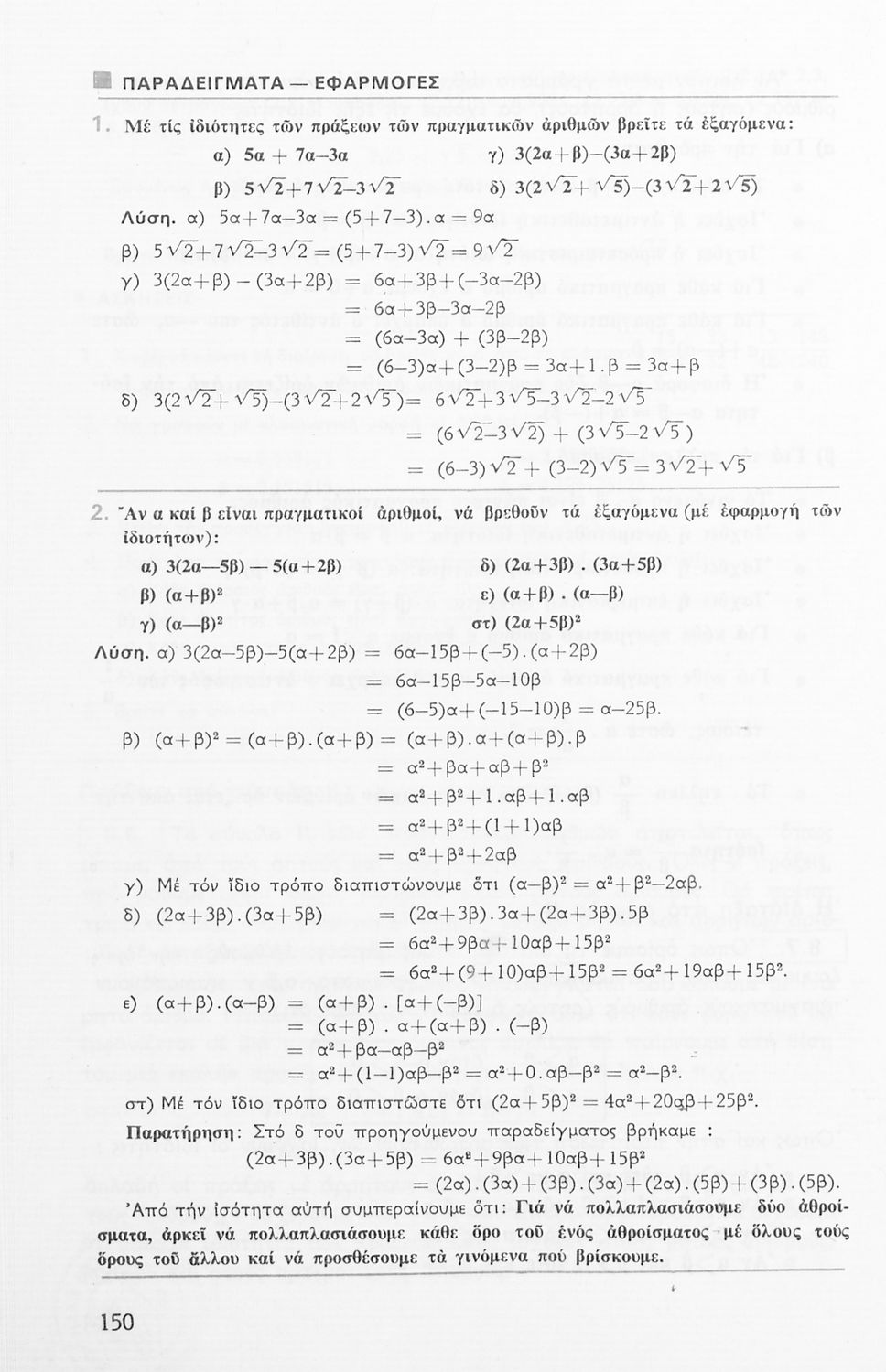 Σχολικό εγχειρίδιο Μαθηματικών Β΄ Γυμνασίου που περιέχει Άλγεβρα και Γεωμετρία.